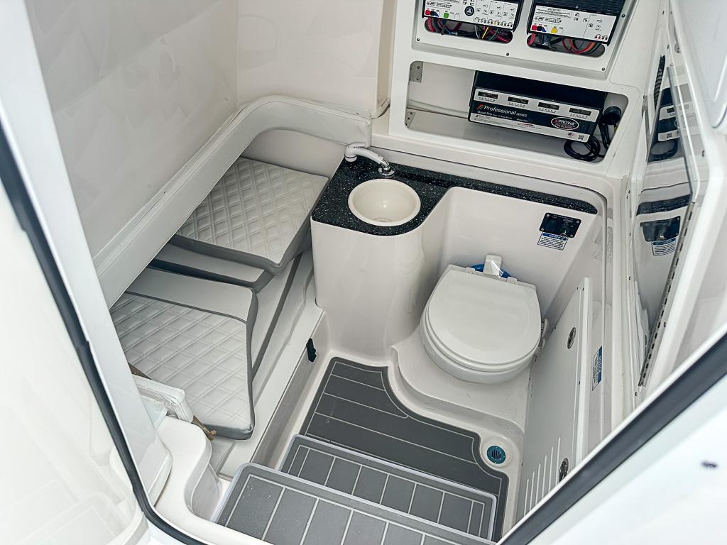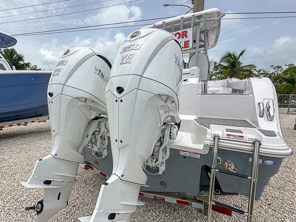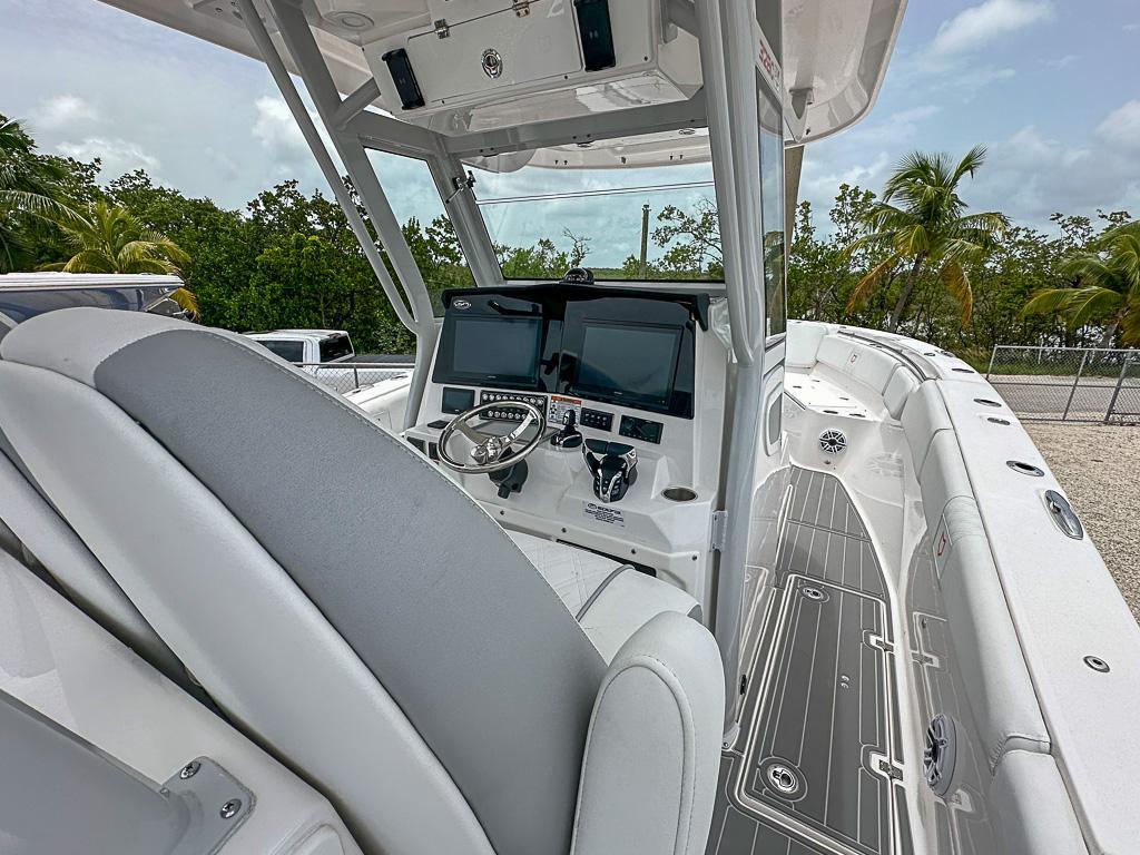 Low Hours, Great Condition!Financing available and we take trades! Call our sales team today for more information!The 2024 Sea Fox 328 Commander is a stunning center console boat that offers the best of both worlds: luxury and fishability. This boat is powered by twin Yamaha F300 engines which deliver incredible performance and maneuverability. The 328 Commander has a sleek and spacious cockpit, with a fiberglass helm seating pod, deluxe bucket chairs, a rigging station, and a cooler storage. The console features a new integrated windshield for the Ultima fiberglass hardtop with full glass enclosure, which provides protection and visibility. The console also has a SeaStar Optimus electronic power steering system, a Fusion stereo head unit with JL Audio custom sound system, two Garmin 8616XSV touchscreens, an electric ceramic toilet, and a freshwater sink. The bow area has a windlass anchoring system, curved backrest cushions, a forward console lounger, a removable table, and a casting deck with a filler board. The 328 Commander also has a dive door boarding ladder, air conditioning, an overboard waste discharge, and a LED/tech package. The 328 Commander is built with a deep V-hull design and high-quality materials, ensuring stability, durability, and a smooth ride. You can choose from various hull colors, upholstery options, and powder coating packages to customize your boat. The 328 Commander is the ultimate boat for fishing, cruising, or entertaining.Contact us or stop by and someone from our sales team will be happy to go over the awesome 328 Commander and all of its features.Hull Color : Bull Shark Gray and WhiteEngines: Twin Yamaha F300'sAdditional Options:Yamaha Helm Master Joy StickFull Glass EnclosureA/C Unit w/ InverterBattery ChargerBow ShadeDive Door Boarding LadderLED / Tech PackageDekIt Marine Kit