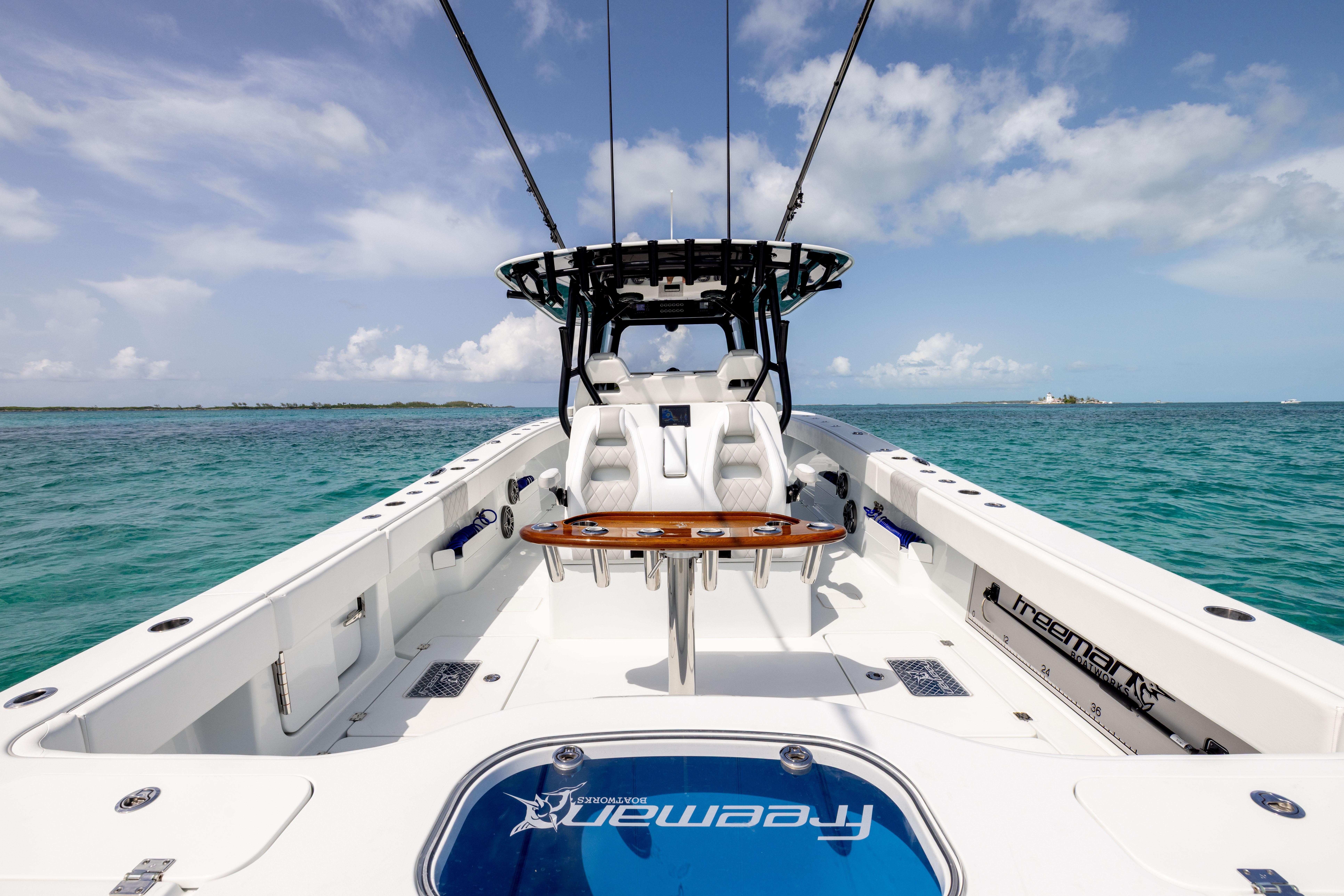 2022 Freeman 37 VH Quad Mercury 400HP Verado w/ 450hrs Optimus Joystick Side Dive Door!Yacht Tender Ready For Tow! Electronics: (2) Garmin 8622 GPS 22” Displays Garmin Rear Facing Display Garmin Open Array Radar Garmin GSD 25 Sounder w/ Side Scan Garmin GT51-TM (2) iCom VHF Radios FLIR Camera LED Light Bar 50”Under Gunnel LED Lights Underwater LED Lights (4) Electric Reel Plugs Over The Top JL Audio Stereo System Rokk Phone Chargers In Console Other Options: Whisper Gray HullBlack Powder Coat w/ Black Underside HardtopBlack Match ElectronicsKingfish Rod HoldersGemlux Outrigger Bases w/ 21’ Carbon Marsh Tacky RiggersRear Facing Seat w/ GPS ScreenDouble Console DoorsSix Rod Teak Rocket LauncherMarine HeadSide DoorBottom Paint & More!Build Sheet Upon Request!Yacht Tender Ready!Ft. Lauderdale Florida Shown By Appointment Only