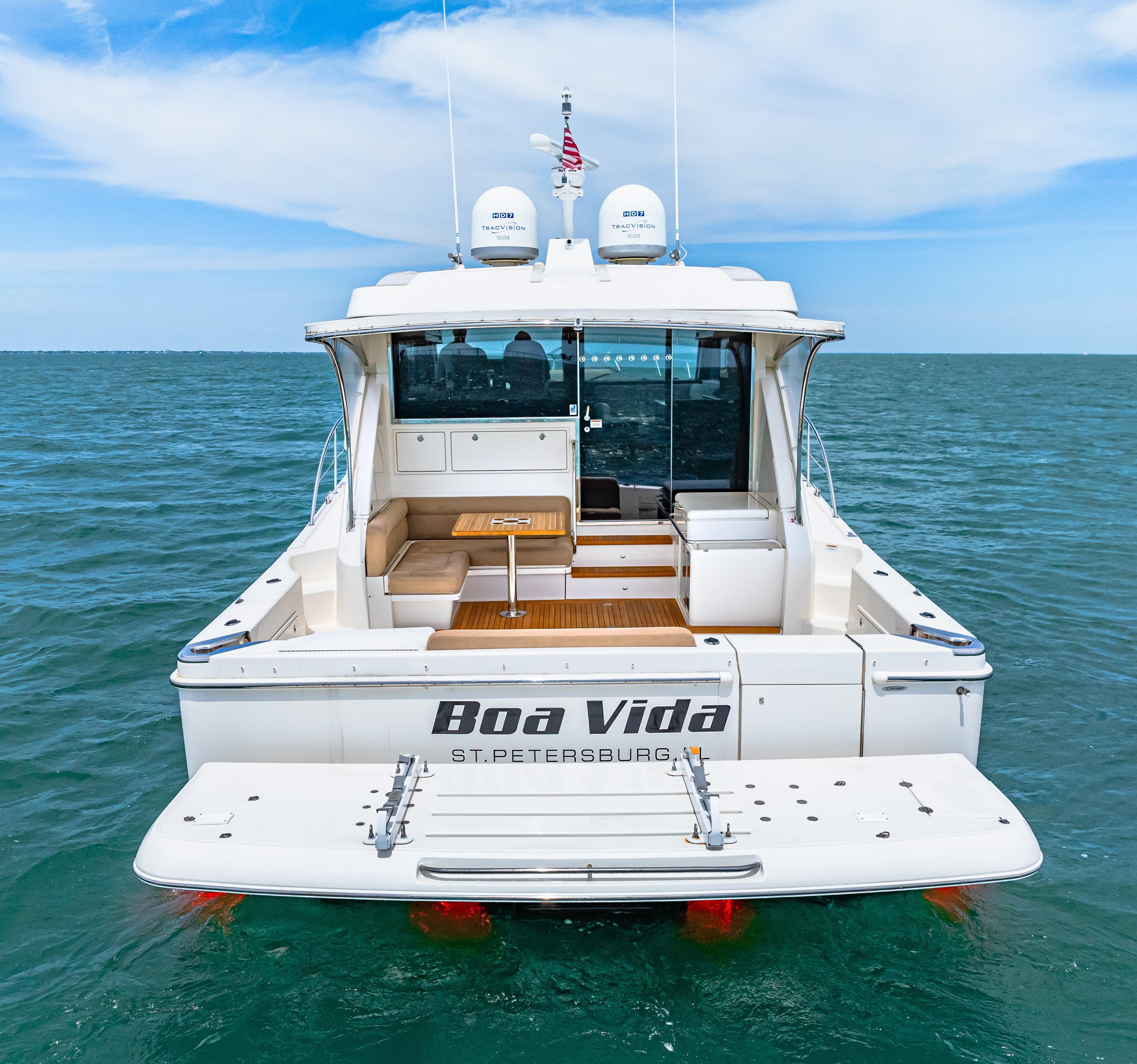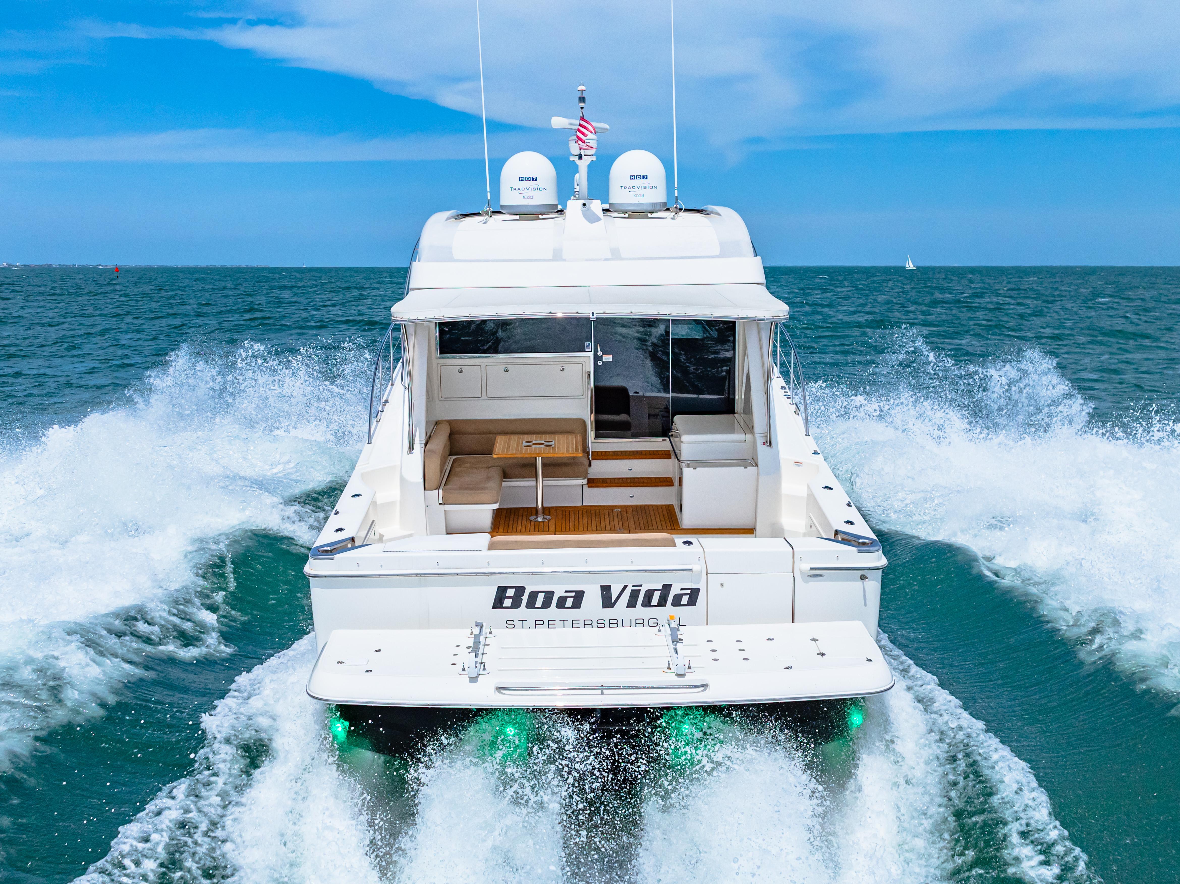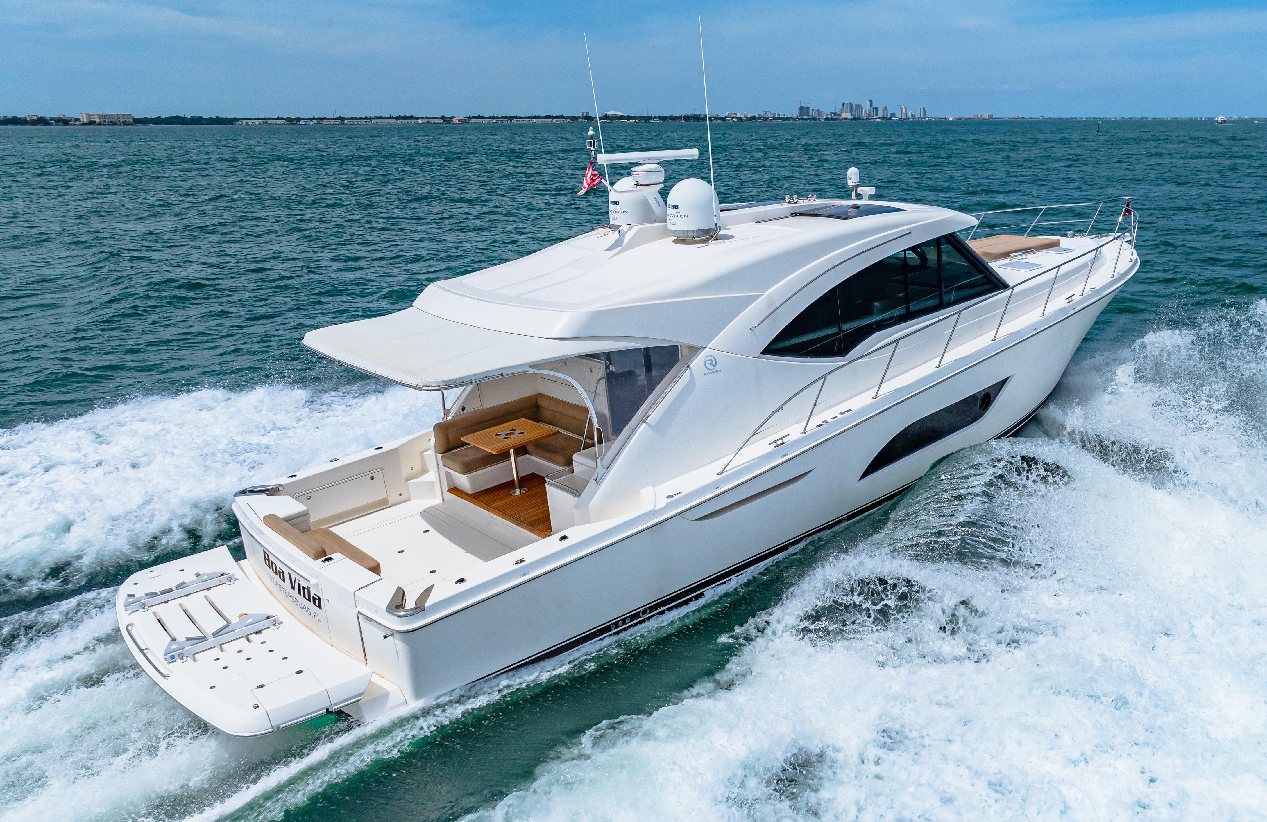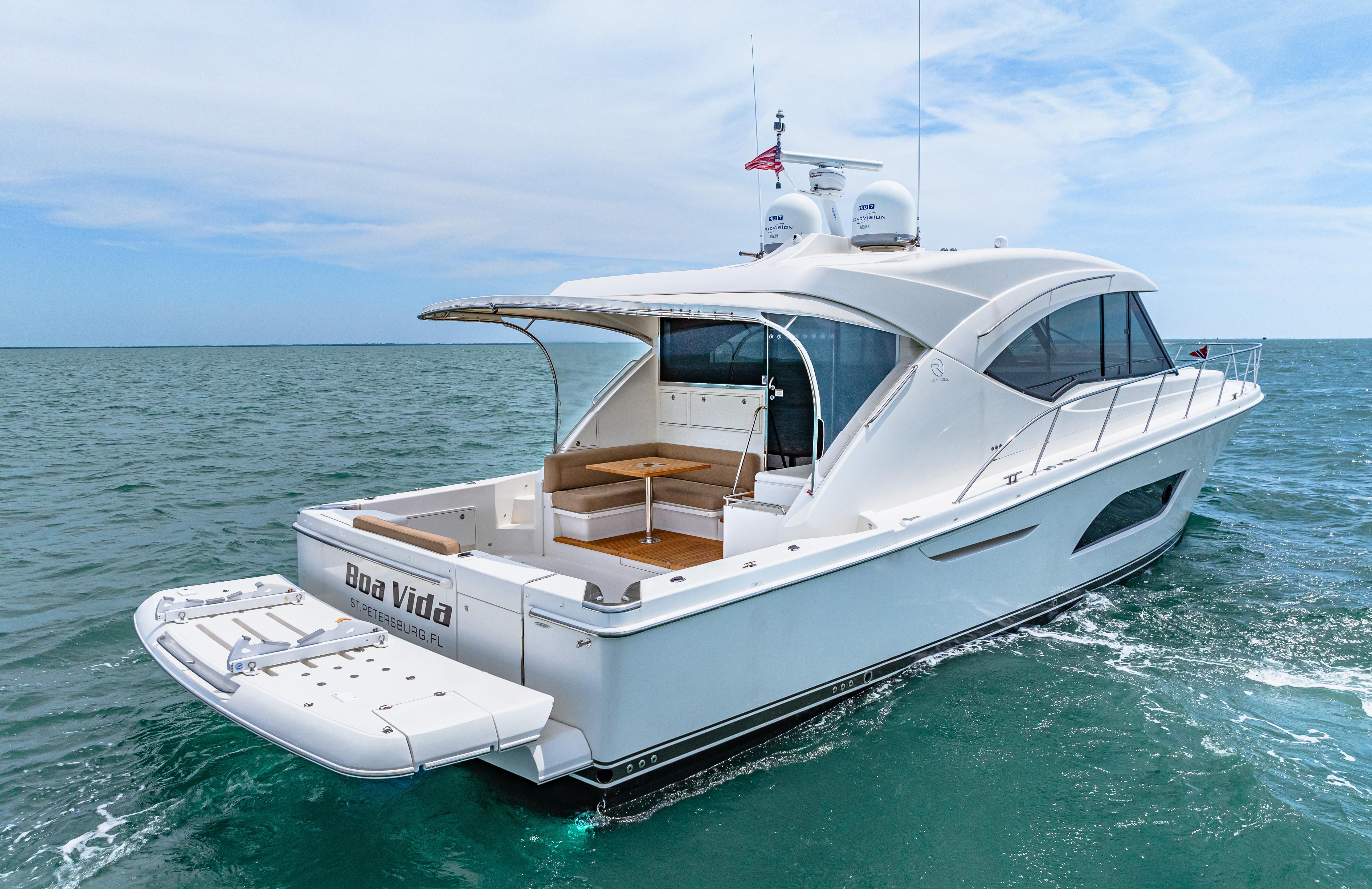 A "One of a kind" Riviera 575 SUVBOA VIDA offers a unique opportunity to own a shaft drive Riviera 575 SUV. She has been consistently cared for, updated and upgraded throughout her entire life. Her owner recently renewed the extended Platinum engine warranty on her low-hour CAT C-12.9 engines through 2/10/2027. Services are up to date and fresh bottom paint as well as a bead blast of underwater running gear was just completed in January '24. Up until 2021, BOA VIDA was stored indoors through the summer, and currently resides in downtown St. Petersburg, FL. Under the watchful eye of a professional management company, she is in excellent condition, and will be a turn-key purchase for her new owner.Recent Survey available for interested parties.Features include but are not limited to:CAT C12.9 1,000hp engines with recently extended warranty through 2/27 (Less than 900 hours)Bow ThrusterWireless yacht ControllerComplete Raymarine electronics packageFull boat wi-fiSat TVSirius/XM radio and weather (subscription necessary)City water hookupElectric lift antennasTropical AC packageGenerator upgrade to 27.5 kWSeparate washer and dryerHydraulic platform (NEW July 2022)ZipWake auto trim systemThermal and Visible Imaging cameraAnchor cameraUnderwater lights*Tender does not convey with sale of vessel