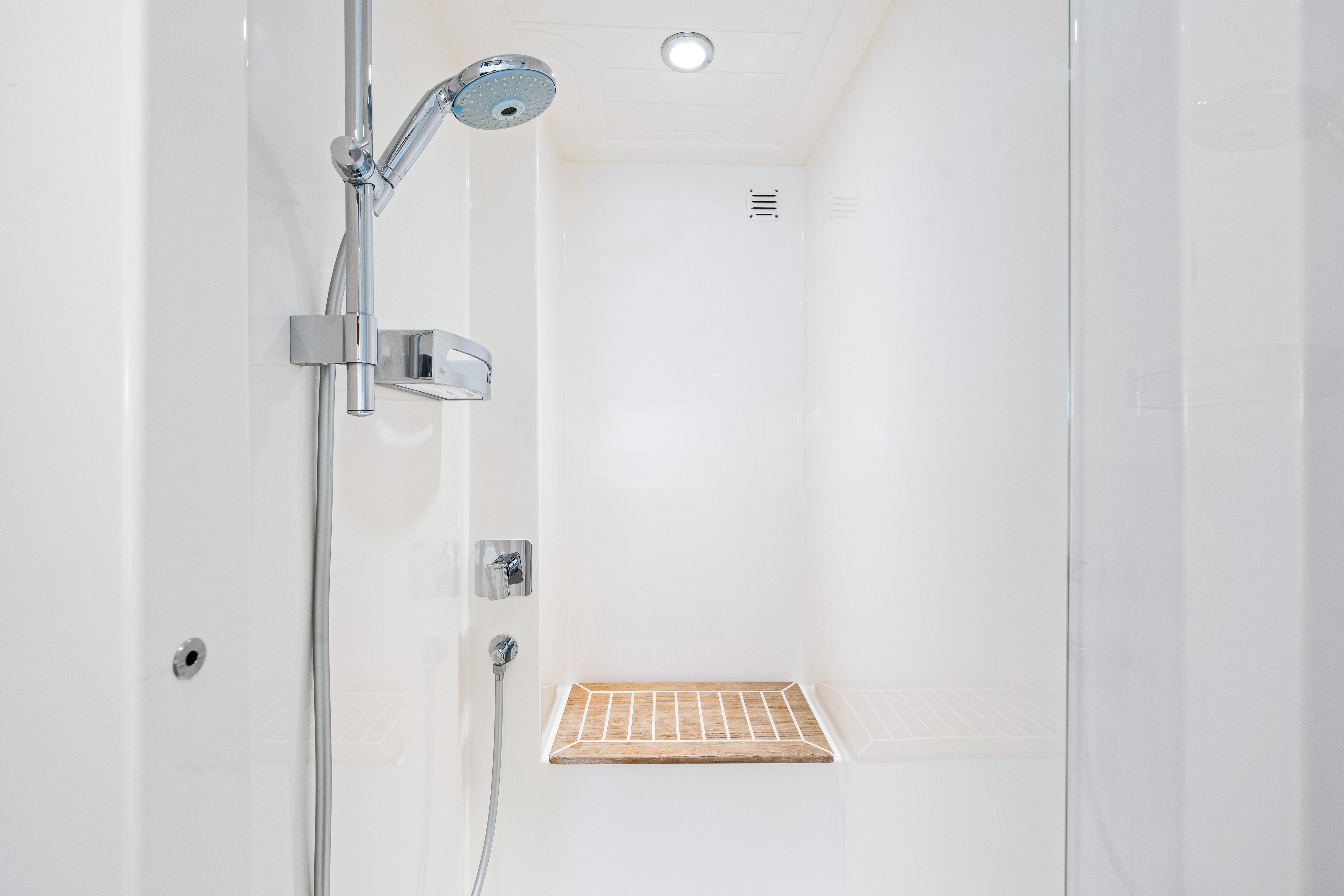There are both fresh and saltwater wash-down facilities conveniently located at the anchor locker station as well as rope and chain divider, and winch with hand-held remote.