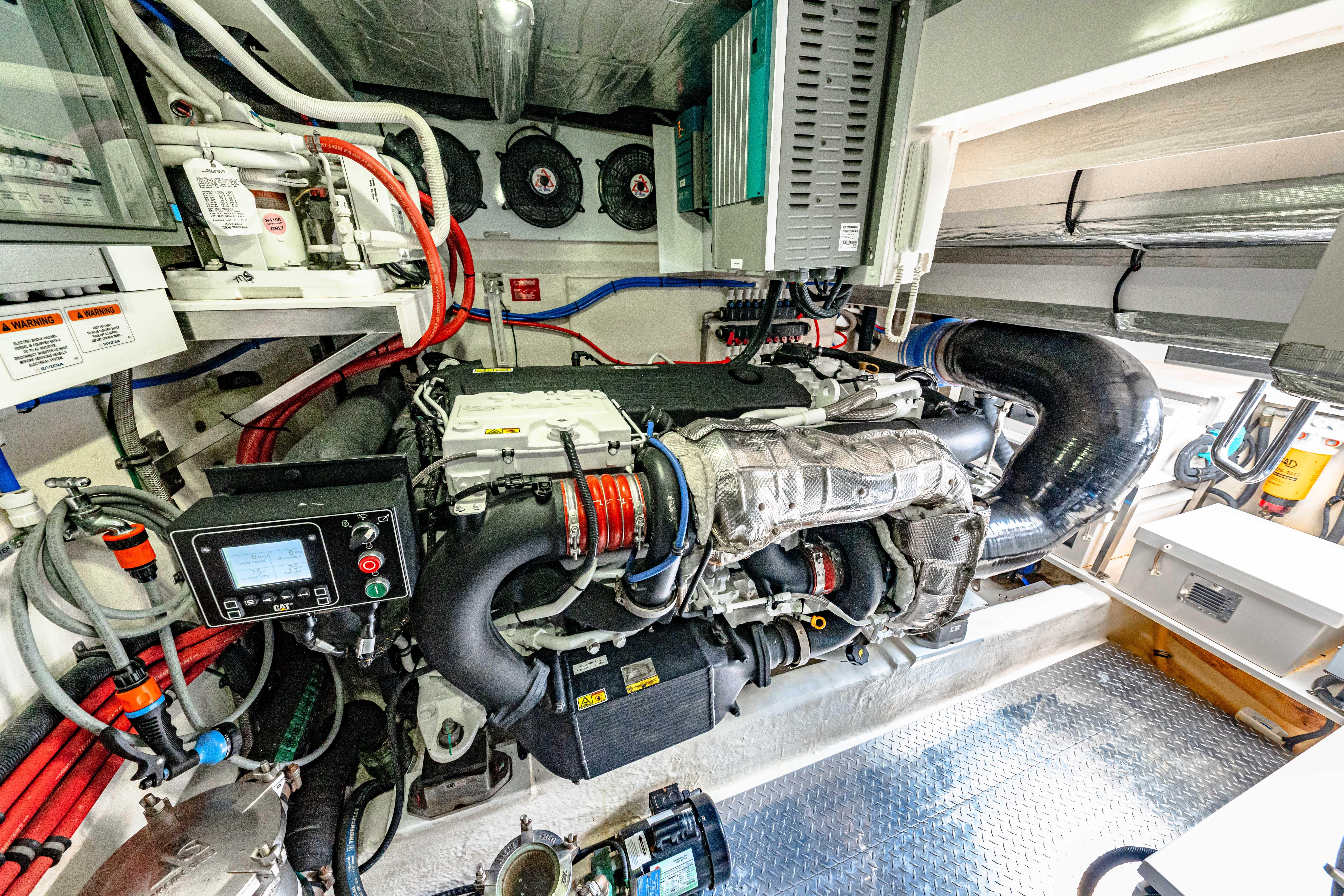 - Twin Cat 12.9L Shaft drive (1000hp) - warranty through 2/2027, twin lever controls, bow thruster, Quickshift gearboxes (Fresh water cooling) 3 x 16’’ Raymarine MFD’s, Autopilot, bow thruster & underwater exhaust