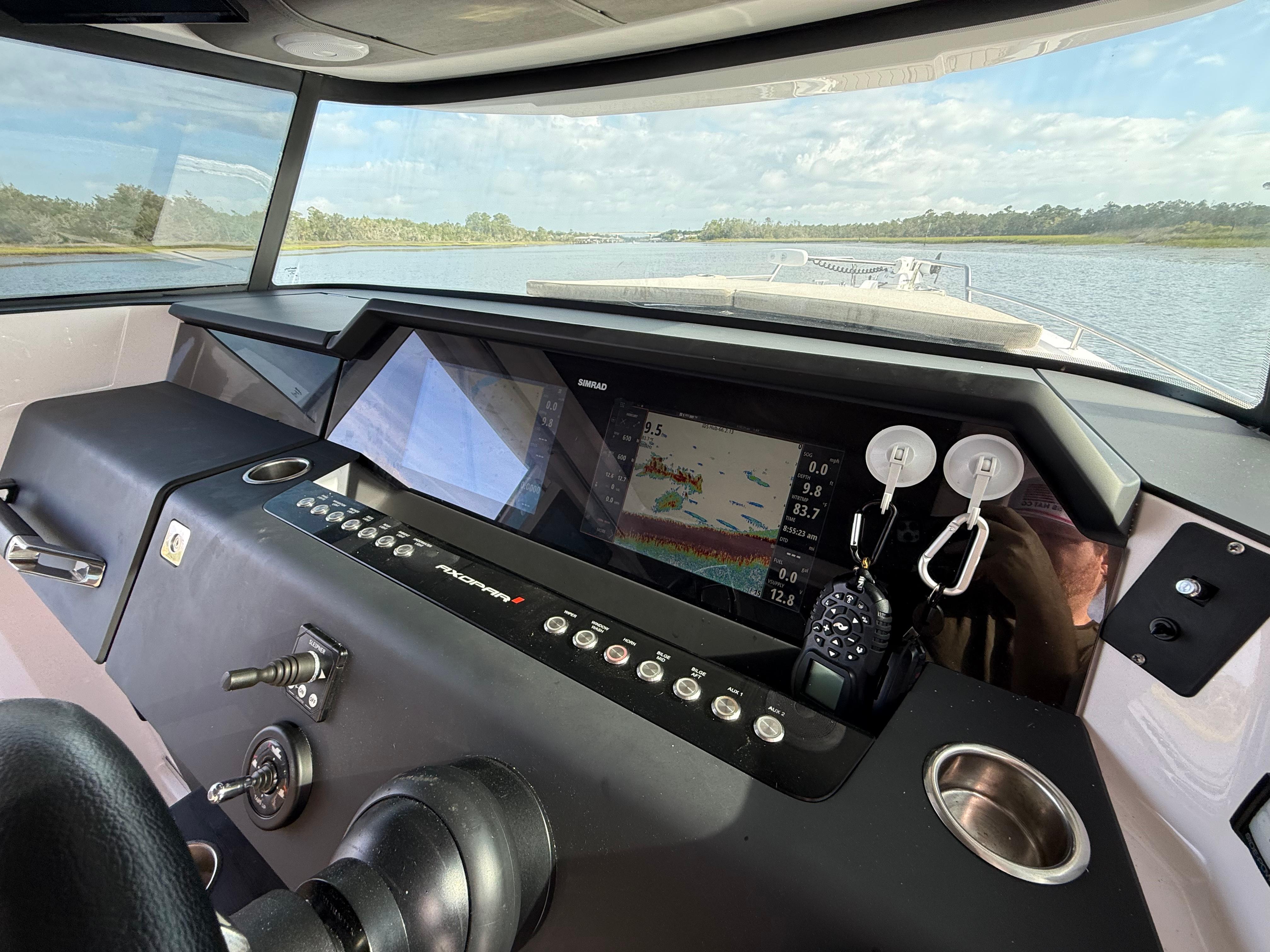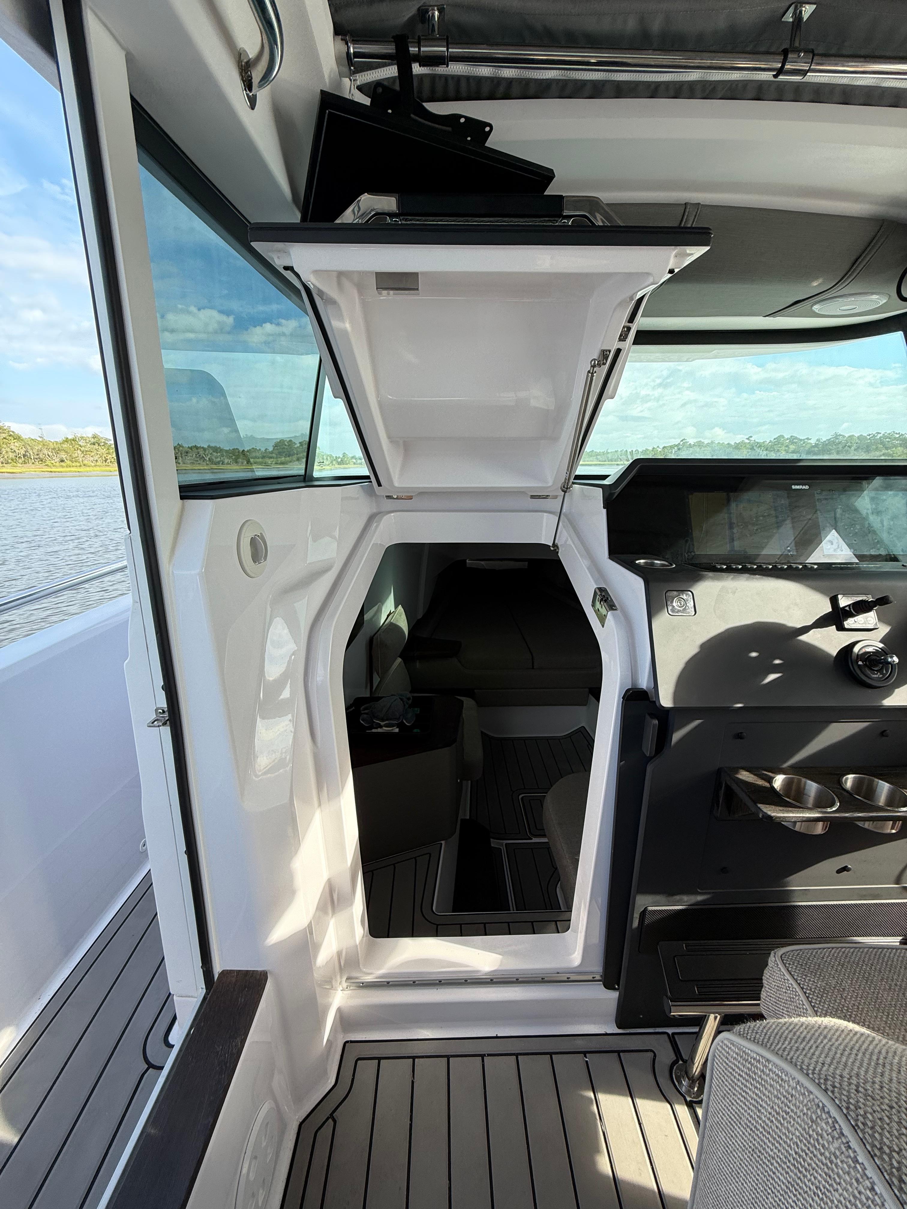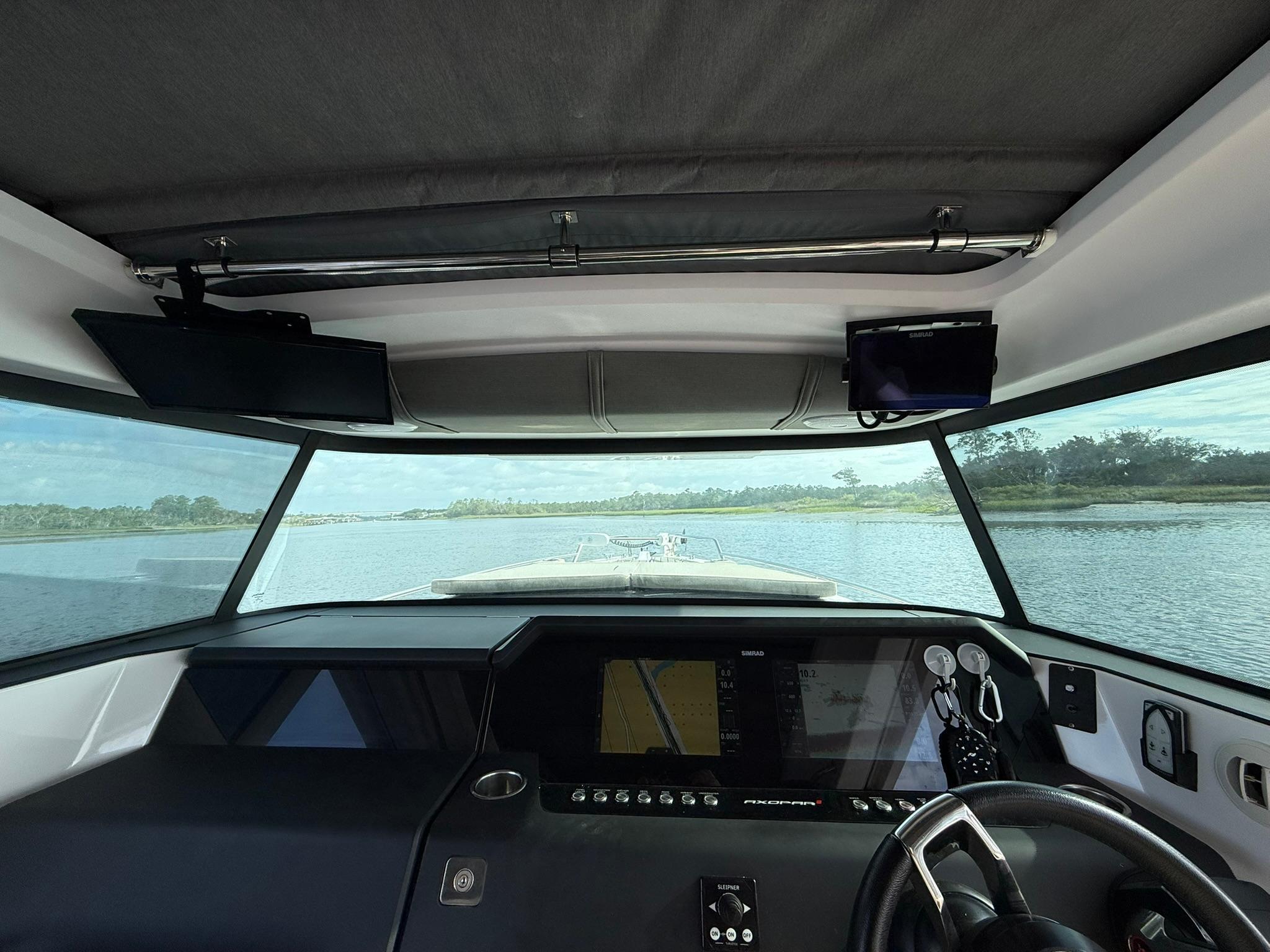 Introducing the 2023 Axopar 37 Cross Cabin, a remarkable center console boat that combines style and performance. With an overall length of 37 feet, this vessel is designed for both adventure and comfort on the water. Crafted from durable fiberglass, it boasts a sleek hull that enhances its agility and stability. Powered by three Mercury V8 Verado outboard engines, each delivering an impressive 300 hp, this boat achieves a cruising speed of 38 knots and a maximum hull speed of 48 knots, ensuring exhilarating rides. The stainless steel 4-blade propellers provide exceptional maneuverability, making it perfect for both leisurely outings and thrilling excursions. With 235 hours of use, this used model is in excellent condition, ready for new adventures. The Axopar 37 Cross Cabin is not just a boat; it's an invitation to explore the open waters with confidence and style.NOTABLE FEATURESTwin Mercury Verado 350's low hoursFull Simrad electronics suiteBow Thruster side power Minn Kota trolling motorTriple axle aluminum trailerBoat is stored in a covered lift.Windlass with remote.Rocket launcher/ski pylon In the market for a super clean ,well maintained fishing, cruising or Island hopping look no further this beauty will do it all in comfort.