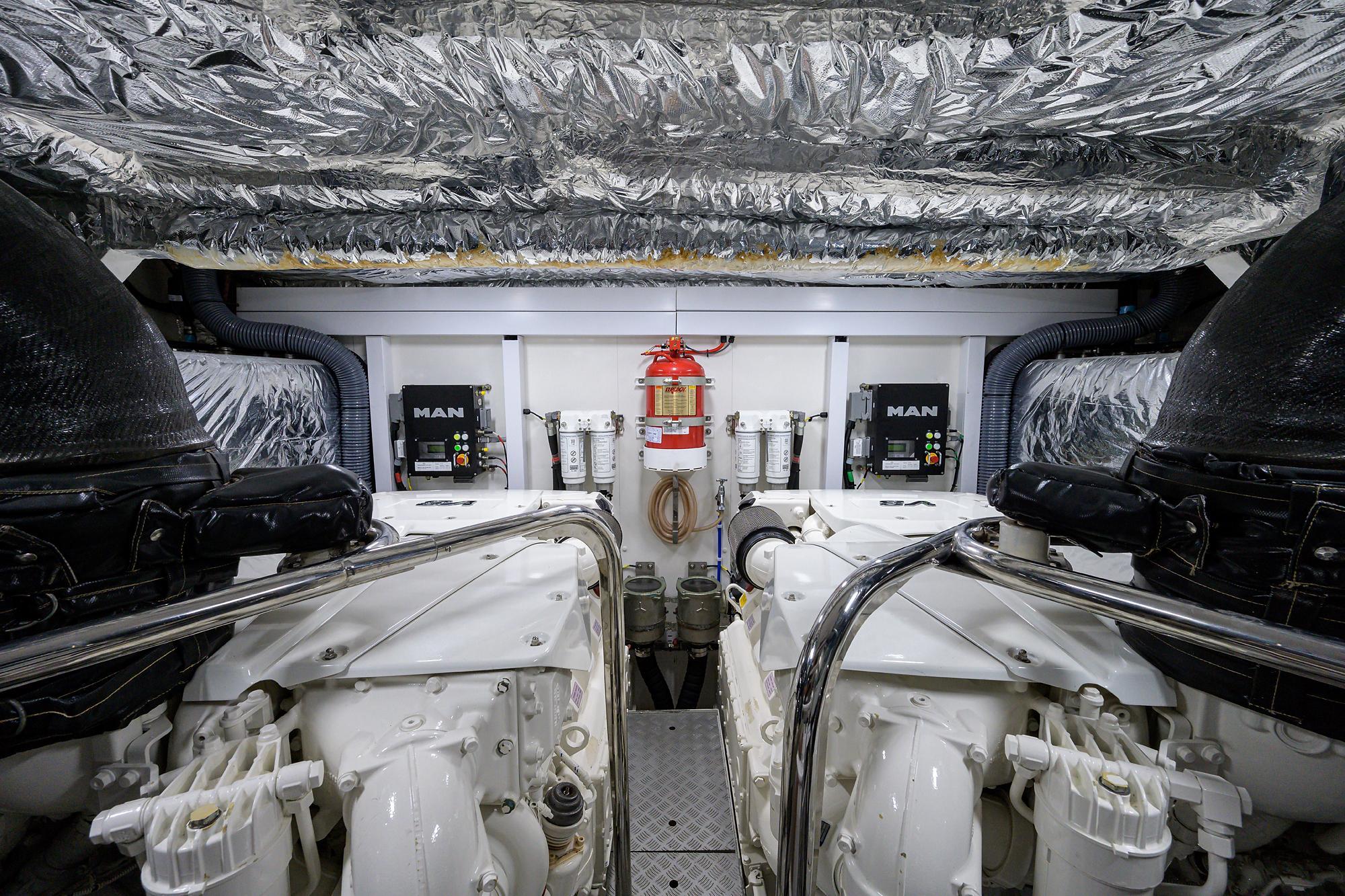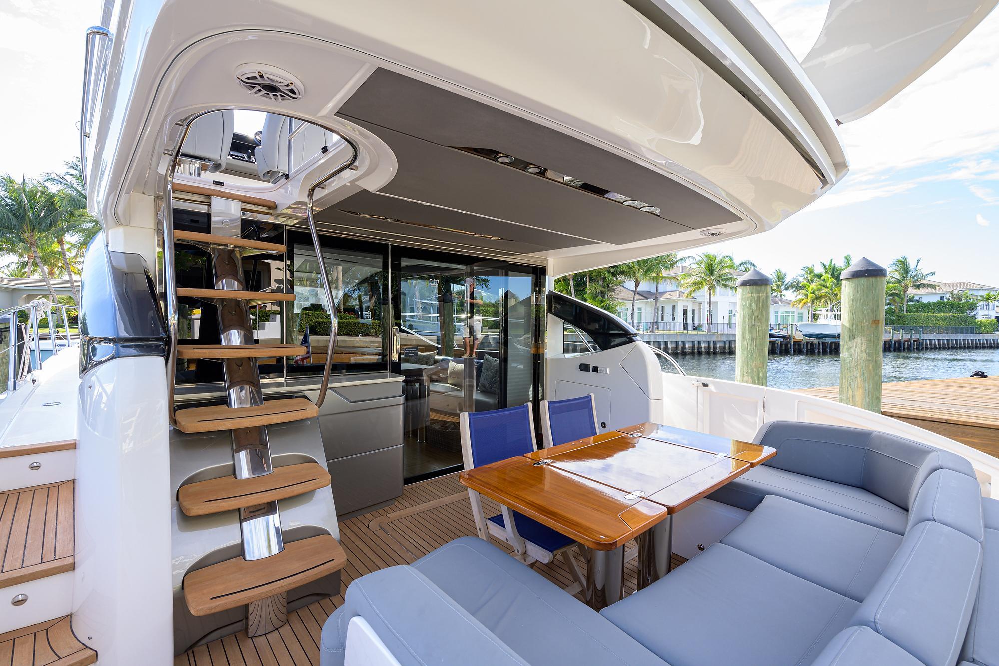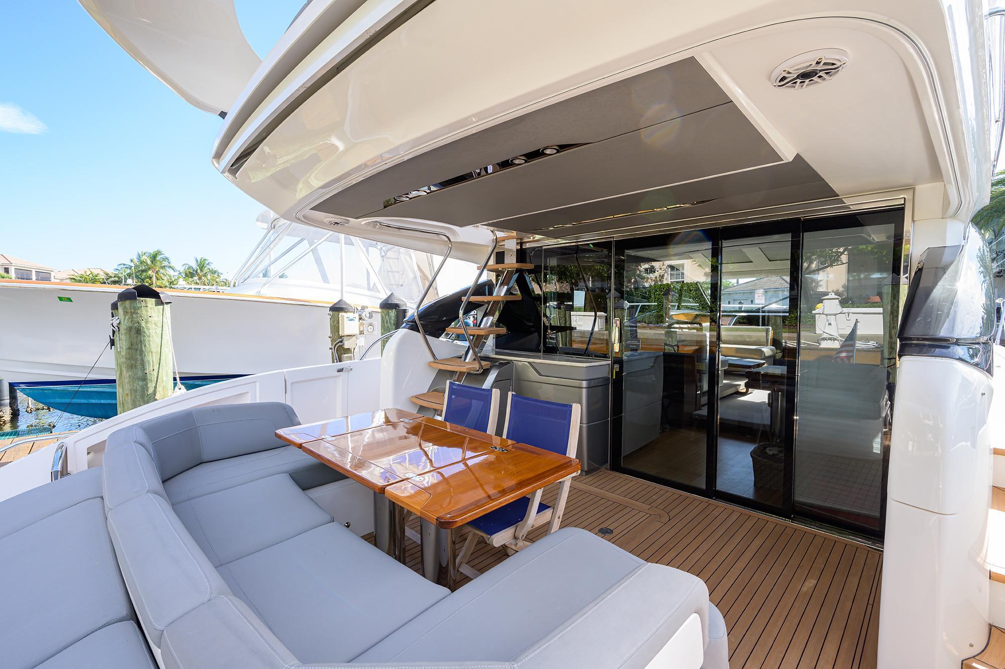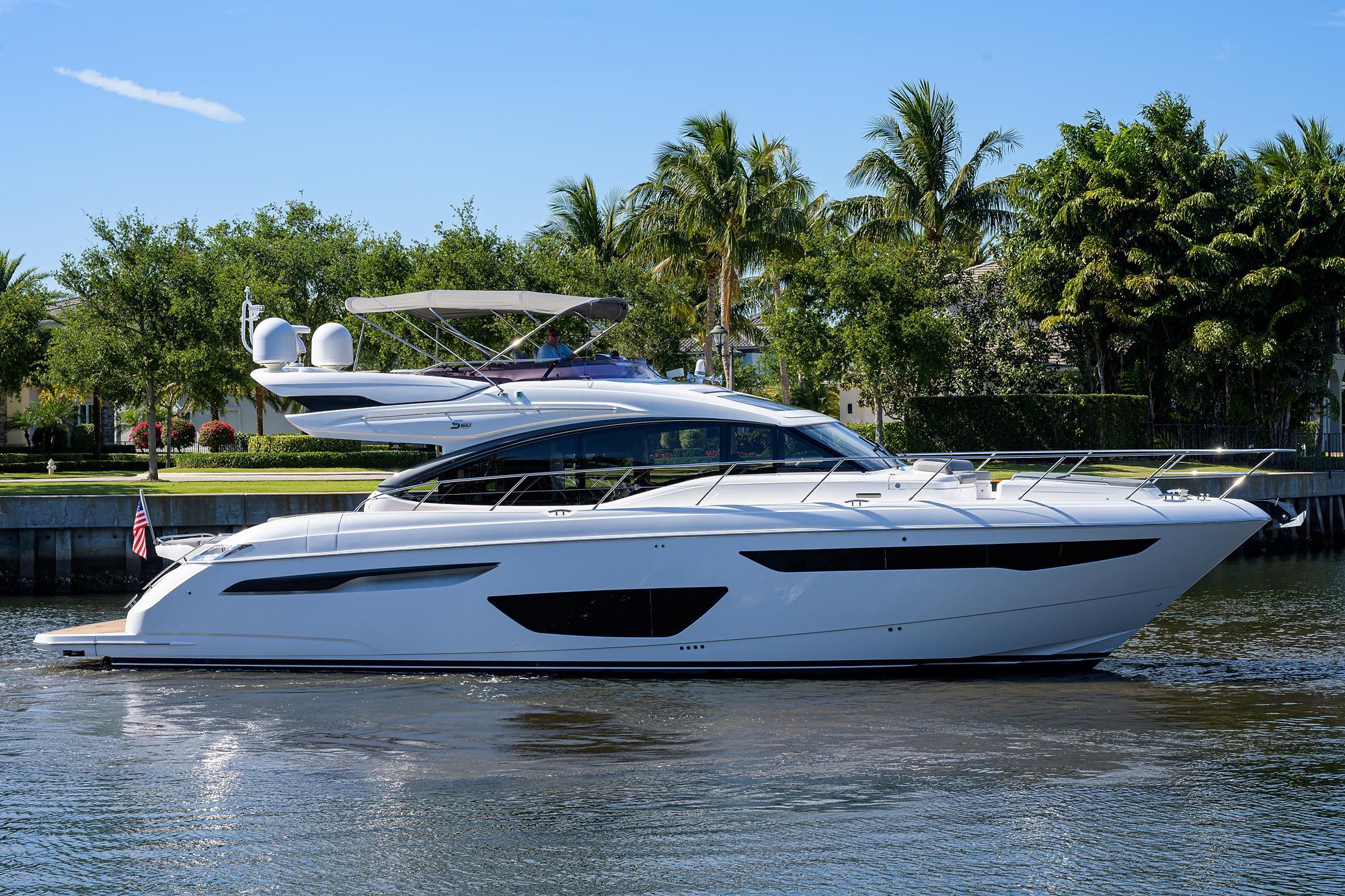 The 2018 Princess S60 “MULLIGAN”, manufactured by the renowned British yacht maker Princess Yachts, embodies all the qualities that the brand is famed for: luxurious comfort, cutting-edge design, and superb seakeeping abilities. The S60, part of the sport bridge range, combines the sleekness of a sports yacht with the practical advantages of a flybridge. The Princess S60 is a testament to elegant and dynamic yacht design. The exterior features a sleek and streamlined form with a distinctive deep-V hull, which ensures a comfortable and stable ride across various sea conditions. “MULLIGAN” interior design is both opulent and inviting, reflecting a modern, yet timeless appeal. The saloon features panoramic windows and a large, electrically operated sliding sunroof, flooding the space with natural light and providing stunning views of the seascape. High-quality materials, from hand-stitched leather furnishings to beautifully crafted wood finishes, are present throughout. The lower deck features three cabins. The full-beam master suite is lavishly appointed with a large double bed, a private seating area, and ample storage space. It also features an ensuite bathroom for complete privacy. The forward VIP stateroom and starboard twin cabin share a spacious second bathroom. These accommodations ensure that up to six guests can enjoy luxury and comfort on their voyage. Powered by twin MAN V8 engines, each producing 1200mhp, the Princess S60 can reach exhilarating top speeds of up to 38 knots. This performance level, combined with the yacht's remarkable fuel efficiency and long-range cruising capabilities, places the 2018 Princess S60 in a class of its own. “MULLIGAN” comes equipped with numerous amenities. The spacious cockpit includes a well-equipped wet bar and a dining area, perfect for entertaining guests. The unique sport bridge offers an alternative outdoor helm station and more seating. It provides a perfect vantage point, combining the thrill of a sports yacht with the practicality of a flybridge. With the 2018 Princess S60, the balance between thrilling ride and effortless comfort is remarkably achieved. It's not just a vessel; it's a statement of luxury, style, and superior performance. Whether you're seeking a tranquil cruise or an adrenaline-fueled adventure, the Princess S60 is sure to exceed your expectations. Its combination of impeccable design, advanced technology, and performance stands as a testament to Princess Yachts' commitment to excellence in yacht building.