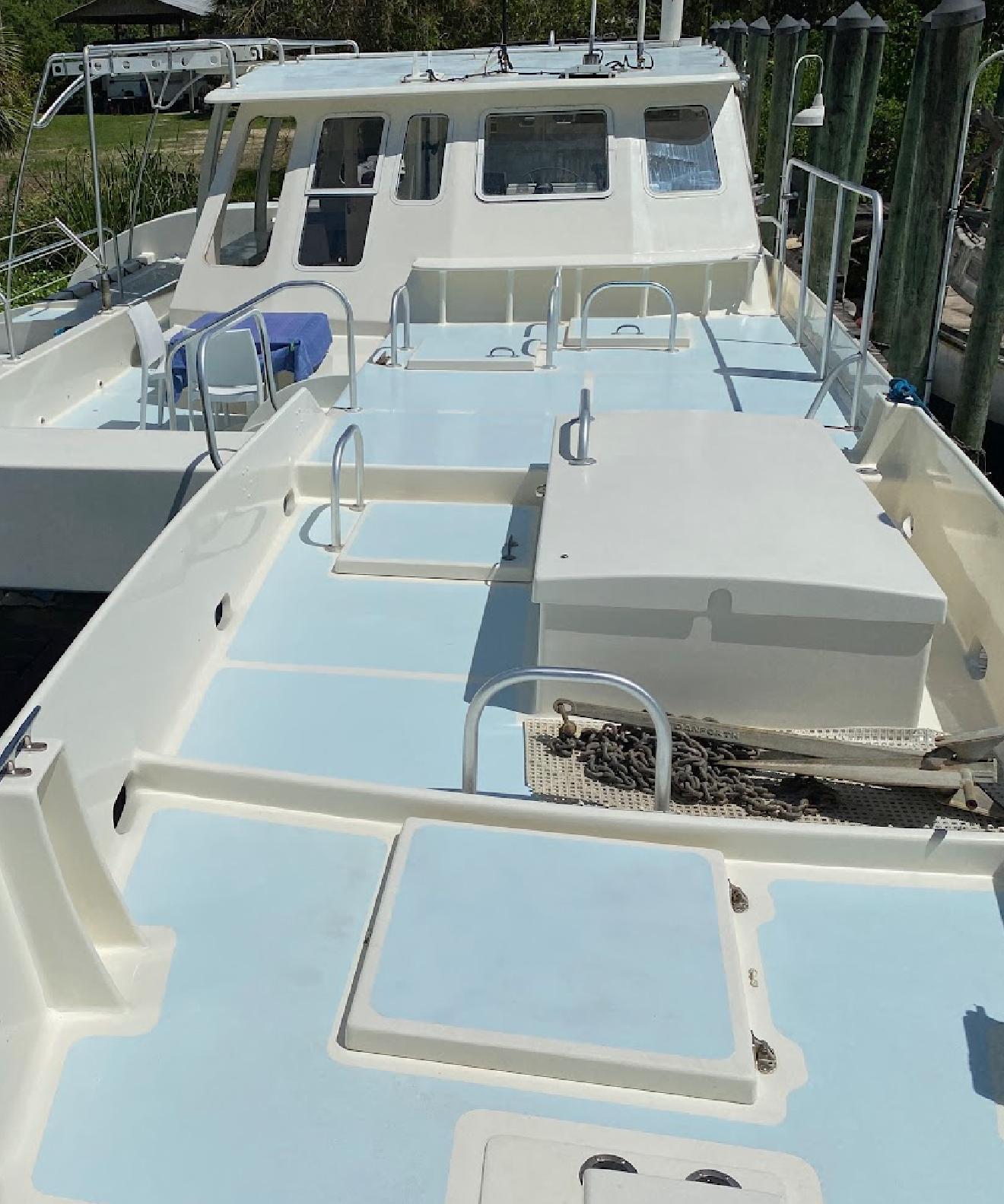 Adventures Await You with this stunning 1996 Custom Built 62 Power Catamaran. "Mirage" measures an impressive 76 feet overall and features a robust fiberglass hull with a sleek catamaran shape, ensuring stability and performance on the water. Equipped with twin Honda 150 hp outboard engines, each with 1800 hours, it offers a cruising speed of 7 knots and a maximum hull speed of 10 knots, making it ideal for leisurely outings or adventurous excursions. The current owner did 5 day expeditions which included Snorkeling, Kayaking, Wind Surfing, Kite Surfing and Touring in the Bahamas, Florida Keys and most recently Pine Island Sound.The interior boasts six comfortable cabins and two heads, providing ample space for relaxation and privacy. With a seating capacity for 18, "Mirage" is the perfect expedition vessel. The electric windlass enhances convenience, making anchoring a breeze. This well-maintained catamaran is ready to deliver unforgettable experiences on the water, combining functionality with style for your next adventure. More info to come, Great Business Opportunity.Contact Craig Massey 941-662-7949
