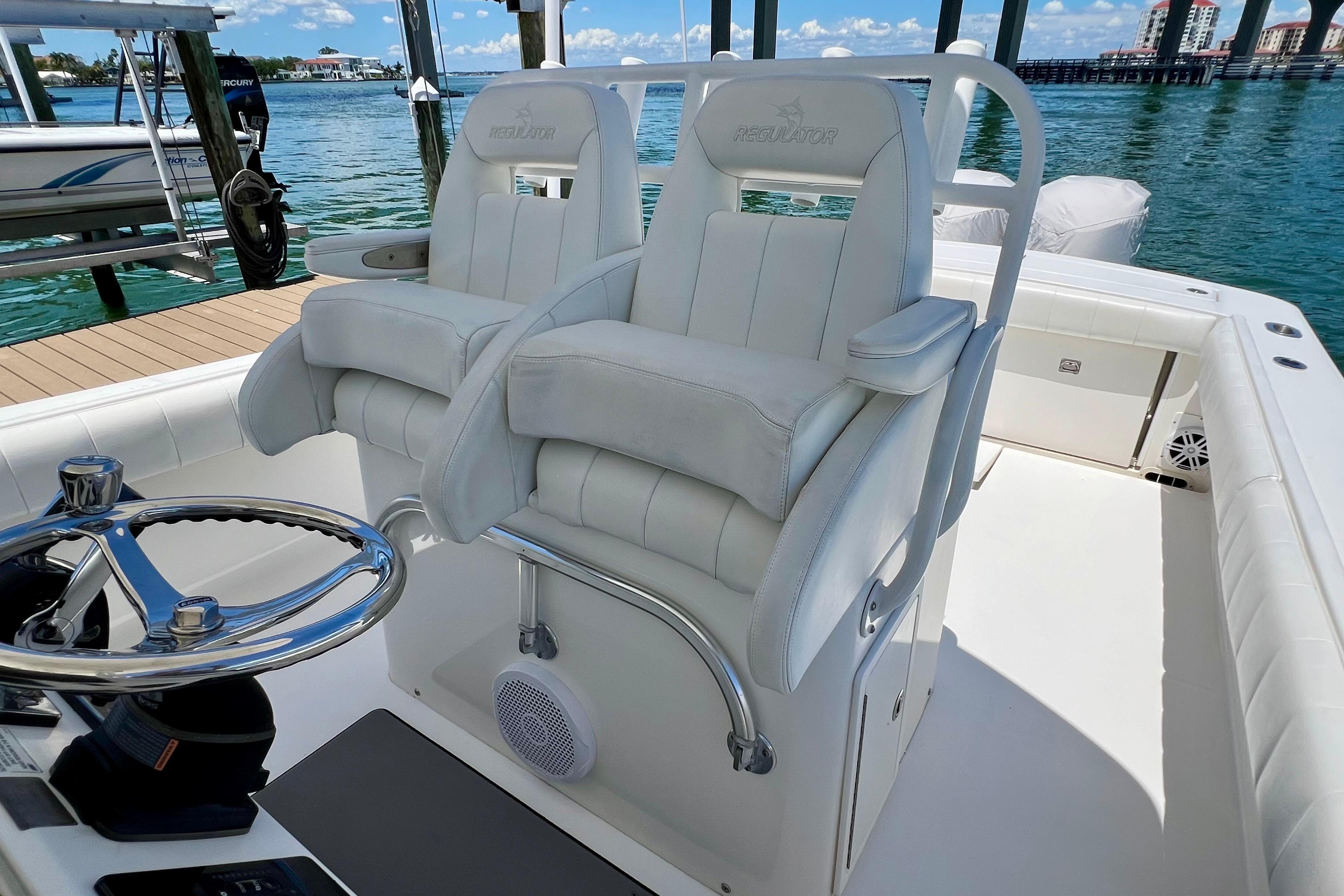Price Correction!! Absolutely gorgeous and extremely well (Captain) maintained 2012 Regulator 34 SS. Powered by twin Yamaha 350s. This boat has it all!! Including a new $30k Garmin electronics package, Full cabin with all the amenities of home, New Loadmaster triple axle trailer and so much more! Powered By Twin Yamaha F350 Four Stroke Engines with Impecable Maintenance Records!Whether you're into offshore fishing and diving, or just taking the family and friends on weekend get-aways. This boat is sure to please!! Pushing the envelope in shear size and innovation, the Regulator 34SS incorporates features engineered and built for the most serious fishermen, featuring expansive wrap-around forward seating plus second home accommodations including a compact galley, sleeping berth and head! The single-level cockpit is huge, uncluttered and strategically outfitted to make your fishing experience nothing short of extraordinary. Other boat manufacturers often imitate Regulator, but can never duplicate the overall quality, attention to detail and legendary ride!Dont miss out on this amazing opportunity! Call today to schedule an appointment to view! Showings available 7 days a week!!