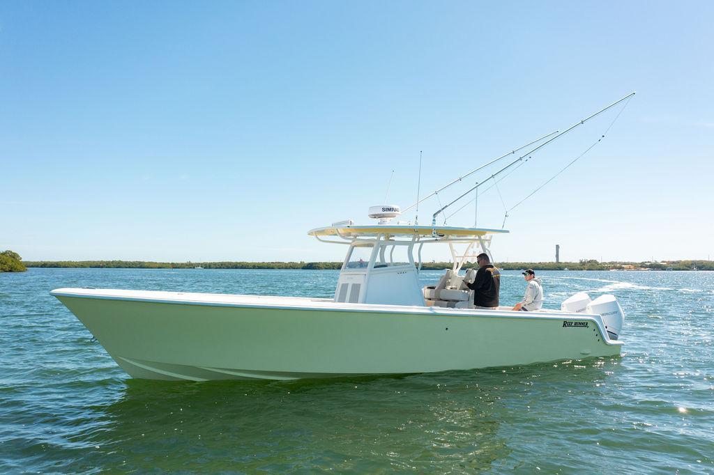 Single-owner boat, always kept in covered dry-stack storage. Fresh ceramic done 06/25. Turn-key, always serviced and looked after by the factory; just grab the keys, and she is ready to go!The Reef Runner 340 is a semi-custom center console that combines performance with comfort and innovation. This particular owner is only selling because he has plans to move into a bigger Reef Runner. This center console has a well-thought-out layout with options like forward seating, a bow thruster, Seakeeper ride, Simrad electronics, an oversized T-top, and Llebloc helm chairs.She is equipped with twin V8 300 Mercury engines with a Mercury warranty until 2026 and Seakeeper ride trim tabs, which are becoming well-known across the industry for the positive impact they have on the ride for these sub-35' center consoles. She will cruise in the upper 30s-low 40s mph and will be in the mid 50s mph wide open.Forward, there is integrated bow seating (with cushions, removable backrests, and storage), along with a molded anchor locker, (3) in-deck storage boxes, and (1) in-deck insulated kill box. At the console, you will find a deluxe console with front seat cushions, a tournament leaning post, an electric-breaker panel, and a Custom Llebroc Bench. In the cockpit, there is a rear-facing cooler chair with cup holders, a see-through transom baitwell, (1) in-deck storage compartment, and (2) in-deck insulated fish boxes.She also comes with Simrad electronics, which includes: Simrad 16" screens (2). Simrad VHFs (2), Simrad Autopilot, and Simrad Radar. Also included are underwater lights, a battery charger, electric reel outlets (2), a 7" Mercury VesselView, and a Marine Guardian protection system.For speakers, she boasts a serious package to make sure that you can bring the part anywhere you go. The sound system on board is a Rockford Fosgate Audio System with 4 subwoofers, 2 AMPs (4500 watts), and 10 speakers.Key Features/Upgrades:Warranty on the hull until 2033Single-owner boat, always kept in covered dry-stack storageTwin V8 300 Mercury engines with roughly 200 hours, warranty until 10/2026Seakeeper Ride Trim TabsSimrad Electronics PackageFull boat coverWindshield Clear PlexiRecessed Electronics Dash (with Pocket and Locking Plexi Door)Electric Head (with Holding Tank and Macerator Pump)Oversized Molded Hard Top with (6) rod holders, (2) downlights, and (3) spreader lightsConsole Rod HoldersTaco Grand Slam 390 Outriggers Bases with 18' Deluxe Aluminum Telescoping PolesPowder Coating on the helm pipeworkTaco Grand Slam 800 VHF Antenna Mount (wind up)Bow ThrusterFreshwater System (with Transom Shower)Saltwater WashAdditional Water Outlets (each)Additional Gunnel Mounted Rod Holders (6)Electric Reel 30 Amp Outlet Plug with Cover and Breaker (each) (2)Large Swivel Rod Holder (For Electric Reel) (each)Battery Charger30" Marine Curved Pro Series LED Light BarAdditional Spreader Lights (each)Underwater Lights (3)