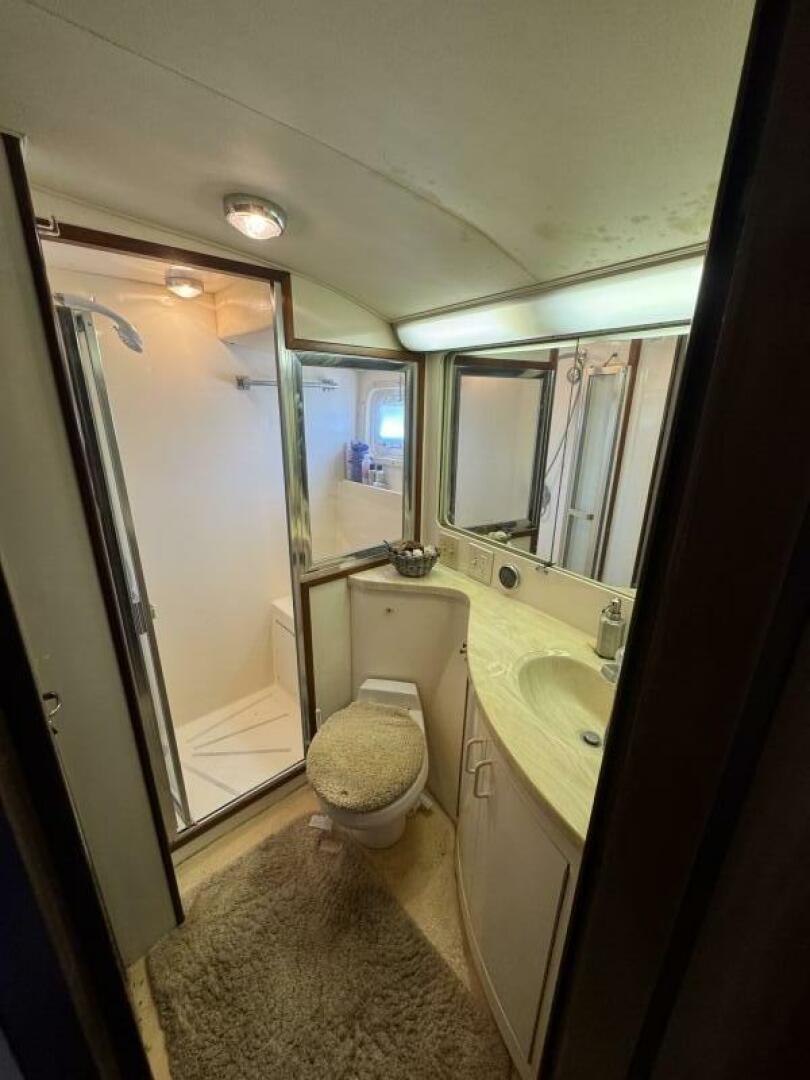• Canvas covers: flybridge three-sided enclosure, flybridge console and cockpit partial Bimini