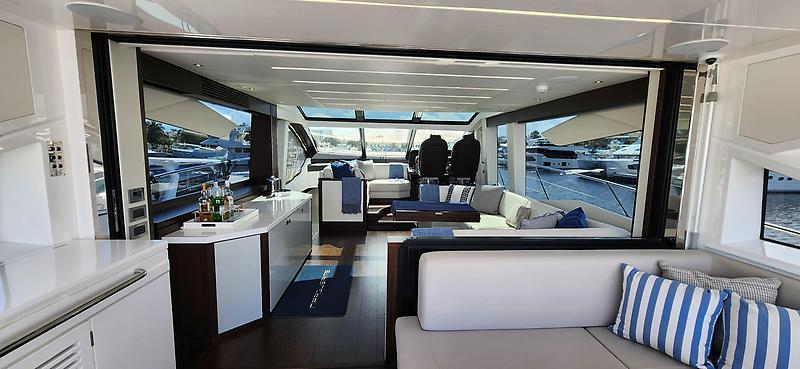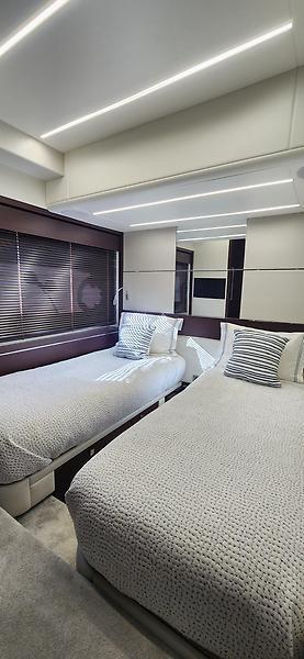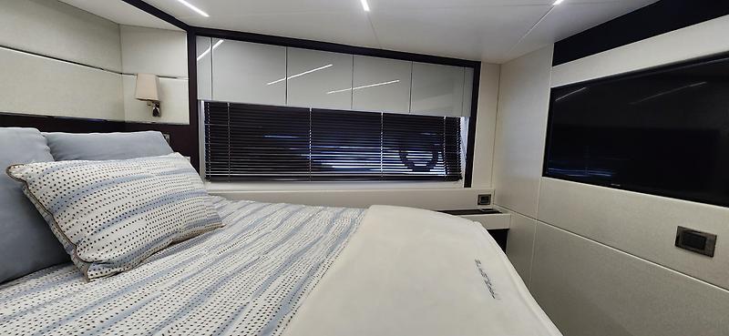 The new Predator 74 has all the hallmarks of greatness. Striking style, remarkable power and an innovative use of light and space. This latest Sunseeker can accommodate whatever your lifestyle desires. Lazy afternoons soaking up the sun on her spacious exterior decks or putting her through her paces at speeds up to 40 knots across the blue waters. The new Predator 74 has been built without compromise and without equal. Perhaps most breathtaking is the exterior, with sleek yet oversized pillarless windows down to the side deck. Providing uninterrupted views of your surroundings and letting natural light completely flood the interior. On top of this, you'll find a cleverly engineered cockpit door mechanism which opens conventionally, or lowers itself completely into the sole of the yacht all at the simple flick of a switch. So offering the best of both worlds; to suit you and the environment you're travelling in. Inside, the generous saloon proves to be the perfect spot for entertaining, with a sumptuous seating area, ample storage and comprehensive port-side bar console; all below an extraordinary panoramic glass sliding roof. Every cabin is equipped with state of the art entertainment and the attention to detail is flawless. Guests will feel truly pampered in whichever one of the guest cabins they dwell with the master stateroom offering exceptional space and the flexibility of a walk-in wardrobe.