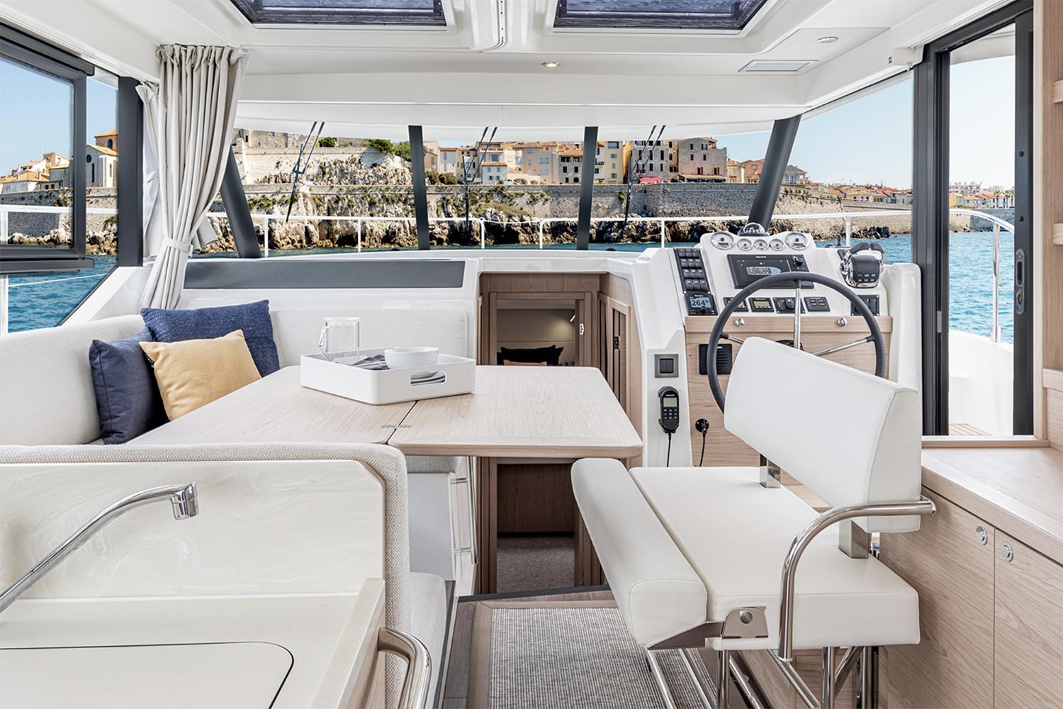Available build slot for winter of 2025 delivery. Starting MSRP listed before options and available discounts. We accept trade-ins and have competitive financing available. Contact us today for more information and our competitive pricing.A generous passagemaker, the Swift Trawler 41 successfully renews the spirit and style of the trawler range. Ample living space, comfortable and practical, this new innovative 40-foot powerboat, available and both Fly and Sedan versions, has an on-board capacity of up to 7 passengers.Brightness, user-friendliness and comfortable living characterize the welcoming yet practical spaces of the Swift Trawler 41. There are lots of innovative solutions making life easy aboard. The aft galley links seamlessly with the cockpit, which has a sliding bench making it easy to get to the swim platform. In the wheelhouse, the pilot site rotates, allowing eight passengers to sit down in the saloon. The lounge space converts to a comfortable double berth sleeping space, surrounded by a curtain for privacy. Below deck, the three cabins on board bring to 7 the number of passengers the boat can accommodate comfortably on this innovative family cruiser.