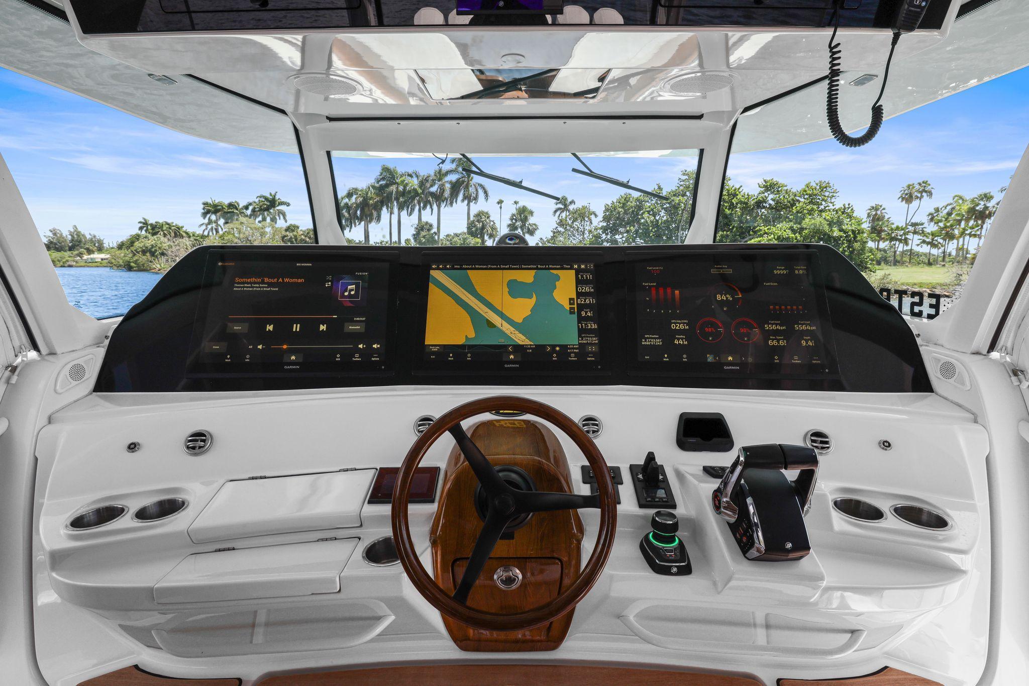 New to Market! Located in Jupiter, FL The Ultimate Center Console Yacht! One of the Most Highly Customized 65 Estrella in Existence, Built by an Avid yachtsman who thought of everything! You will not find a Nicer 65 Estrella new or used! Captain Maintained, No expense ever Spared! Six Mercury 600 V12's , Recently Fully Serviced with Low Hours! Key Features! One of Kind Custom Pearl White Paint JobSeakeeper 9 20KW Northen Lights Diesel Gen Full Teak Sole Throughout High Gloss Teak Accents Throughout with Toe Rail Custom Summer Kitchen with Sun Pads on Top Transom Lounge Seat Electronics Mast with Starlink WIFI Custom Teak Ottoman's for Cockpit Area Upgraded Cockpit Refrigeration with Ice MakerCustom Helm Enclosure for Foul Weather Inquire for Full Factory Build Sheet and Full List of Custom Options!