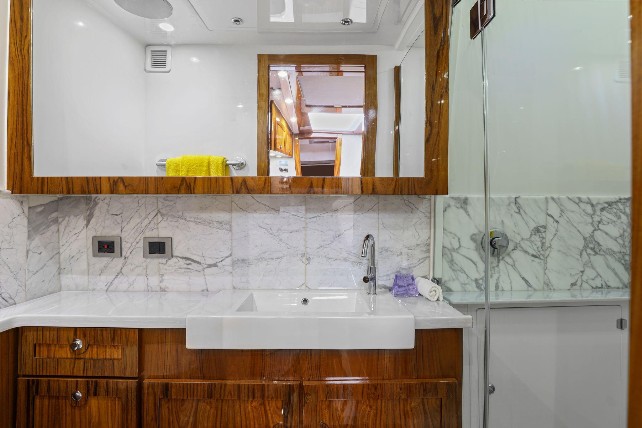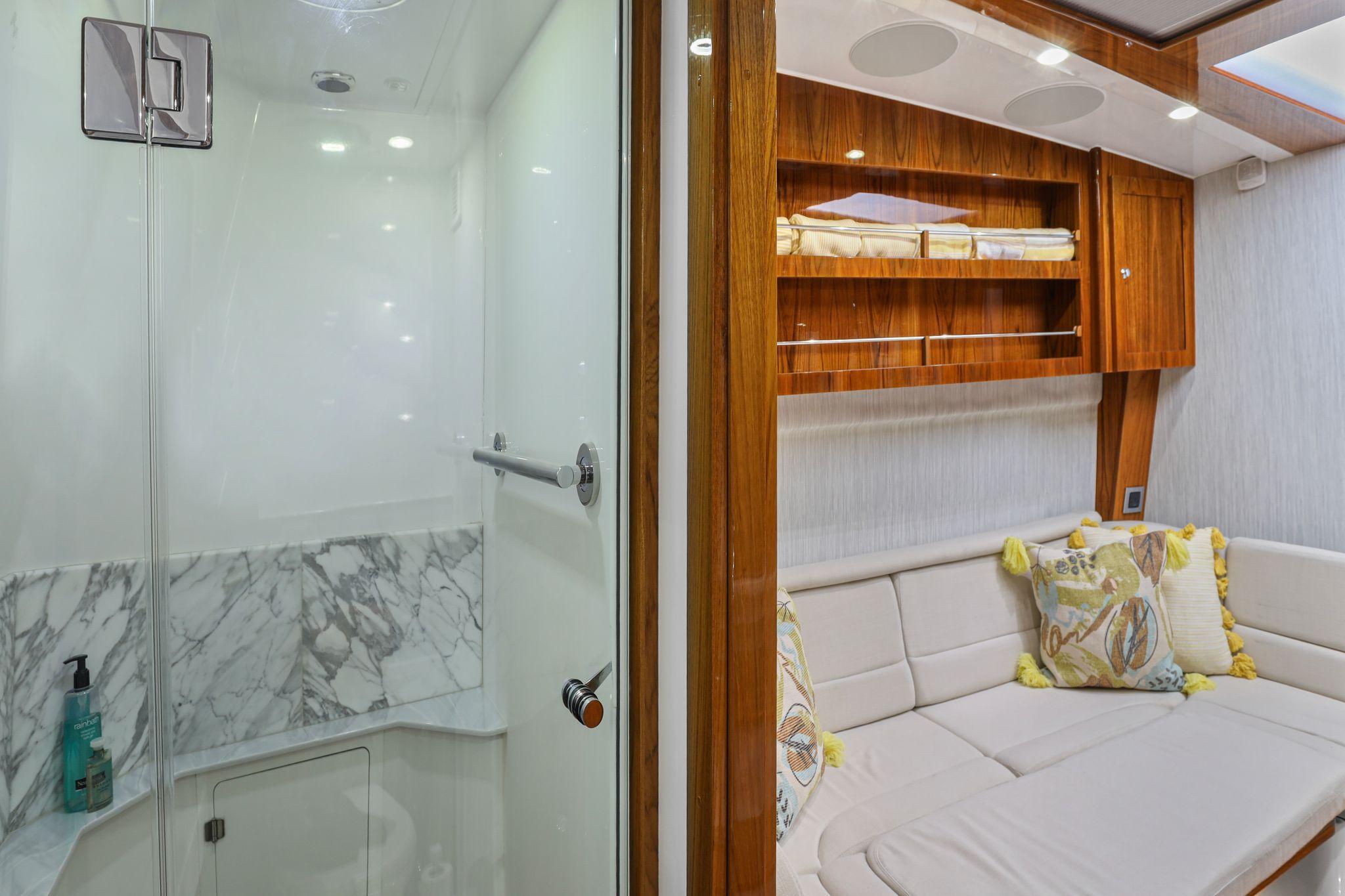 This vessel has all the comfort and styling of any sportfishing or cruising yacht in its class, but far surpasses them in versatile use and performance. There is an unimaginable amount of comfort and space aboard with a huge cockpit, a cabin that is twice as large as other center consoles, standard bow and stern thrusters, and large 1,730 gallon fuel capacity for long range. There is a comfortable European inspired bow seating area and deluxe front lounge for those wishing to sun worship. And aft is a customizable rear mezzanine seating area with a variety of feature configurations. Finally, for the mechanically inclined, there is a walk-in machine room where everything is within reach and out of the elements.