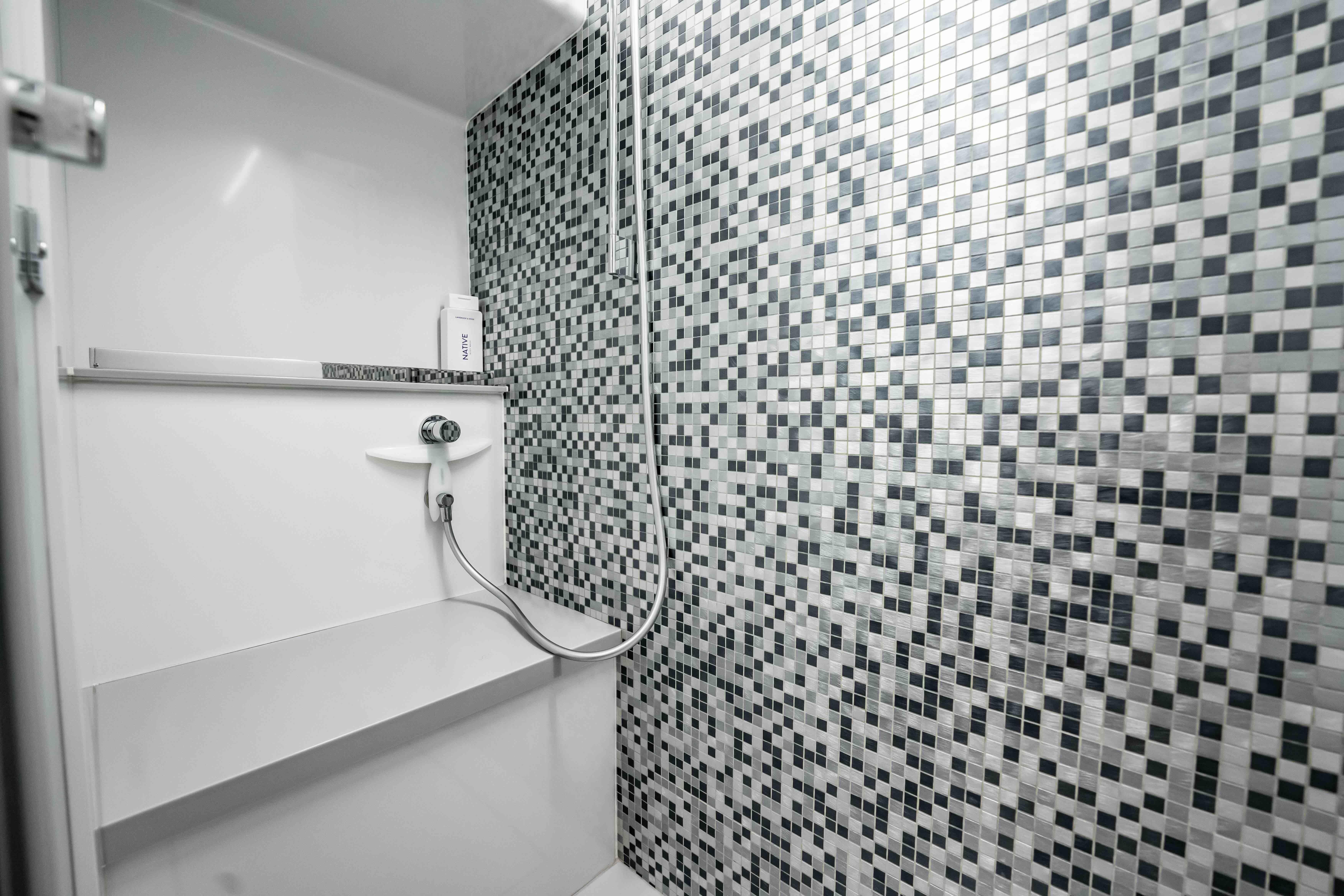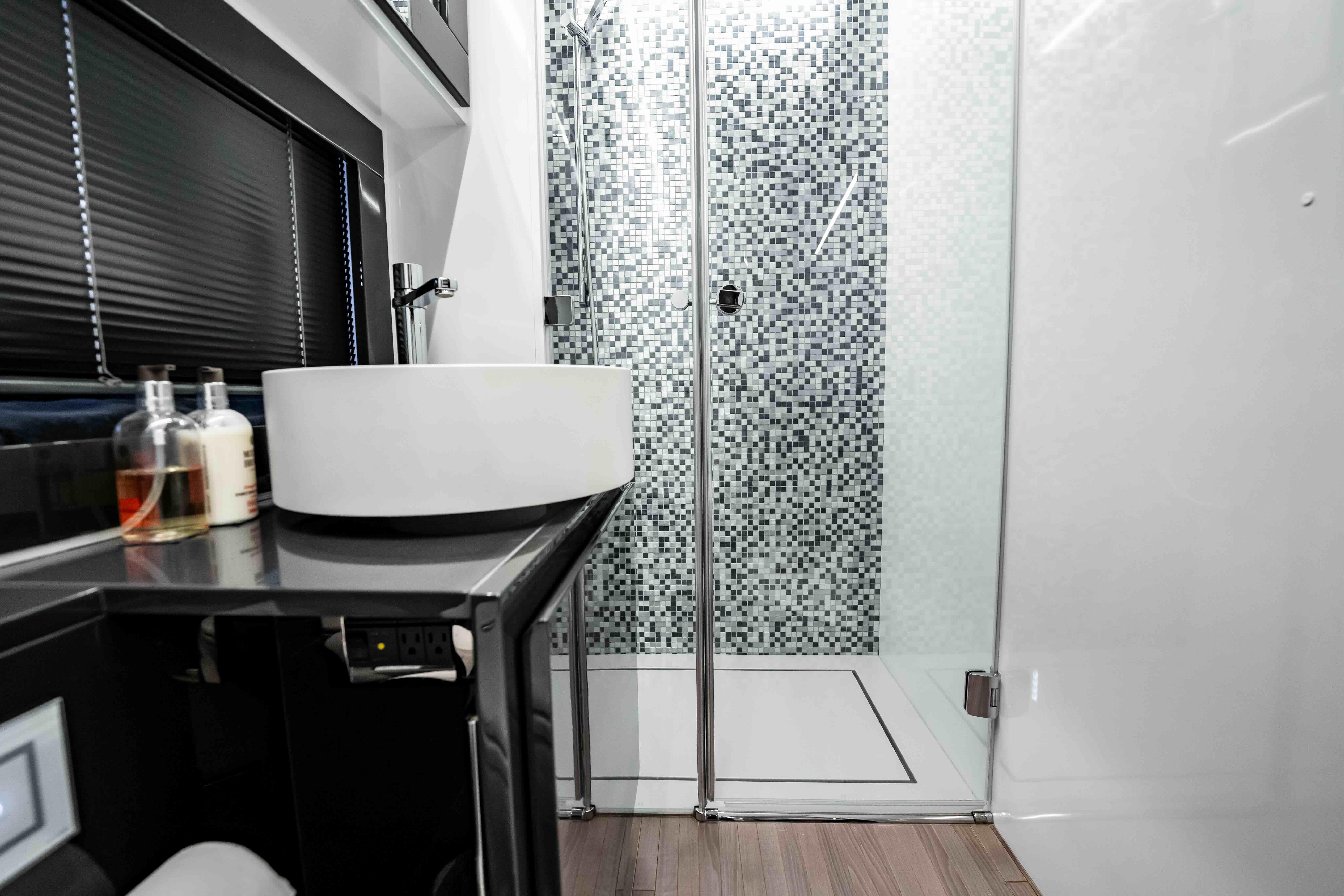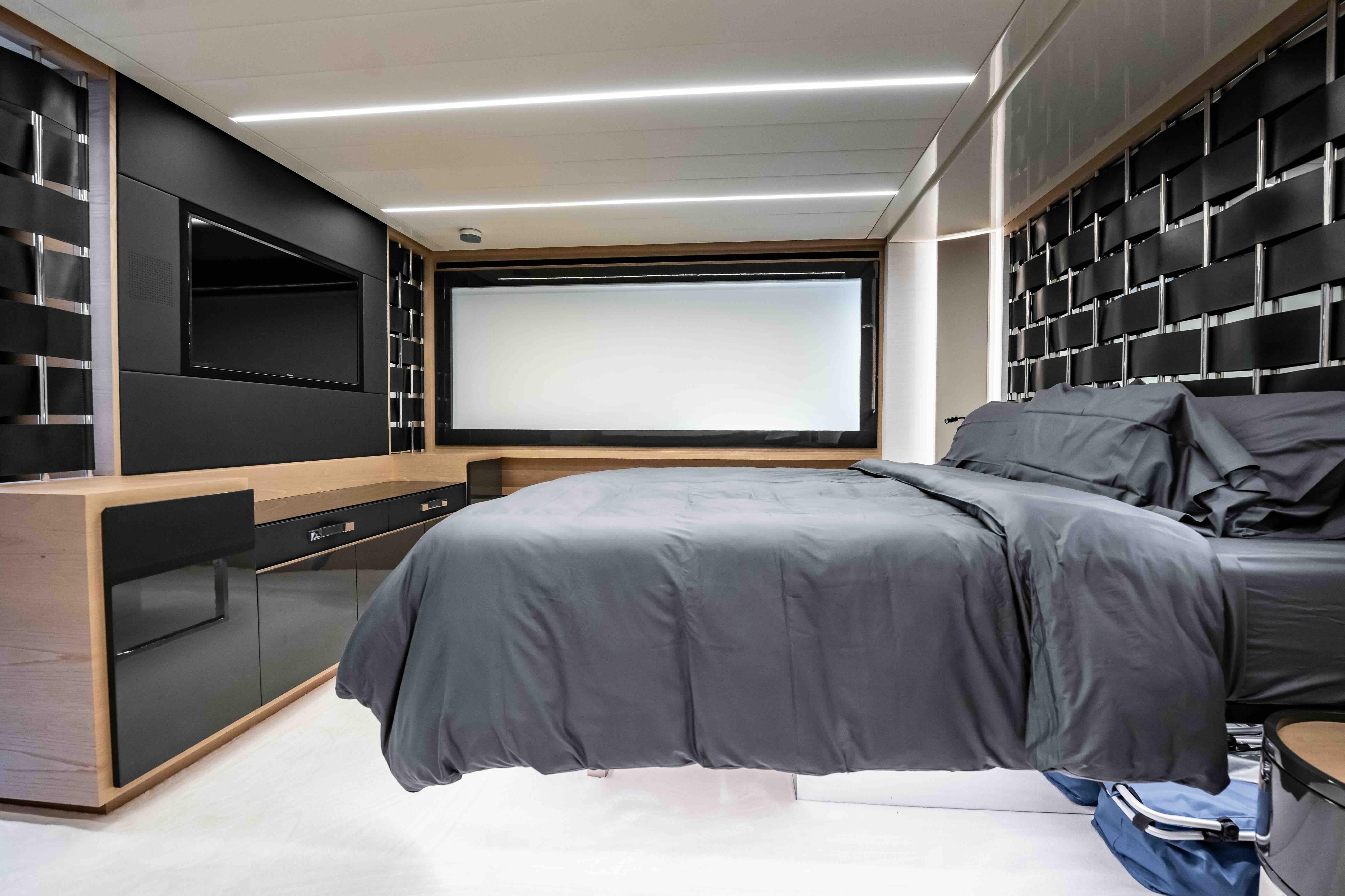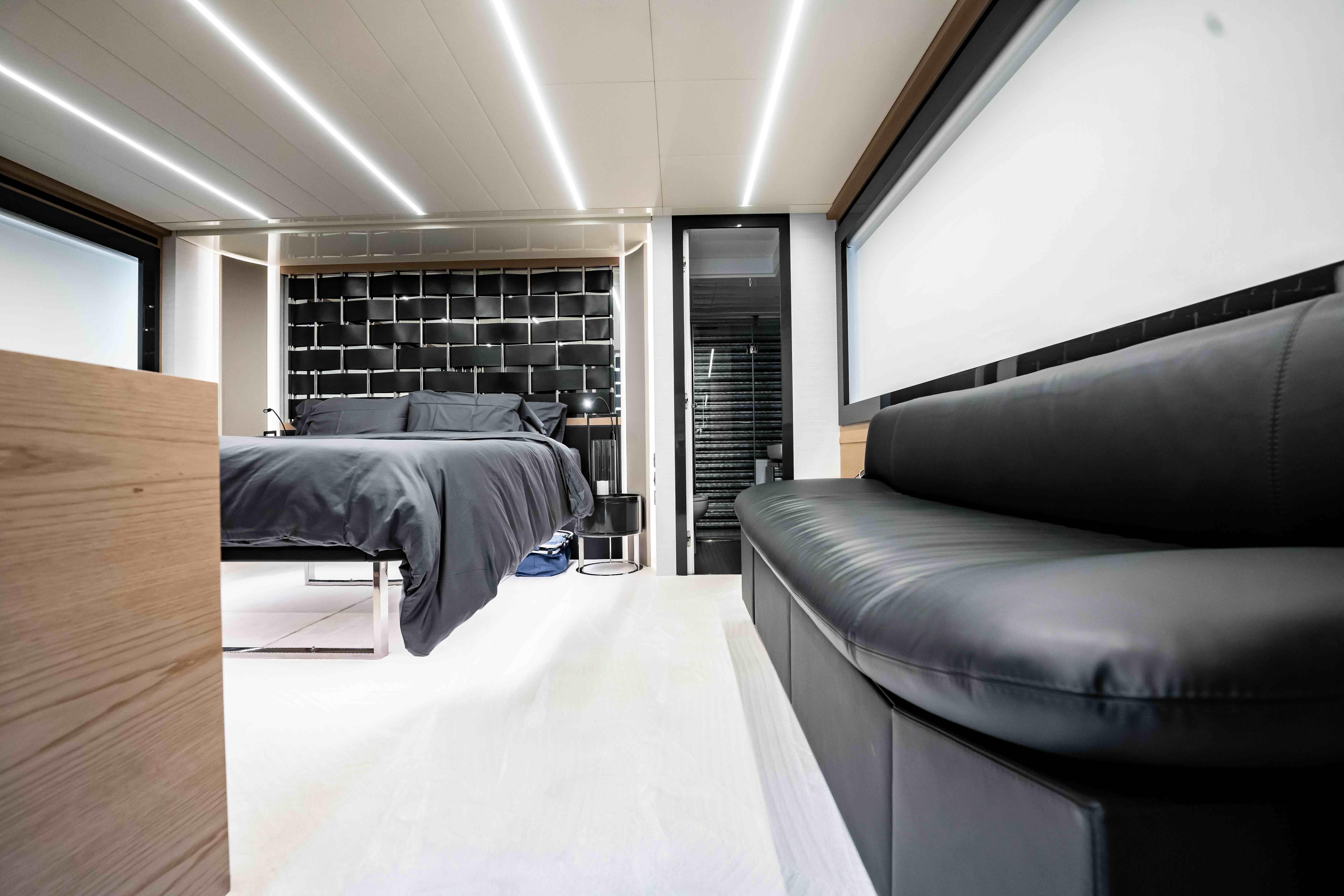 • Hideaway sliding aft door in black painted aluminium and crystal