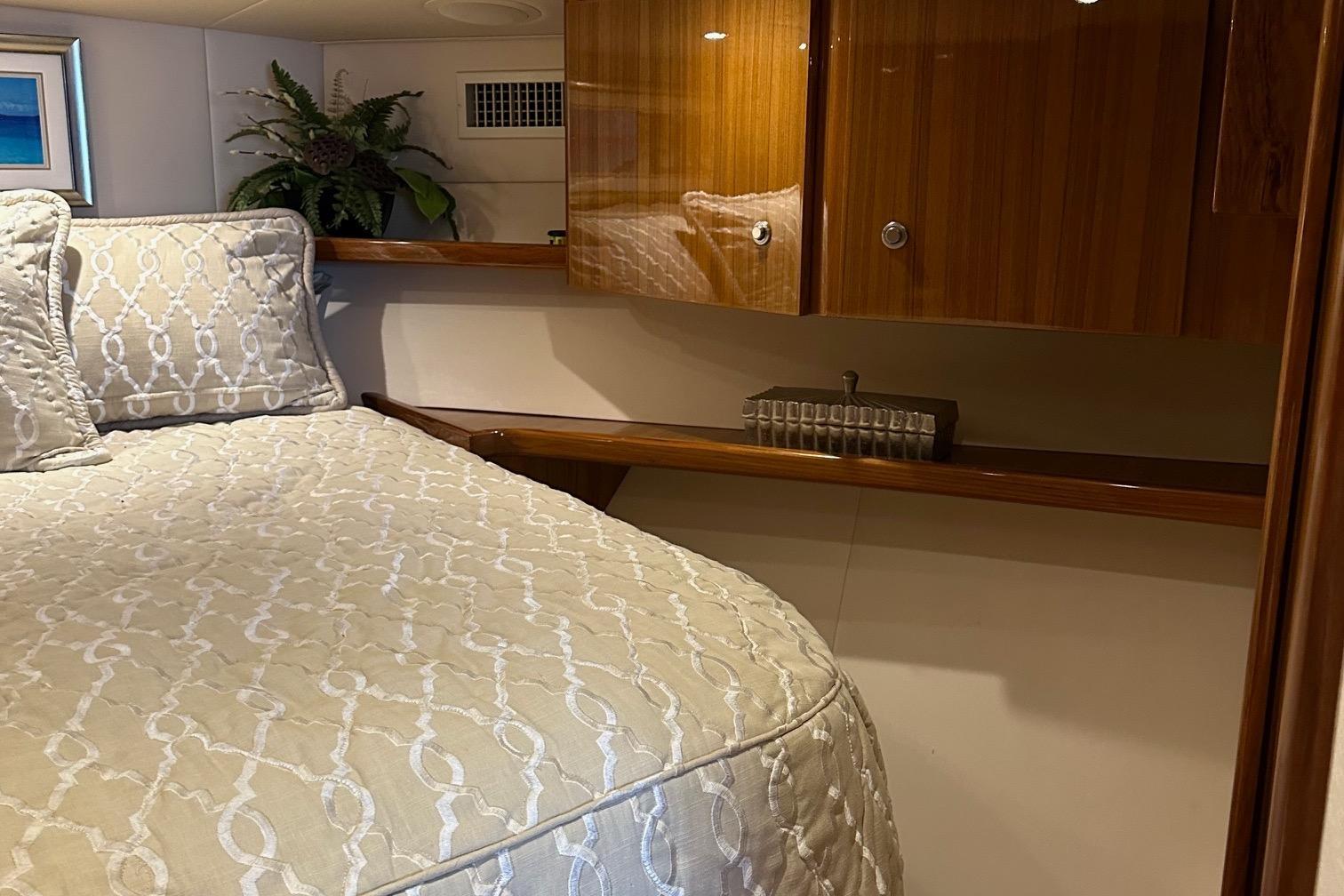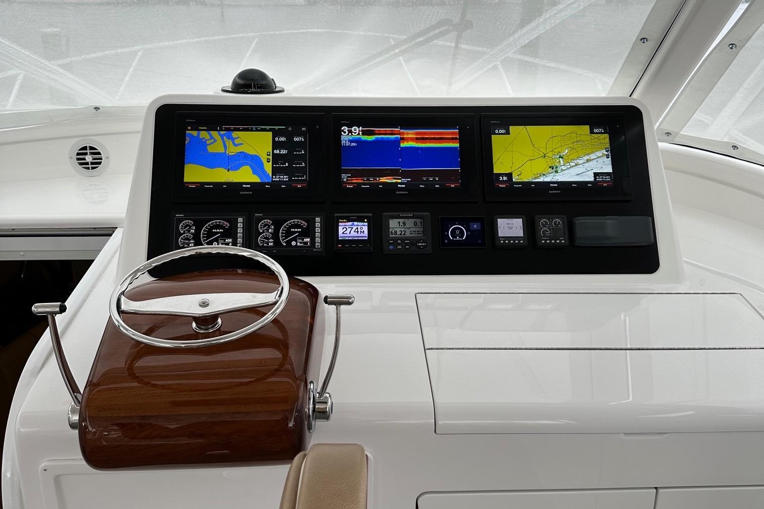 Viking 44 OpenLocation: Stuart, FloridaType: Sportfish / ExpressCondition: ExcellentPower: Twin MAN 800HP Diesels (30-knot cruise / 34.5-knot top end)Generator: Onan 13.5kW E-QD (approx. 545 hours)Stabilization: Seakeeper SK6 GyroOverviewThe Viking 44 Open offers a dynamic blend of fishing capability, cruising comfort, and classic East Coast styling. Whether you're chasing sailfish off Florida’s coast or exploring the Bahamas, these models deliver power, versatility, and luxury in a compact, manageable package.Sport Tower (ST): Features a Palm Beach Towers tuna tower with outriggers—ideal for tournament fishing.Cockpit & Command Deck119 sq. ft. cockpit with self-bailing deck, non-skid surfaces, and large scuppersTransom live well and fish boxIn-deck insulated fish boxes with pump-outTackle storage, gaff lockers, drink box, and step-box coolersObservation mezzanine seating with freezer and storage beneathTransom door with lift gateEngine room access via centerline hatchJL Audio stereo, flush-mounted rod holders, Rupp outriggers & center riggerPalm Beach Towers full tuna tower with second helm and electronicsCommand Deck Highlights:Raised centerline helm station for optimal visibilityThree adjustable Release Marine helm chairsL-shaped lounge with tableAir conditioning and Costa Clear enclosureIntegrated electronics, recessed compartments, and molded fiberglass windshield frameStorage drawers, tackle cabinets, and refrigeration to portFiberglass helm pod, trolling valves, and bow thruster controlsInterior / SalonAccessed via a sliding companionway door and wide stairwell with handrailClimate-controlled salon with 16'4" beam—the widest in its classL-shaped lounge with dinette and hi-lo teak table24" Samsung HD TV, Fusion stereo system with DVDHigh-gloss teak cabinetry, Corian countertopsSub-Zero under-counter refrigerator & freezerKenyon two-burner electric range, microwave/convection ovenTeak & holly Amtico flooringOverhead LED lighting and rope lightingAccommodationsMaster Stateroom (Forward):Island queen berth with lift-up top and maple-lined storageHanging locker, drawer storage, overhead LED lights22" flat-screen TV, stereo speakers, reading lightsReverse-cycle air conditioning with digital controlGuest Stateroom (Aft):Double berth with quilted bedspreadHanging locker, LED lighting, air conditioning fan controlIncludes bedding packageHead:Dual entry (from stateroom and salon)Molded fiberglass shower with lightOne-piece Corian countertop with satin nickel faucetTeak vanity, mirrored medicine cabinetAmtico teak & holly flooringElectric head with overboard and holding tank dischargeElectronics (Atlantic Marine Electronics Package)(3) Garmin 7616 16” MFDsGarmin GHP Reactor AutopilotGarmin GSD-26 CHIRP sounder with Airmar transducerGarmin 2524 xHD2 25kW radar with 4' arrayFLIR MD-625 thermal imaging cameraIcom M-506 VHF radios (2) + VHF Command Mic at towerFuruno RD33 data organizerKVH TracVision SAT TV with dual receiversFusion MS-UD 755 stereo w/ BluetoothSiriusXM, AIS-600, GXM53 Weather module(4) Lumishore underwater lights (white)URC WiFi remote in salonMechanical & SystemsSeakeeper SK6 gyro stabilizerSide Power bow thrusterFuel transfer system“Delta-T” engine room ventilation systemOil change system for mains, generator, and transmissionsRacor fuel/water separators24V/12V electrical system with breakers and distribution panelBattery parallel and charging systemsFire suppression system with manual/automatic dischargeLenco trim tabs with indicatorAC/DC lighting in engine roomSnow White Awlgrip paint throughout engine spaces for visibility and cleanlinessPlumbing / HVAC / ExtrasBluewater 600 GPD watermaker with auto backflushQuick recovery electric water heaterFreshwater system with pump compartment accessAir conditioning with reverse cycle heat throughoutDockside water connection with tank fillDockside pump out for holding tankCentral vacuum systemEskimo ice machineSmoke & CO2 detectorsUSB (Apple-compatible) outlets in salon and stateroomsHull & Deck FeaturesMolded fiberglass hardtop with tower sunshadeNon-skid decksPainted rub railStainless steel cleats, hawse pipes, and bow railAnchor locker with deck accessLewmar windlass with 12' chain and 300’ rodeProp pockets for reduced draftMagnetic bilge light switchesRecessed rod lockers in hardtopExclusionsOwner’s personal belongings and gear not included in sale.DisclaimerThe company offers this vessel in good faith but cannot guarantee the accuracy of this information or the condition of the boat. Buyers are encouraged to inspect and survey the vessel independently. This listing is subject to change or withdrawal without notice.