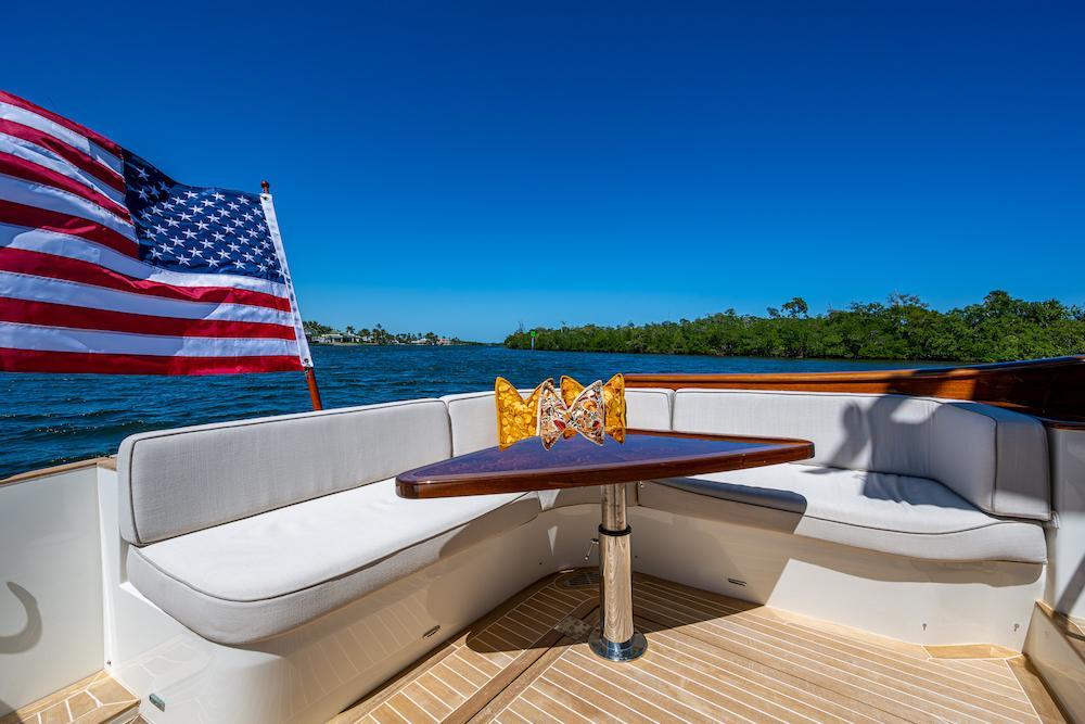 Paint and FinishHull: Owner’s choice of standard Awlgrip® colors. Deck: Owner’s choice of standard Gelcoat colors. Bottom: Owner’s choice of Hinckley recommended paints. Boot Top: Single or double boot top in owner’s choice of Awlgrip® colors. Exterior Teak: Minimum of nine coats of tung oil varnish. Interior: Satin varnish. Boat Name: Name and hail port on transom in 22 kt gold vinyl backed lettering in owner’s choice of styles.