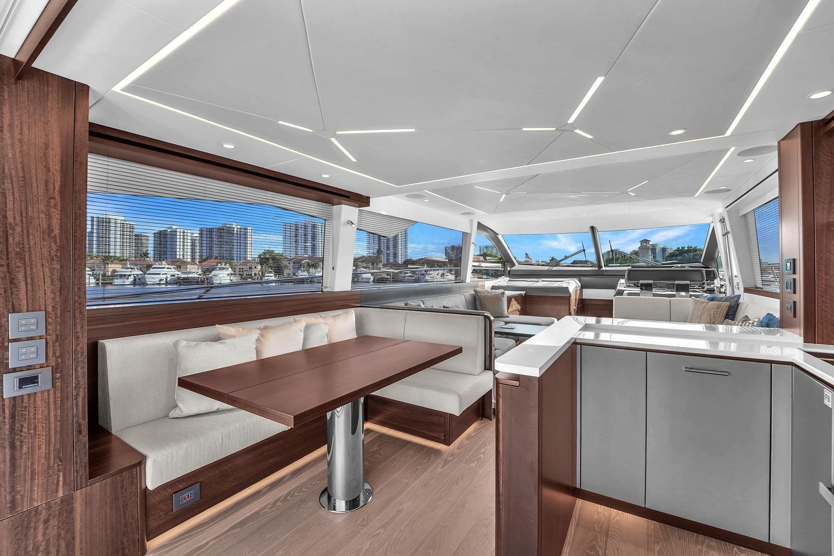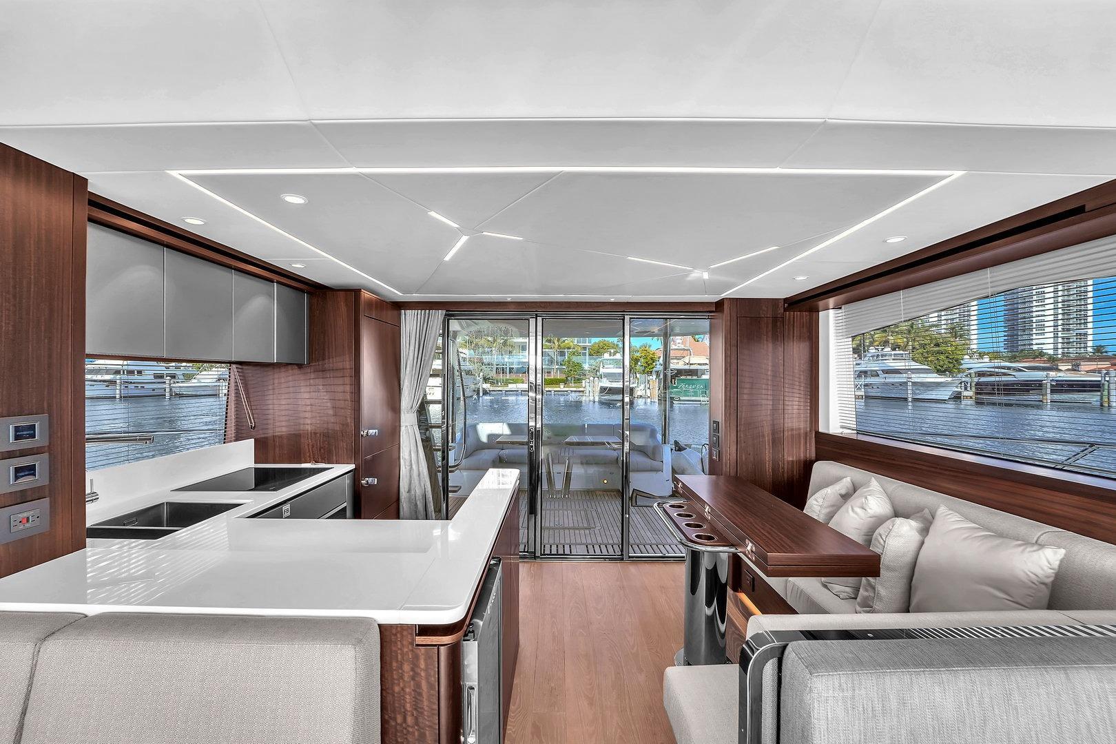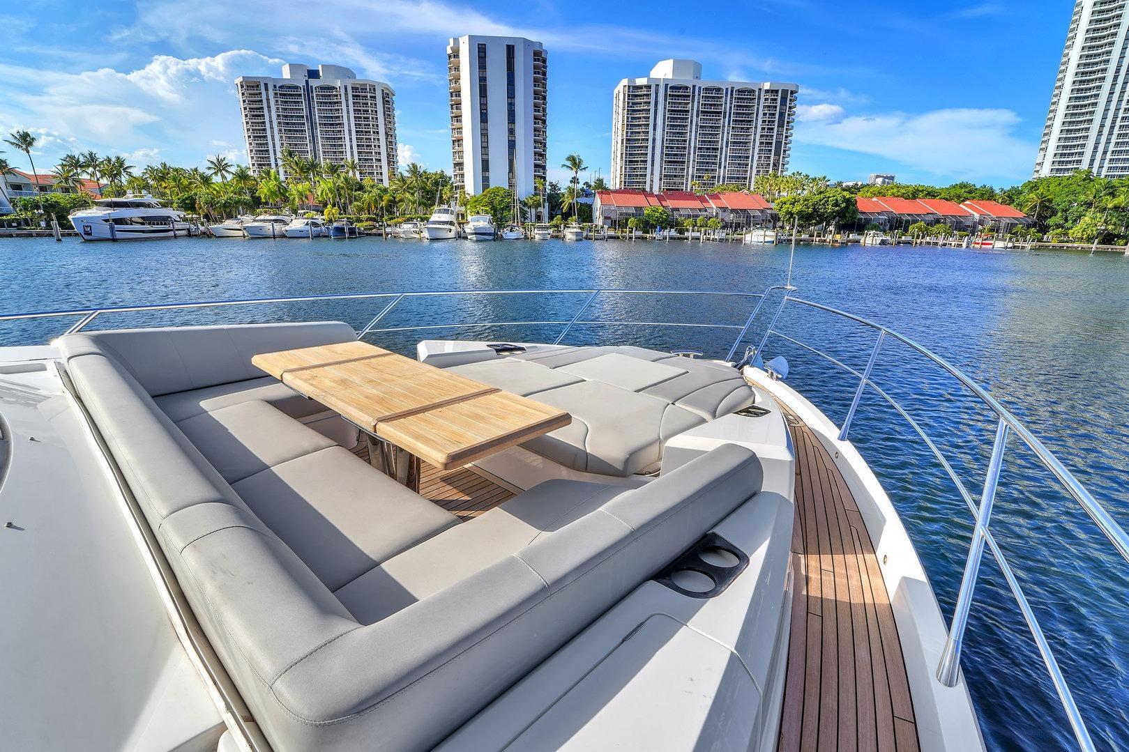 2023 SUNSEEKER MANHATTAN 68 PACIFICThe Pacific arrangement offers an exceptional amount of space for a boat of this size. In a standard configuration, owners benefit from a four cabin, three head layout with the galley set aft at main deck level. In lieu of a fourth cabin and private staircase to the master cabin, the Pacific arrangement offers stunning double U-shaped seating in the saloon and an exceptional ‘Grand Master’ suite below deck. The generous saloon features social seating to the port and starboard side with a discreet rise and fall TV that can be tucked away when not in use, promoting uninterrupted views out to sea. The dining area has L-shaped seating and a table that effortlessly folds away, freeing up more floor space and again promoting a spacious and welcoming main deck.The master cabin affords owners with flexibility to use their private space however they wish. Upon entering, a new ‘Grand Master’ layout delivers deep comfortable companion seating outboard, positioned opposite an expansive sideboard with stowage. On the portside, adjacent to the king bed, owners can then opt for a chaise longue, breakfast table and seating, vanity table with additional drawers or another comprehensively equipped sideboard. What’s more, the master cabin benefits from its own private bar complete with glass stowage and refrigeration. This exceptional layout strikes a perfect balance between ample social spaces and generous private quarters.The new interior design is matched with a peerless level of comfort and detailing; from recessed feature lighting to chrome highlights and luxurious furnishings, the overall impression is one of immense comfort to anyone stepping on board. Key Features:Low hours with full MAN warrantySunseeker transferable BPP hull warranty - active with 14 months remainingPreferred Pacific model with oversized master and larger salonGyro zero-speed stabilizersBeach Club with additional storage for 2 seabobs and scuba gearUS duty paid and US spec