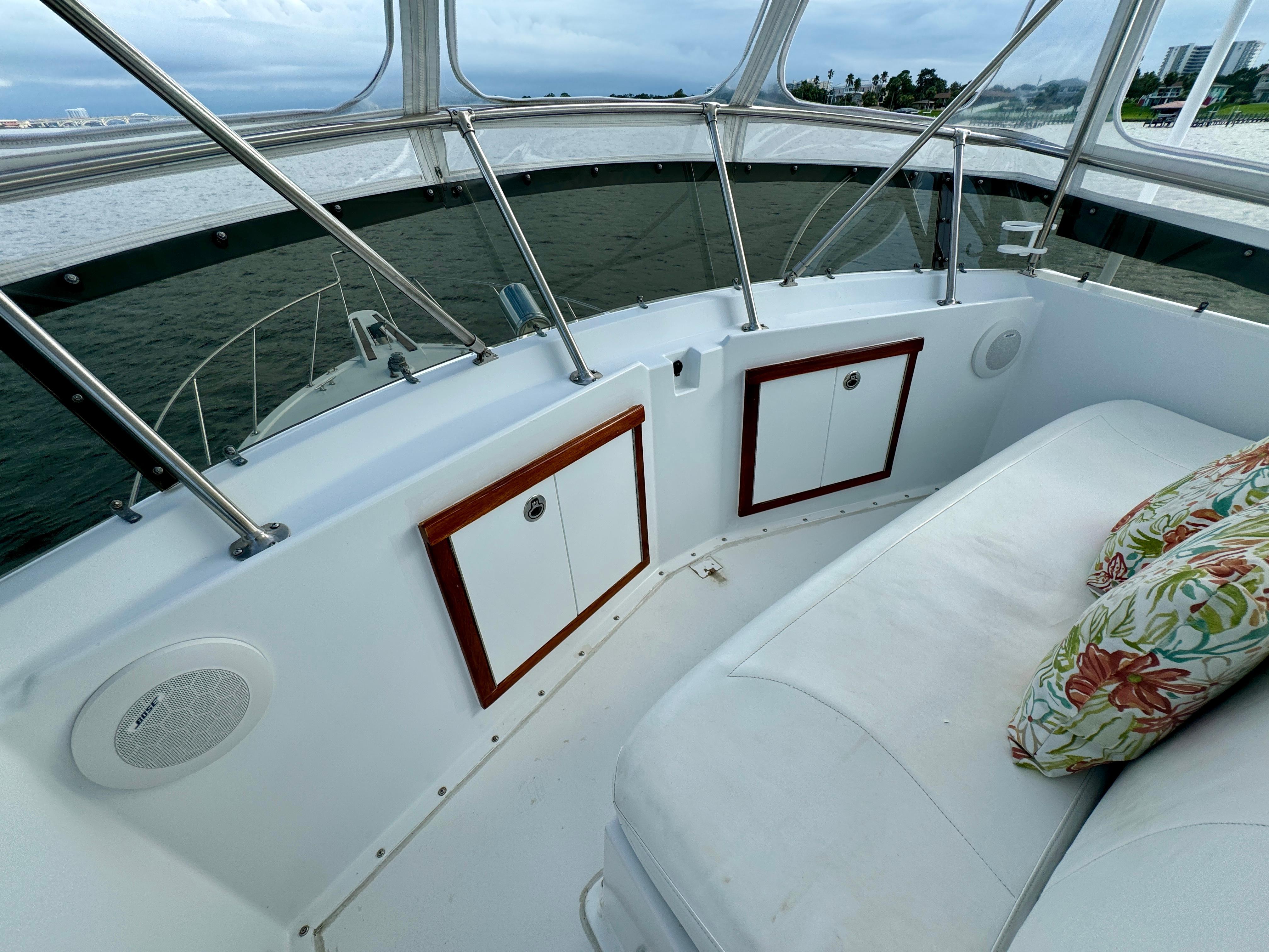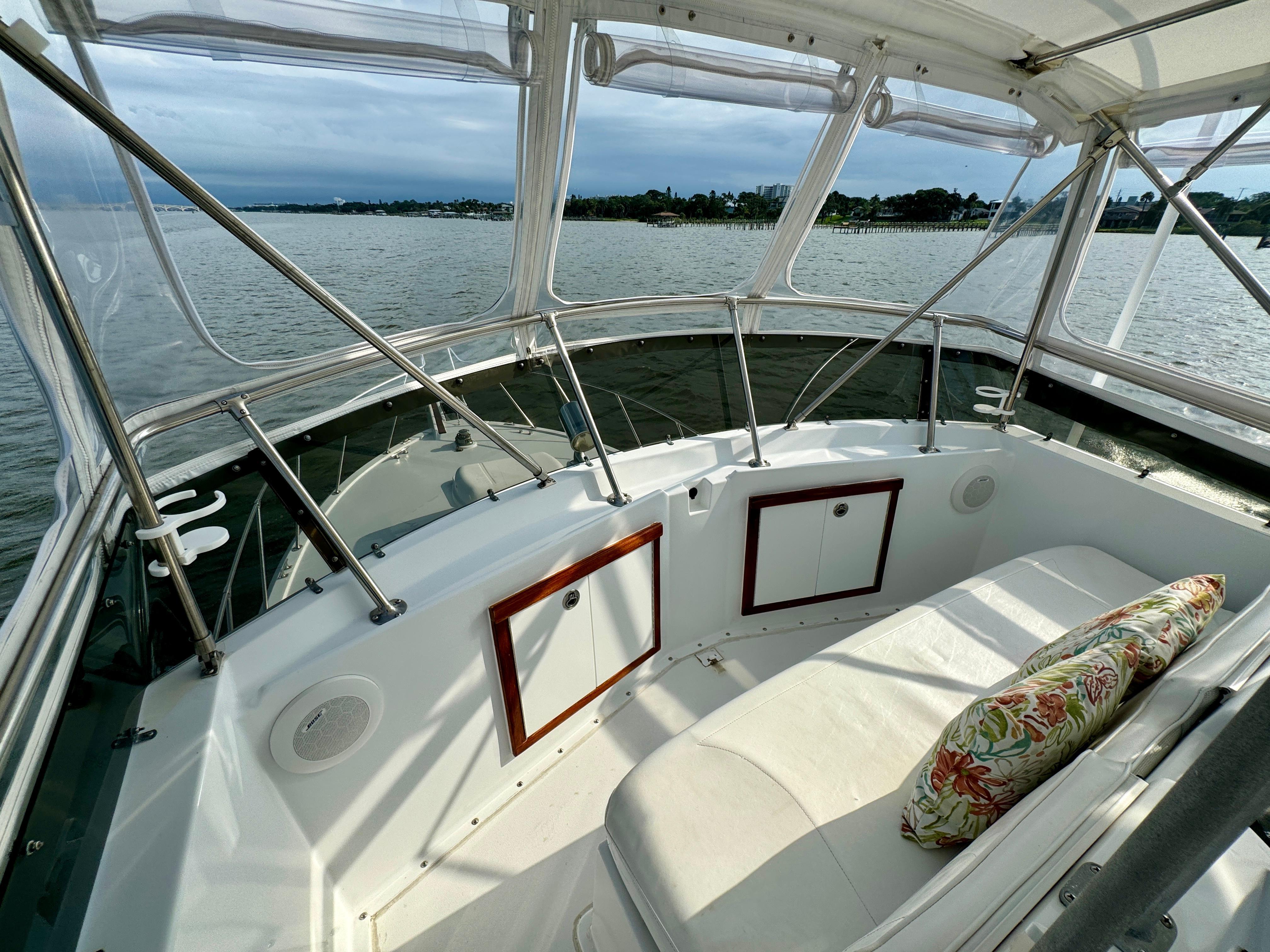 Flybridge with forward seating and aft helm offering full visibility