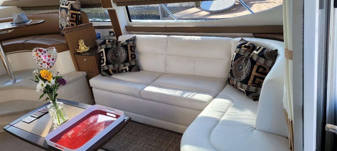Check out this beautifully maintained Meridian 391 Sedan. Recently all of the Canvas and Isinglass has been replaced, exterior cushions have been recently reupholstered with high grade marine fabric. A itemized list of all upgrades is available. The Meridian 391s are so popular due to their luxurious interior appointments and open salon floorplan that makes for great entertaining with your guests. The lower level cabin has 2 staterooms and 1 head and full shower stall. Equipped with twin 450 hp Cummings diesel engines with less than 600 hours on them.