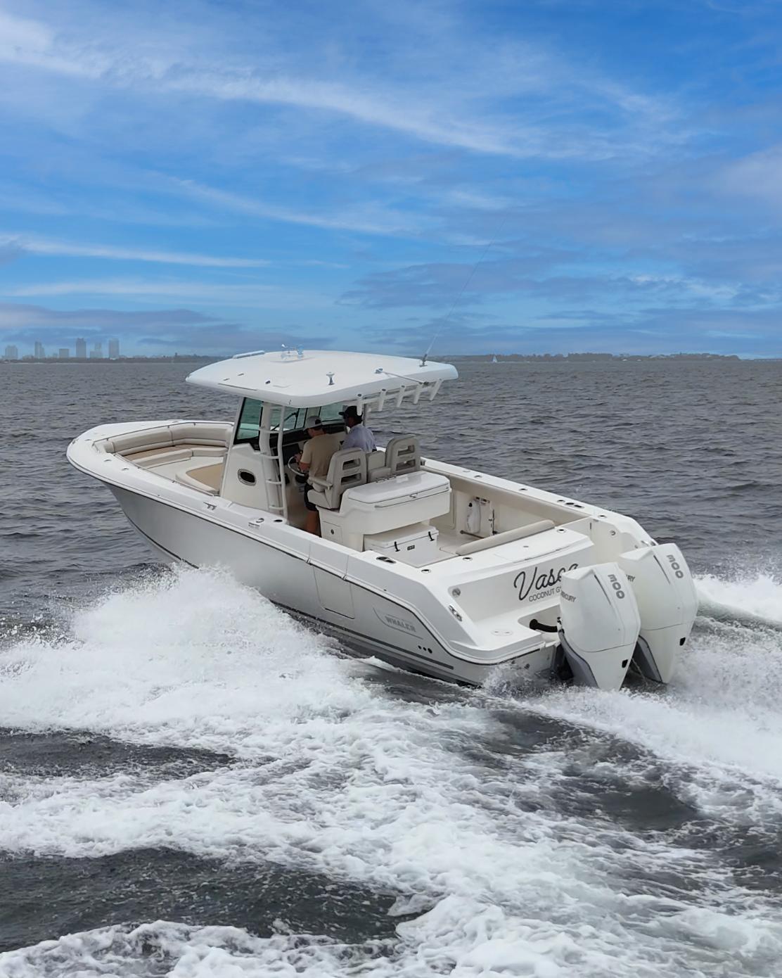 2021 Boston Whaler 330 Outrage Excellent opportunity to acquire a lightly-used 2021 Boston Whaler 330 Outrage. Sporting the reliable Mercury 300 V8 power package and a full suite of Raymarine electronics - "Vasea" is a prime example of what a Captian maintained tender represents. This particular 330 Outrage was almost never towed and was used solely as a sandbar tender in South Florida. With all services up to date,"Vasea" is summer ready to fish and explore the Islands. Notable features include:Twin Mercury Verado 300 V8Dual Raymarine Axiom MFDRaymarine AutopilotJL Audio Sound System Folding Aft Bench Forward Lounger Side Dive Door Leaning Post Tackle Station Leaning Post Refrigerator Windlass Anchor Classic Whaler White with Silver Accent Stripe Conveniently located in Coconut Grove, FL and available to show by appointment.