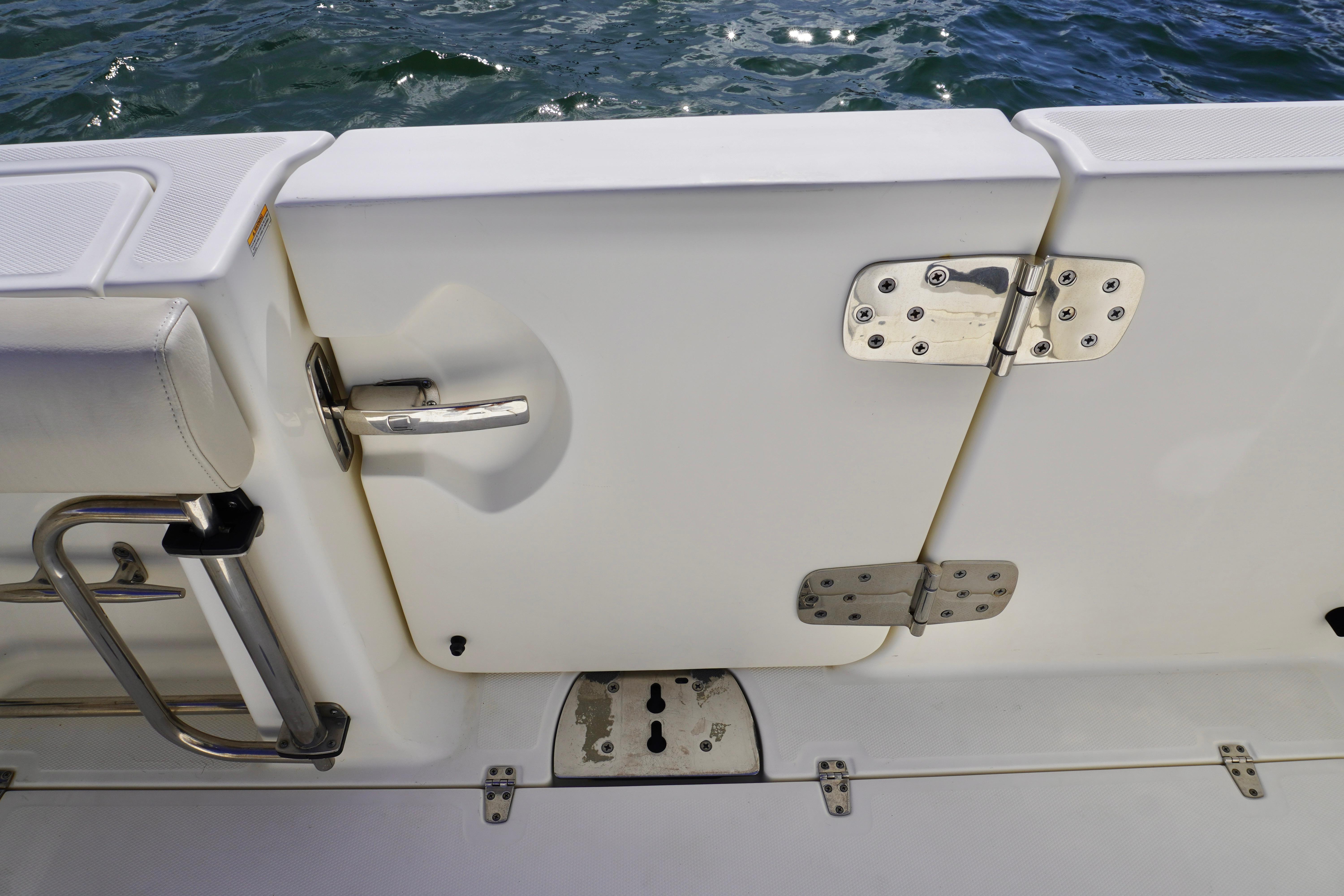 - Molded fiberglass portside dive/boarding door with removable stainless steel dive ladder