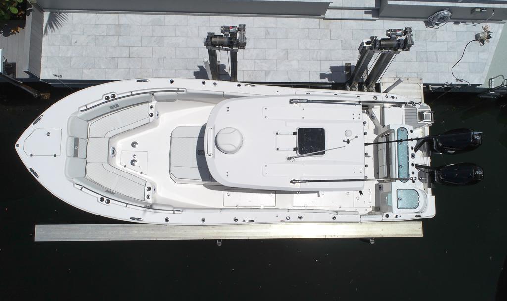- Insulated in floor fishboxes (82-gallon port, 107-gallon starboard) with overboard discharge pumps