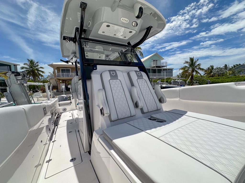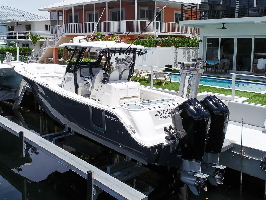 This 32' Sea Fox is loaded with options. Upgraded JL audio stereo system with tower speakers, night vision camera, radar, Gemlux Outriggers, custom rear seating, VHF, custom covers. this boat is beautiful!!PowerTwin Mercury 400 V10 warranty thru 3/13/2029Helm master FM with Siren Marine, Joystick, and Auto Pilot UpgradeJetty Gray hull colorUltima Hard Top with Glass EnclosureIncludes:Molded-in Storage BoxSafety Storage BoxLED Overhead LightsRod Holders360 Degree Spreader LightsIlluminated Switch PanelReinforced Pad for Garmin Radar Ultima Hardtop Underside GelcoatBull Shark Gray Aluminum Accent Black Powder Coating Upholstery AccentLight Gray Single Diamond Stitch Upgrade PackagesLED/Tech packageBlue Mood LightsUnderwater LightsUpgraded Courtesy LightsWireless Phone ChargerBlack Painted MotorsBlack Powder Coating Edition Upholstery with Leaning Post Four Bank Battery Charger Garmin GMR 18 XHD 8-bit True Color High Resolution Radar