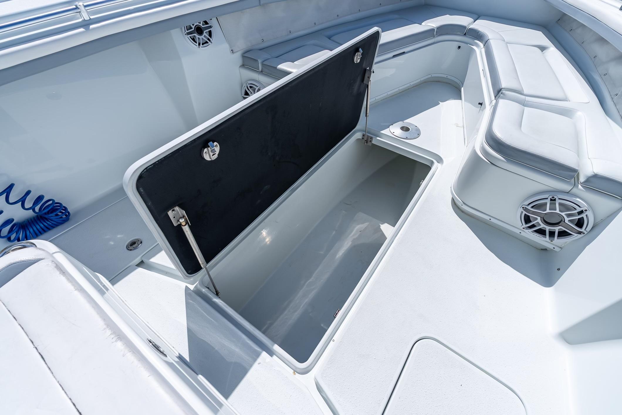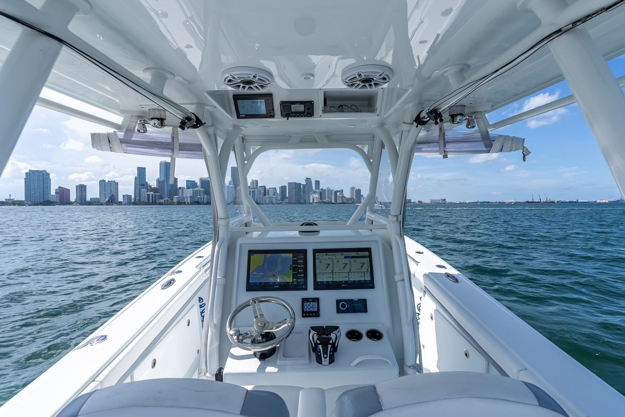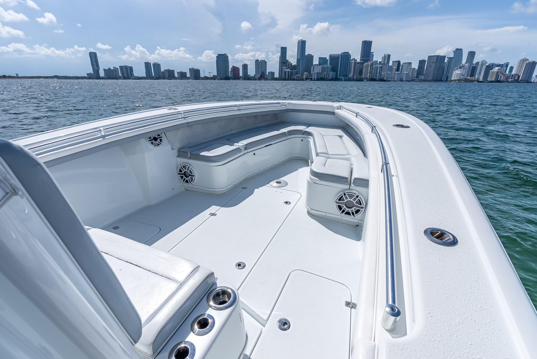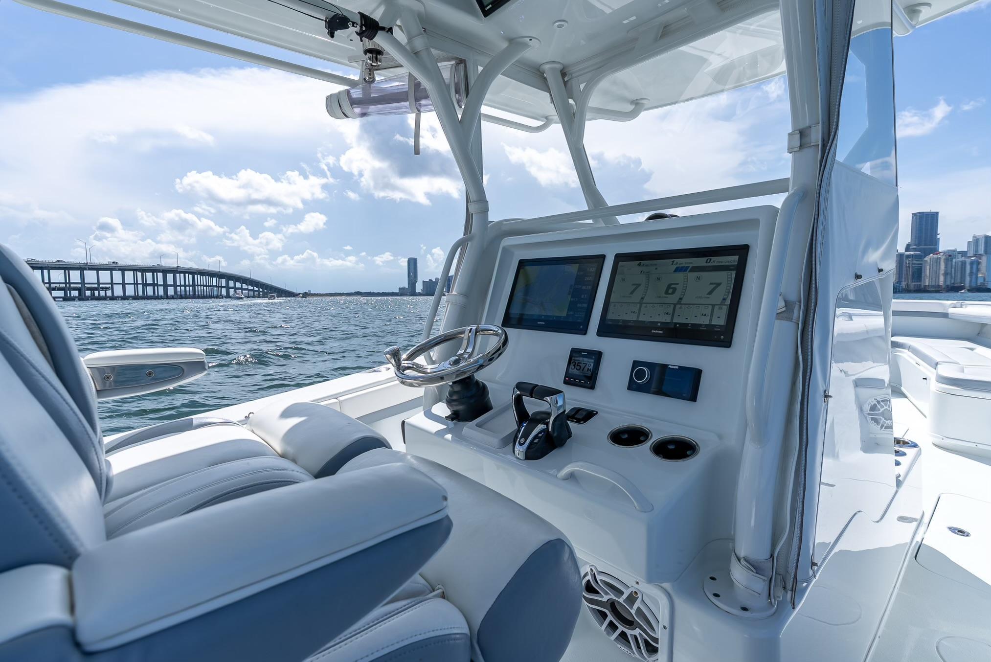 It’s a live-bait fisherman’s dream, with a 55 gallon transom live well and the options of an additional 55 gallon floor well, for maximum bait-keeping capability. You can power the 34 with twins or triples and it easily cruises 40MPH while burning only 24GPH with twins, or 27 GPH with triples. This astounding level of performance comes with Yellowfin’s trademark dry ride, and the 10-foot beam gives you plenty of room for yourself and all of your fishing buddies.