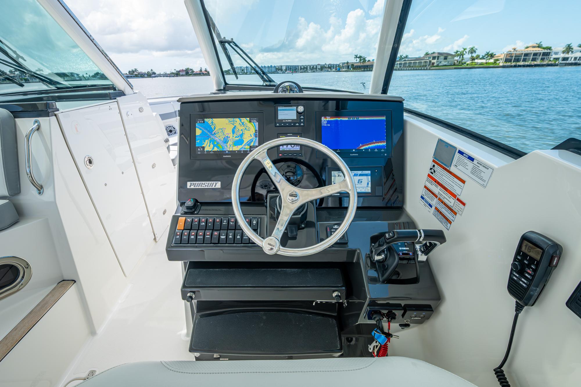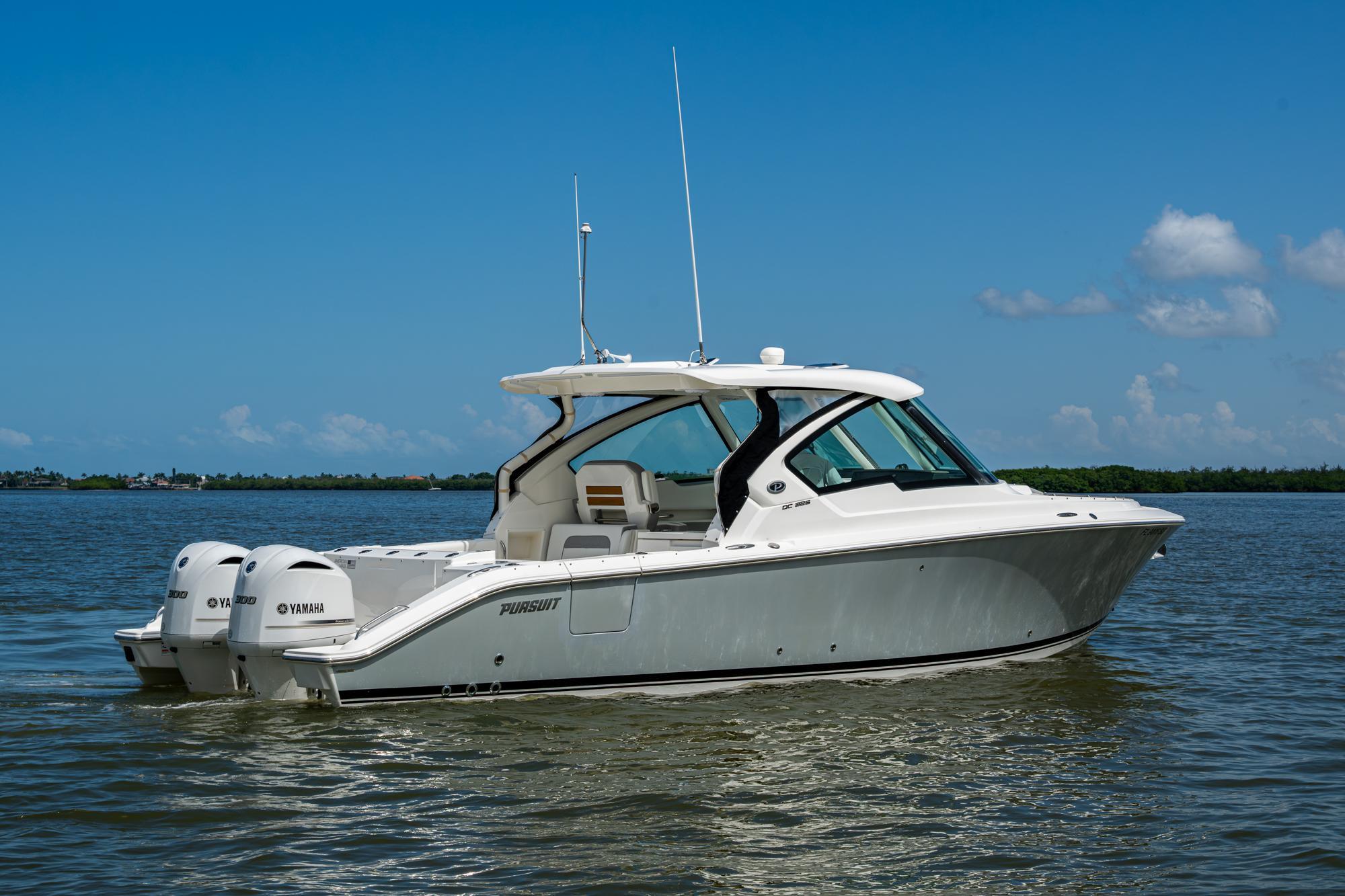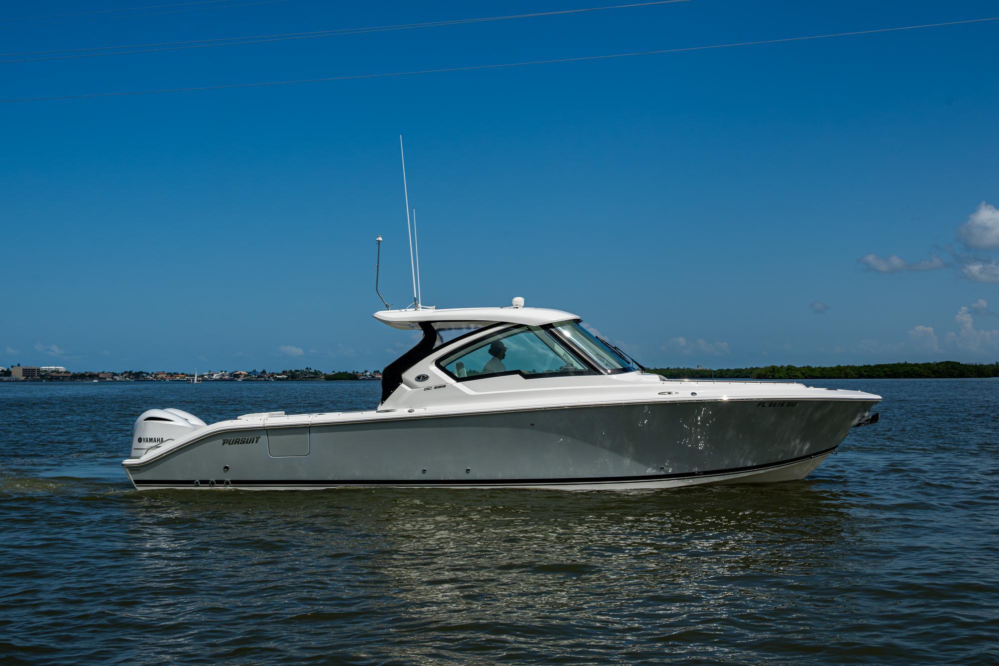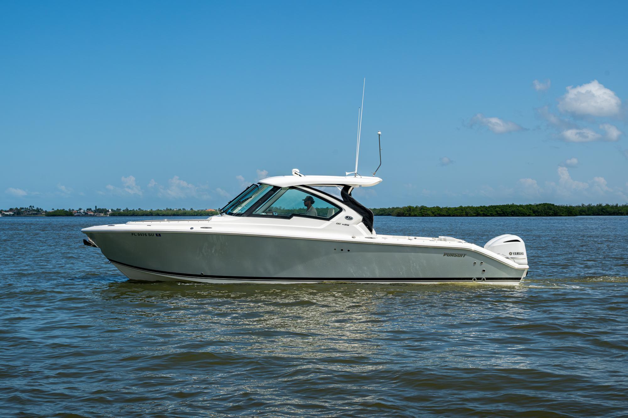 The DC 326 builds on the reputation of one of their most popular boats, the DC 325. The DC 326 features a fully integrated fiberglass hardtop with tempered glass windshield, thoughtfully designed storage and starboard hull side door - all with the distinctive aesthetic of Pursuit’s Dual Console series. A port side wrap-around lounge, rotating helm seat, forward bow and foldaway cockpit seating offer plenty of room for friends, family and crew while rod holders, recirculating livewell and dedicated tackle storage are ready to fish. Key features to this particular vessel are listed below. Please call to schedule your private showing today!Upgraded stereo and speaker package Underwater lights All new batteriesRecent 300 hour service Twin Garmin screens (upgraded in 2025)Garmin autopilot Full electronic head with macerator