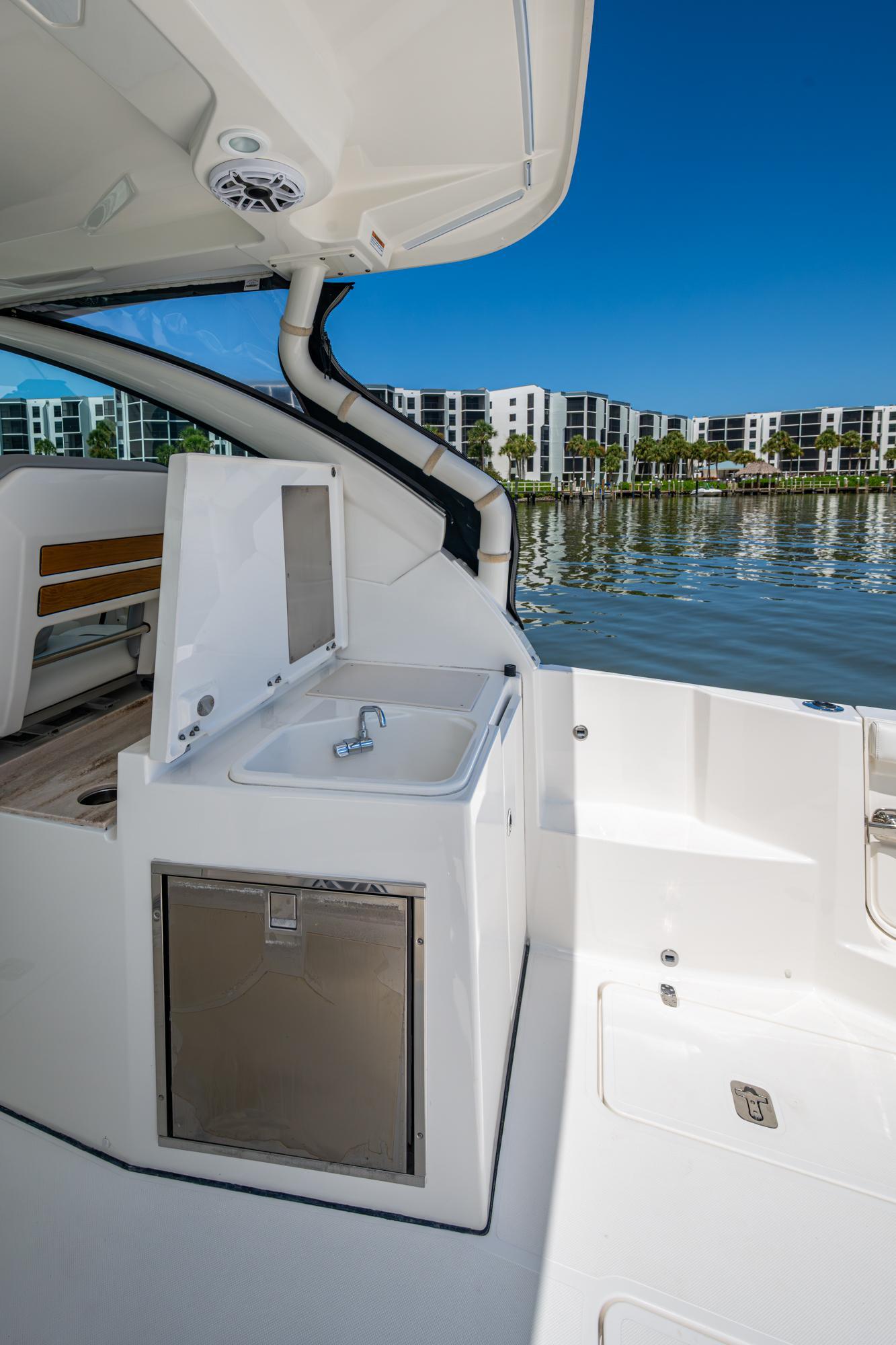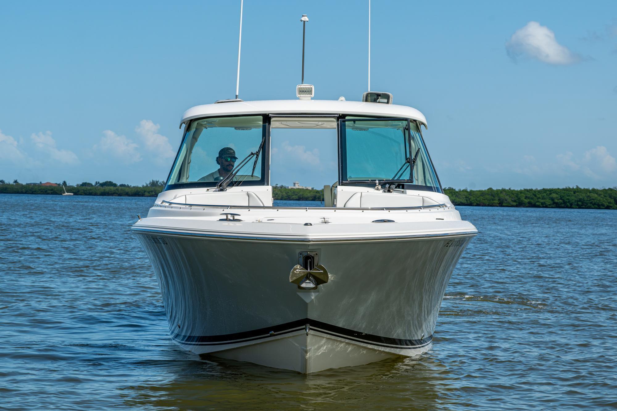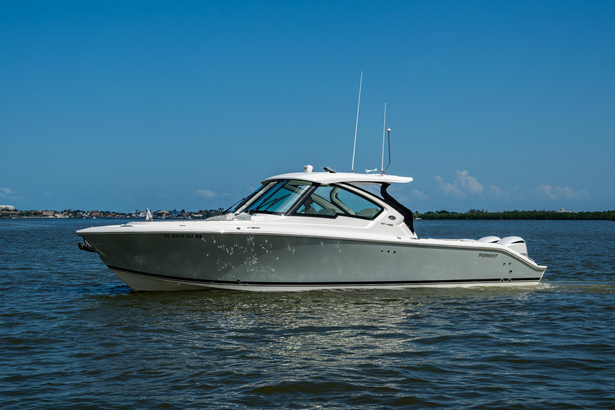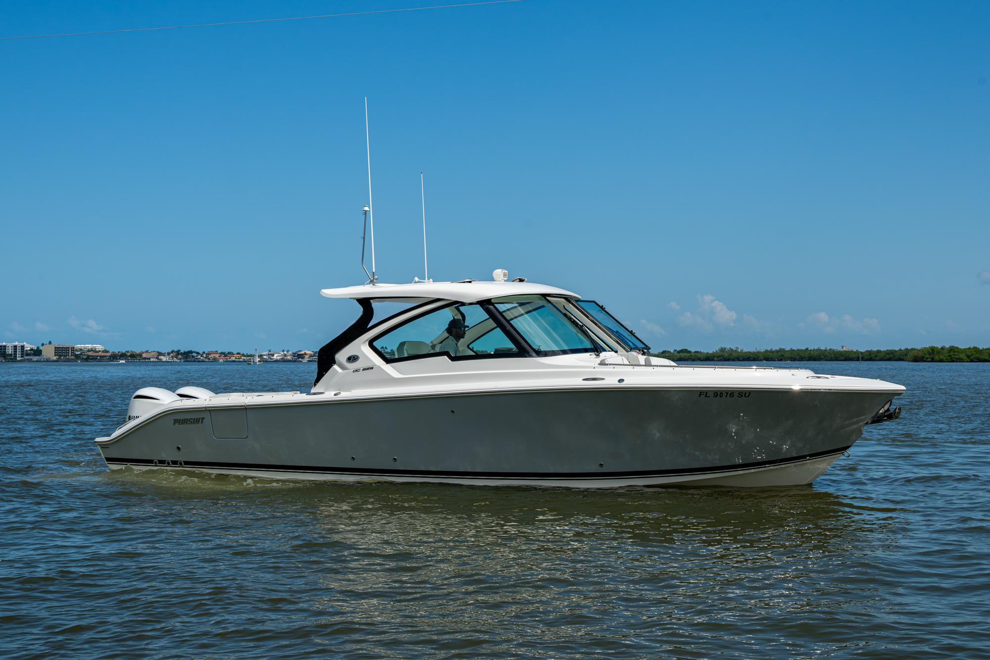 The DC 326 builds on the reputation of one of their most popular boats, the DC 325. The DC 326 features a fully integrated fiberglass hardtop with tempered glass windshield, thoughtfully designed storage and starboard hull side door - all with the distinctive aesthetic of Pursuit’s Dual Console series. A port side wrap-around lounge, rotating helm seat, forward bow and foldaway cockpit seating offer plenty of room for friends, family and crew while rod holders, recirculating livewell and dedicated tackle storage are ready to fish. Key features to this particular vessel are listed below. Please call to schedule your private showing today!Upgraded stereo and speaker package Underwater lights All new batteriesRecent 300 hour service Twin Garmin screens (upgraded in 2025)Garmin autopilot Full electronic head with macerator