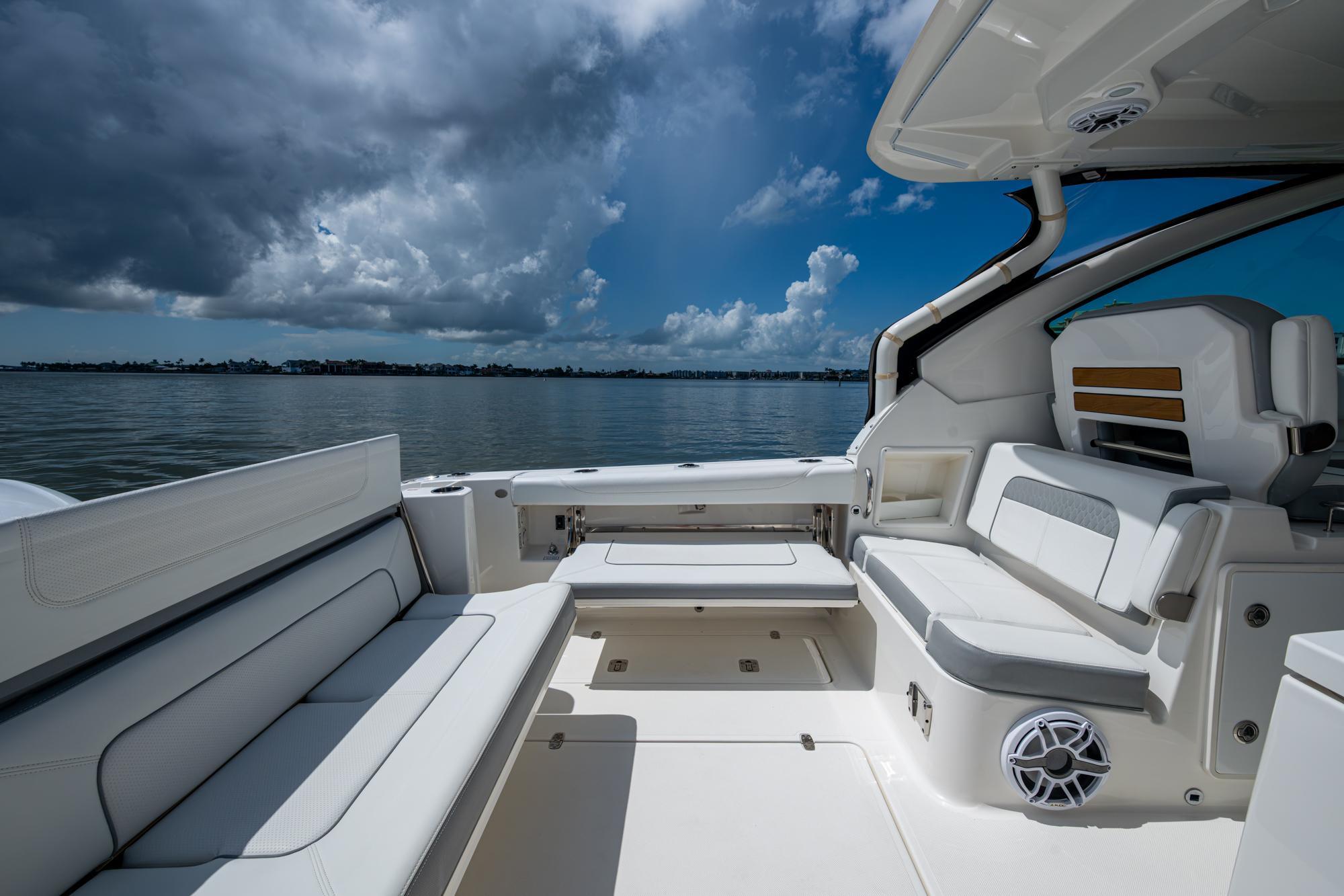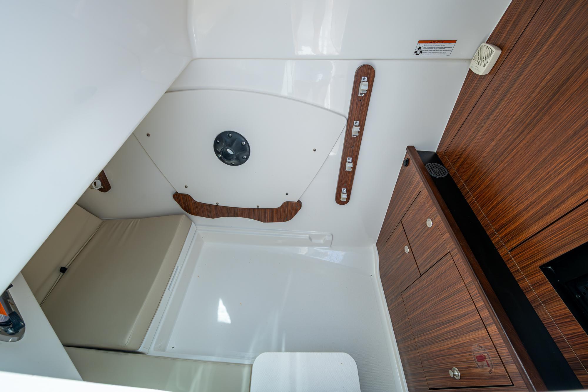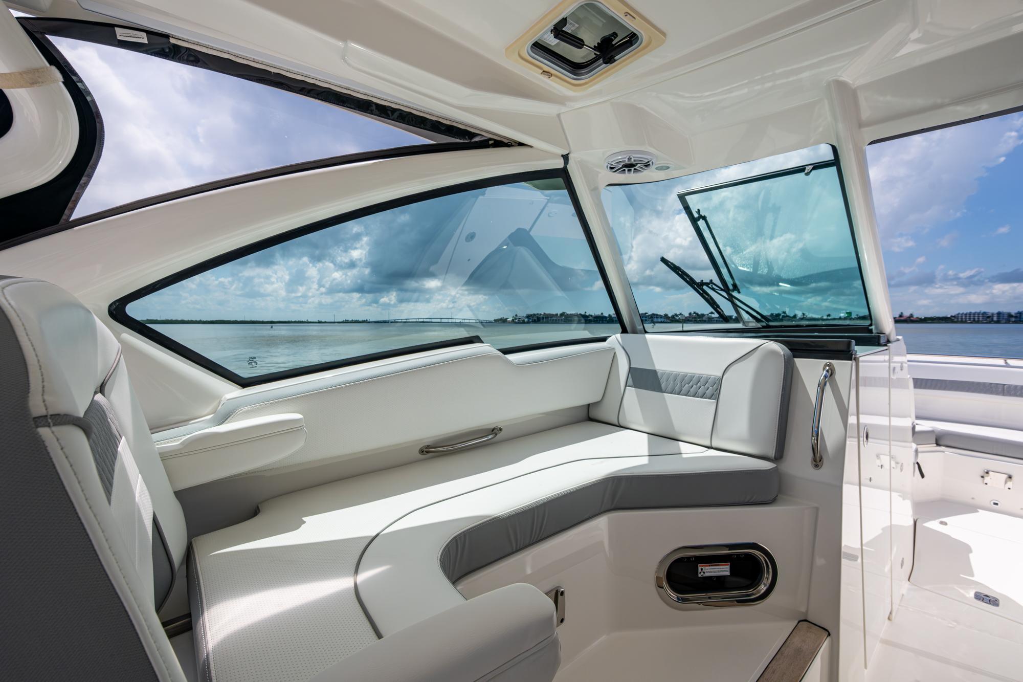 - Molded Forward Bow Seating with Flip-down Armrests and Insulated Storage Below