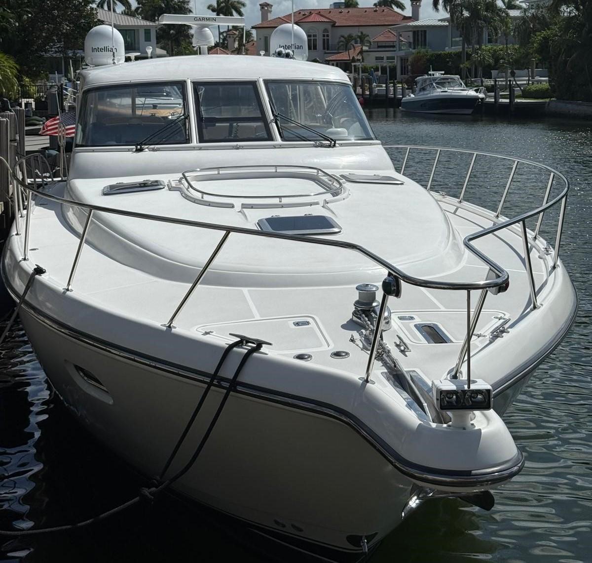 Bottom Job Just Completed August 2025!The Tiara 5200 Express incorporates advanced design, engineering, building, and finishing techniques to create new expectations in yacht construction. Hull fabrication involves vacuum-bagged lamination using epoxy resin instead of polyester. The process produces thinner, stronger, lighter GRP that won't absorb water, and it reduces hull weight by half. This unique process also produces strong but low-density PVC foam stringers, transversals, and balsa-cored bulkheads. Engine room access is concealed in the lower cockpit lounge seat, or the room can also be entered through the upper cockpit dropdown hatch. The large, distortion-free, curved-glass Taylor windshield panels provide uninhibited visibility astern as well as forward. The cool helm upper cockpit climate control system features two 16 ton A/C units to ensure maximum air conditioning in the hottest conditions. An optional set of forward shore power connections are available, mounted in the chain locker to make bow-in docking an easy choice.Refit Completed 2024/2025IMPROVEMENTS AND UPDATESRemoved after deck folding tables and sealedReplaced all hydraulic lines and rebuilt all hydraulic ramsRebuilt hydraulic steering system and rebuilt rams and hosesServiced and resealed anchor windlassRebuilt HornAdded high performance Starlink antenna and receiver systemServices bow thrusterRenewed cutlass bearingsRemoved and serviced after oilers and heat exchangersChanged drip less shaft seals to PSSBalanced a tunes 4 Blade propellers at F&J.Installed new underwater lightAligned engines and dialed shaftsServices all sea cocksServiced trim tabs and updated with a new reservoir Replaced ducting and blowers , and controllers on air conditioning units Replaced air conditioning trays with fiberglass trays Added new 16 ton air conditioning unit to pilot house. There now two units in the pilot house. 32 ton total.Changed all light bulbs to LED throughout boat.Added new LED deck lightsAdded new LED anchor/Nav lightReplaced engine room light fixtures with LED fixturesAll heads rebuilt and servicedAdded new overboard discharge pumpBoat has updated faucets throughAll pilot house windows resealed by Atlantic windowReplaced all Solenoids on washer/wiper system for windshield wipersReplaced all wiper bladesReplaced all risers and exhaust system with newly manufactured risersReplaced all engine mounts with new engine mounts prior to alignmentReplaces engine room vent screens port and starboard. Had them custom builtServices the Davit and had all hydraulic fitting renewed, had the cable replaced, motor services and replace all pulleys and valvesBoth top ends of engines rebuilt with new cylinder kits port and starboard . All injectors tested and replaced if neededAll fuel tanks inspected and cleanedHeat exchanger elbows removed and customized to fit larger zincsAlternators replacedAll maintenance free batteriesGenerator serviced and replaced water pump replaced .All mechanical services done annually or when neededAll bilge and sump pumps inspected and replaced where necessaryKVF satellite tv system update and renewed in 2024. Fully serviced and domes replacedReplaced 50 amp power cord and added a brand new cable master cable retrieval systemAll custom bed coverings and headboard made from Schumacher fabricsAll dishes cutlery pots and pans included with purchaseAdded brand new ice maker in pilot houseServiced added new membranes to 700gpd water makerReplaced all vinyl sea coverings and combing in cockpitNew Electronics package:Garmin GPS Map 8616 GPS/fishfinderGarmin 743 ChartplotterGarmin Reactor 40 Hydraulic core pack with smart pump & GHC Auto pilot Garmin GPS antenna with heading sensor Garmin Open Array Radar Pedestal Garmin 200 IP engine room cameraRaymarine AIS VHFHalon fire system, and fire extinguishers certified annuallyBoat will have a full bottom service and new bottom paint end of July 2025There multiple spare parts for most systems onboard.