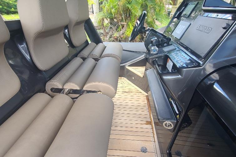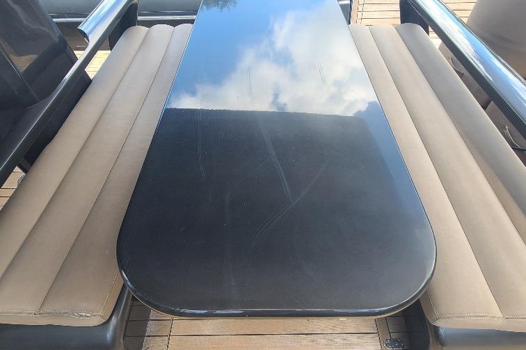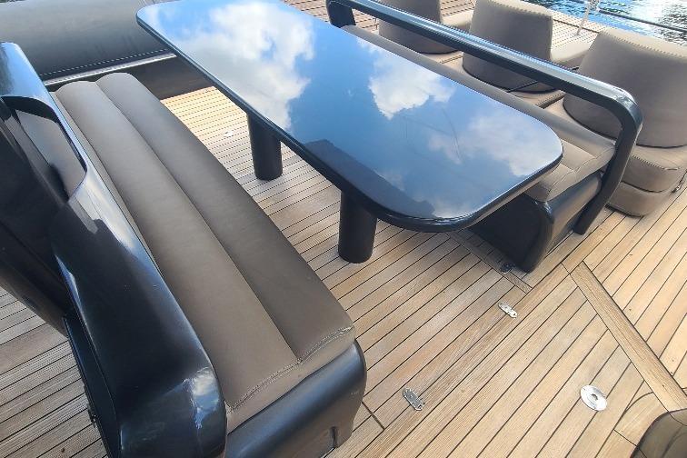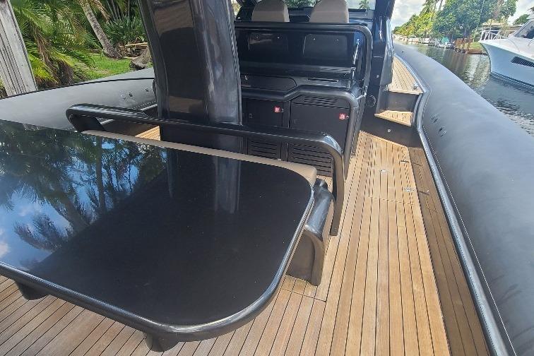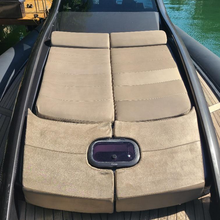 REMARKS:Functionals in great shape.Hypalon in great shape.1,000 hours service done.Chaise-lounges.Teak swimming ladder and passarelle.Lateral wings that create a big aft teak beach.Washable floors inside.Records available.Ready to go: tools, safety gear, manuals, etc.Paint to be corrected in few points.