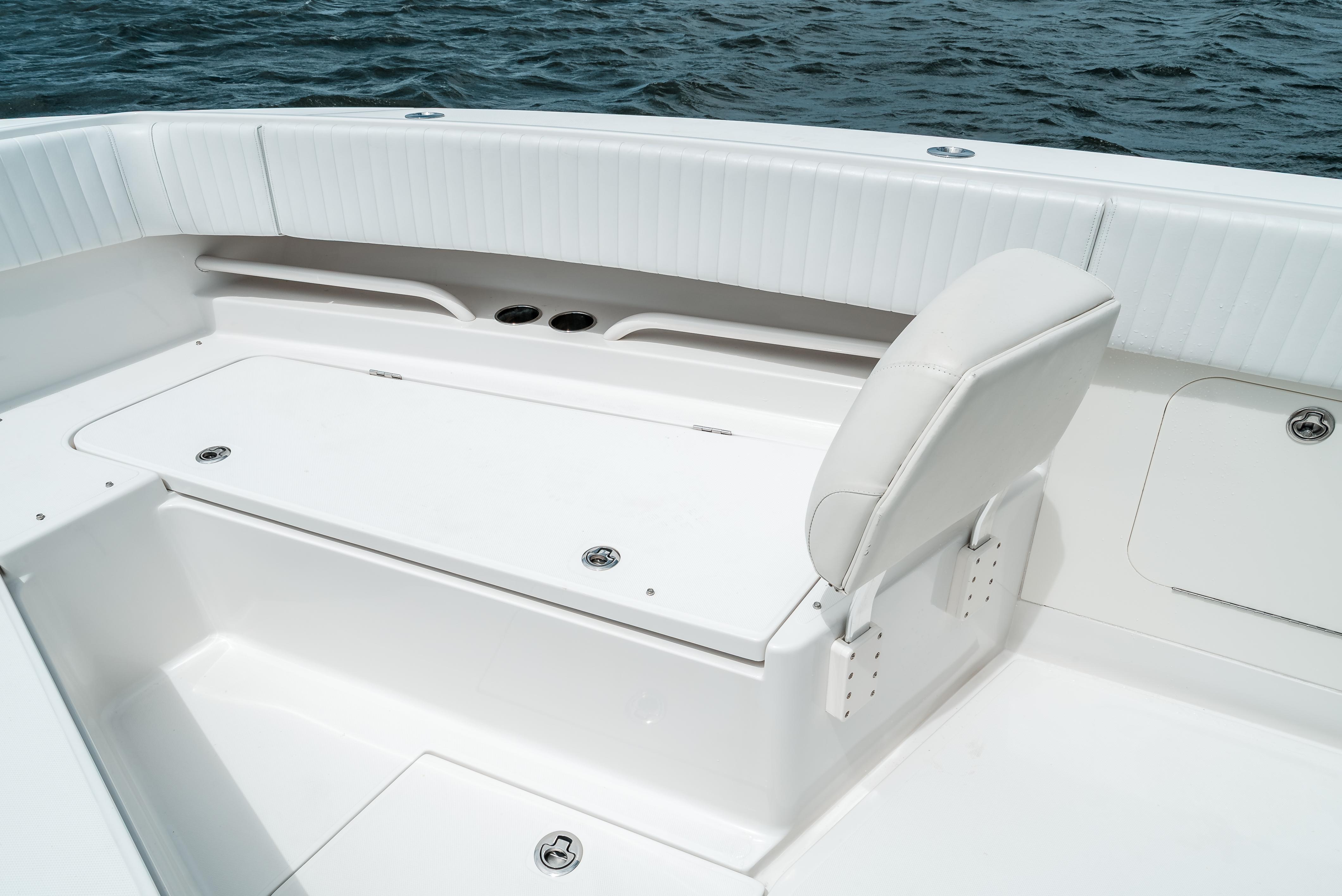 - Helm Seating for 2 with Fold Down Bolsters, Arm Rests, and Foot Rest; Tackle Storage Below
