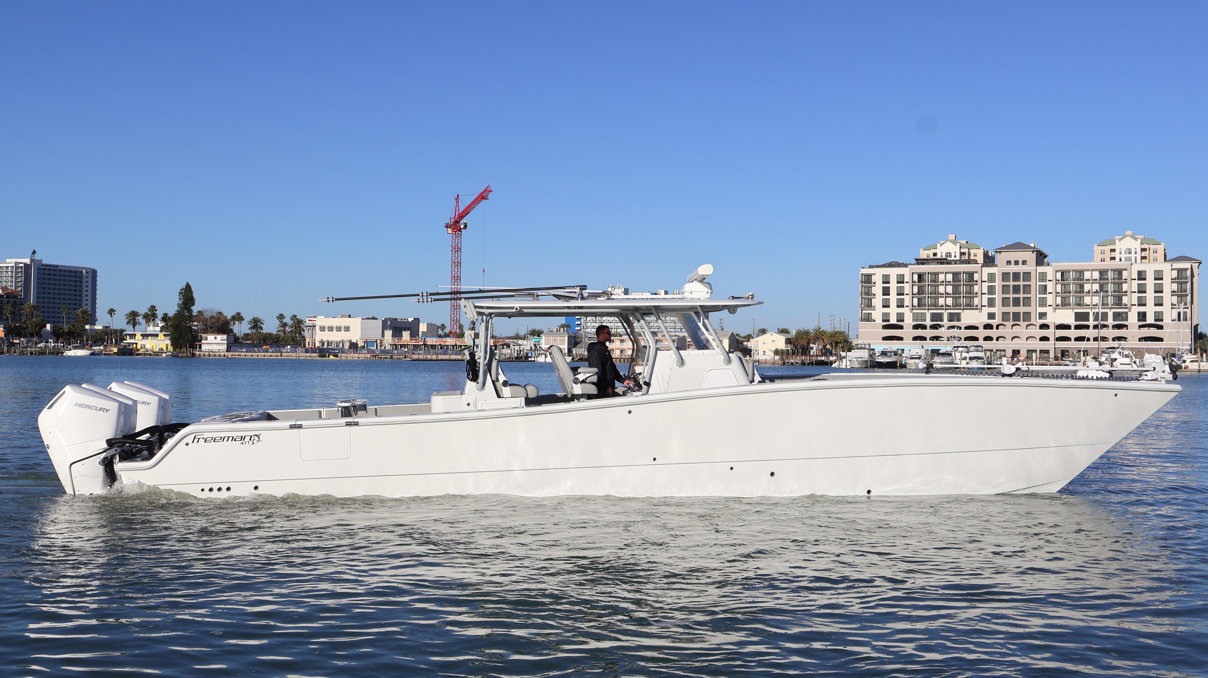 2021 Freeman 47 – REPOWERED 2023 Quad Mercury 400 V10 (117 hours)Kept on Covered Lift | Meticulously Maintained | Ready for Offshore RunsMercury Warranty until 8/18/2023Recent survey in hand!!For quickest response call or text 7 2 7 7 4 4 7 8 5 4If you’ve been waiting for a late-model Freeman that’s been babied from day one, this is it. "My Friends 47" is a 2021 Freeman 47 that lived on a covered lift, shaded from the Florida sun, and has been maintained with an open checkbook. Every system is dialed in, every surface is spotless, and she’s fresh from a 100-hour service on her quad Mercury 400 V10s (Cold Fusion White) with only 117 hours since repower.This is the kind of boat you can step aboard, load your gear, and confidently point the bow offshore tomorrow.Highlights Include:Dove Gray upholstery with diamond stitchingFull gray SeaDek from bow to sternStarlink for offshore connectivityTandem Rhodan trolling motors with 4x 36v Abyss Lithium batteries (420 amp hours total)Comprehensive Simrad electronics package: twin 24” displays, open array radar, autopilotFLIR night visionMassive JL Audio system with subs, amps, and speakers throughout4 livewellsPump box systemTackle stationRocket launcherGemLux outriggersJoystick controlZipwakeGrillLED light barExtensive multi-zone lighting (underwater, under gunwale, hard top) controllable from helmDouble-row Llebroc seatingForward loungerPort-side dive doorHead in consoleFreshwater & saltwater washdownsEvery detail reflects pride of ownership and a commitment to keeping this boat in top form. Whether your mission is high-speed runs off shore or comfortable days with family and friends, this Freeman delivers performance, range, and comfort in equal measure.This boat is turn-key, showroom clean, and ready for immediate delivery. Contact us to arrange a private showing and see for yourself why this Freeman stands out from the rest.