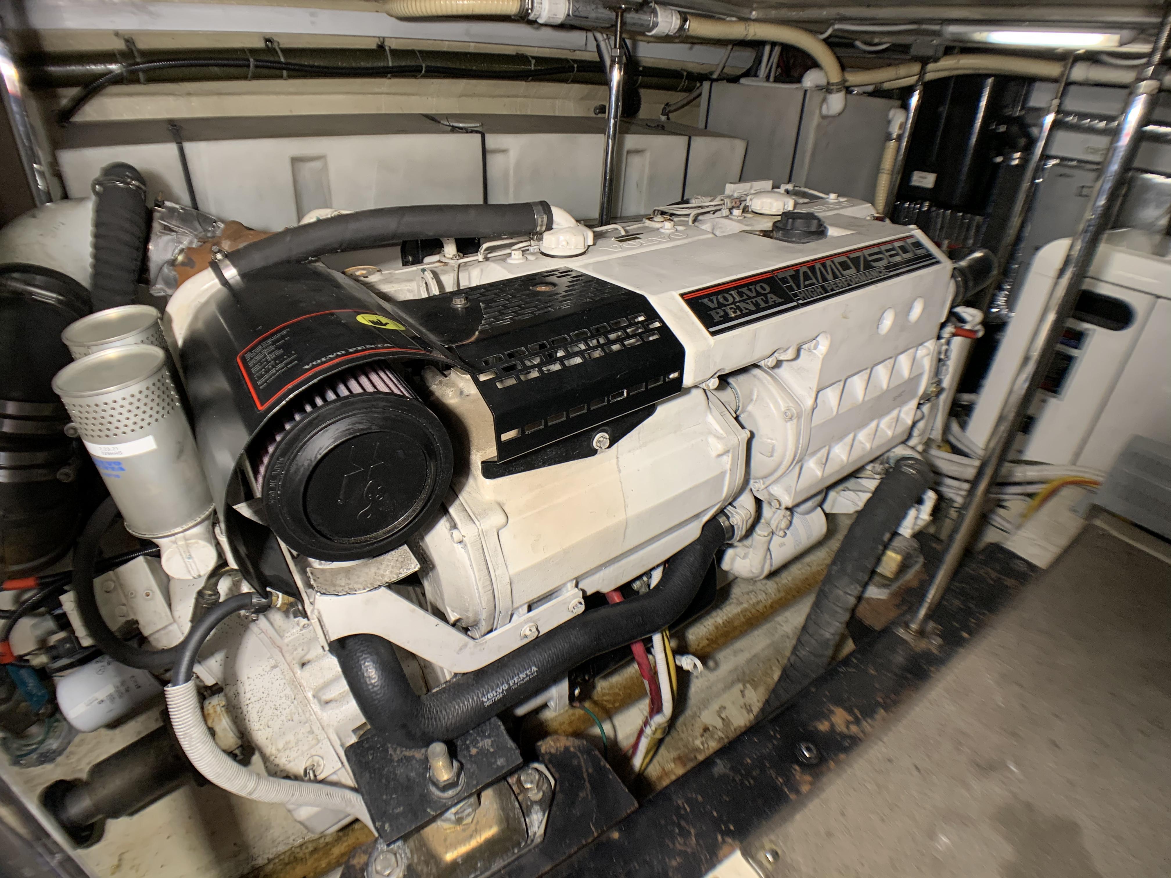 Twin Volvo/Penta TAMD75 Engines, 480 hp each, approximately 865 hours, bow and stern thrusters, rear docking station, cable master, JennAir on the bridge 23kw Kohler generator with approximately 1500 hours.