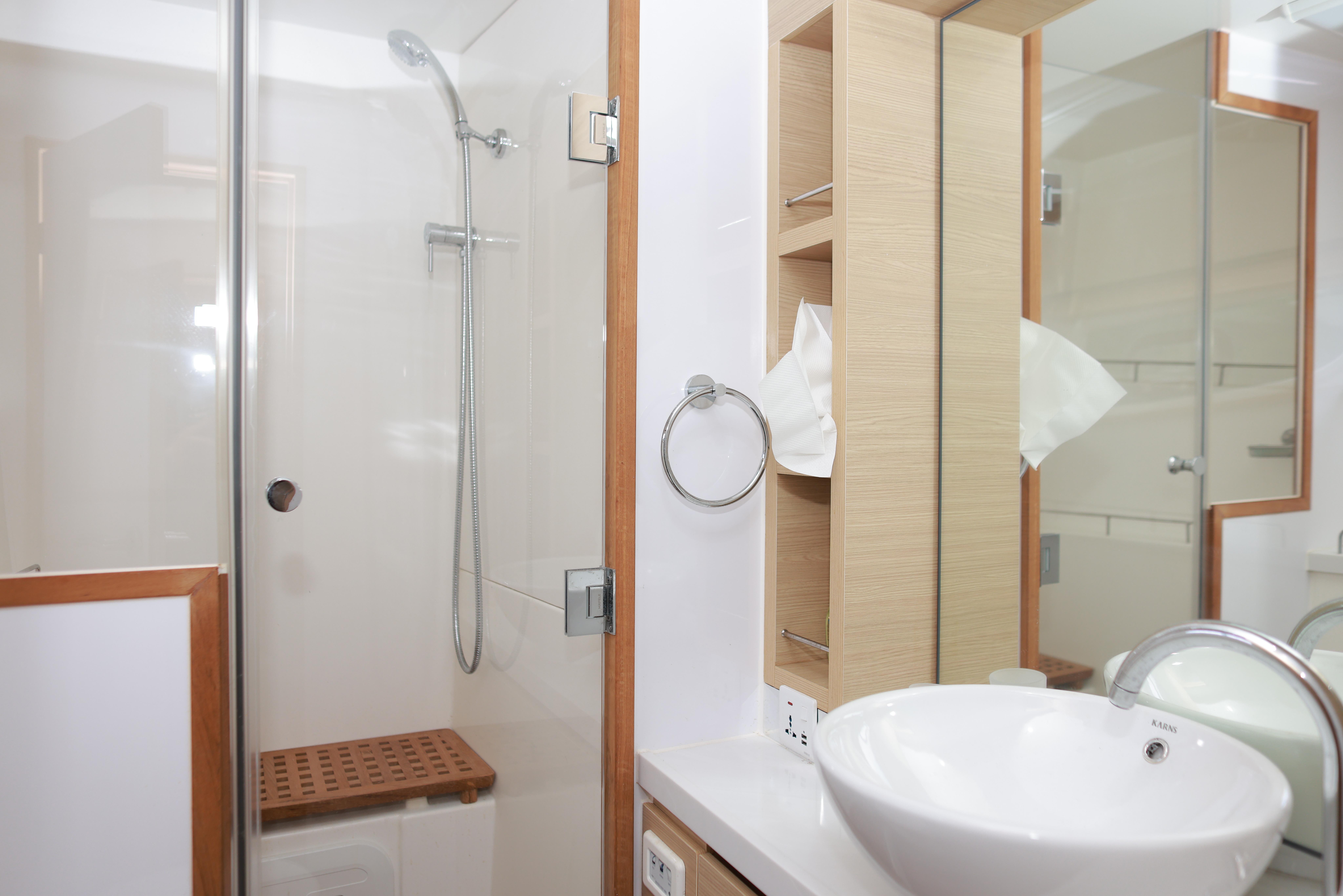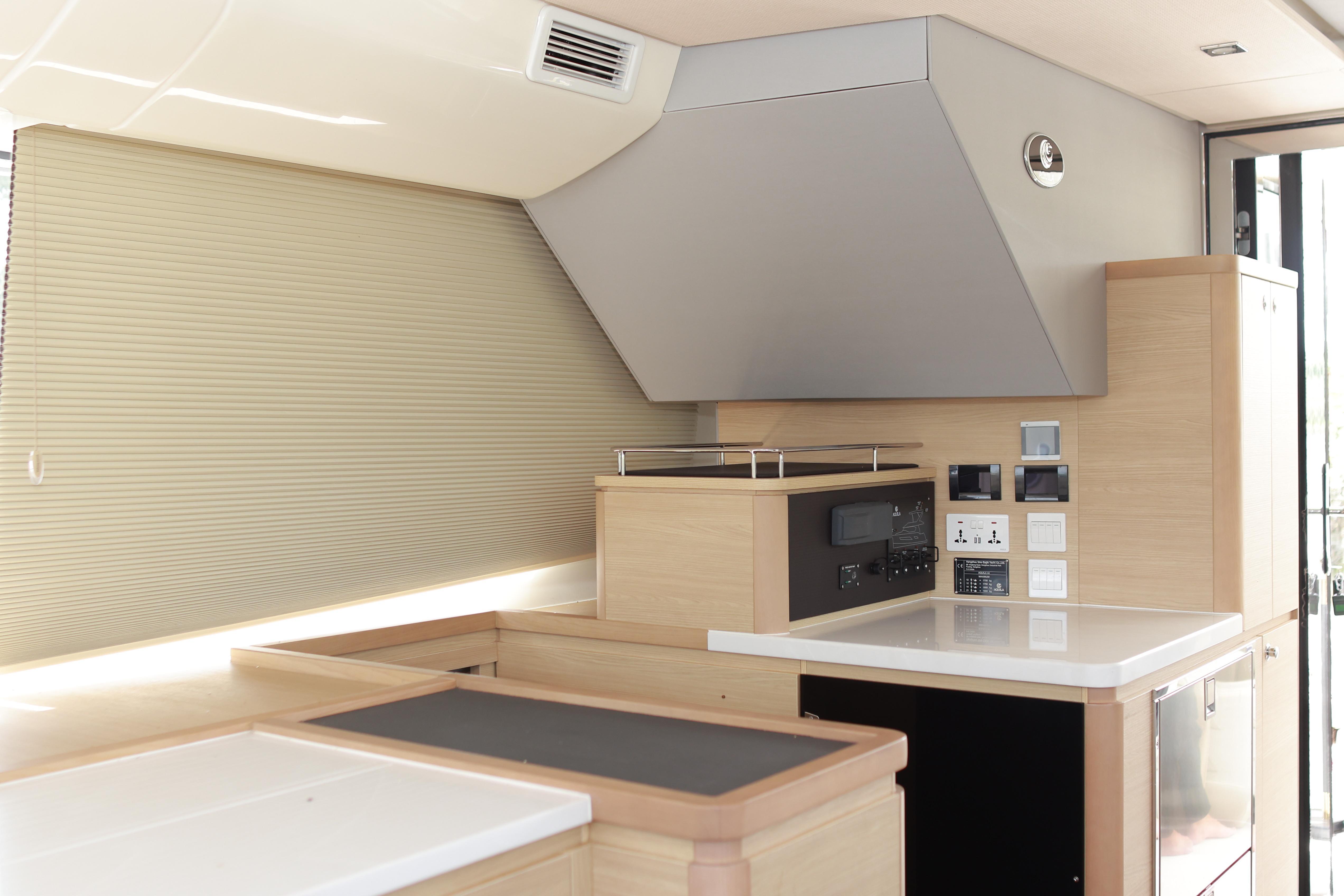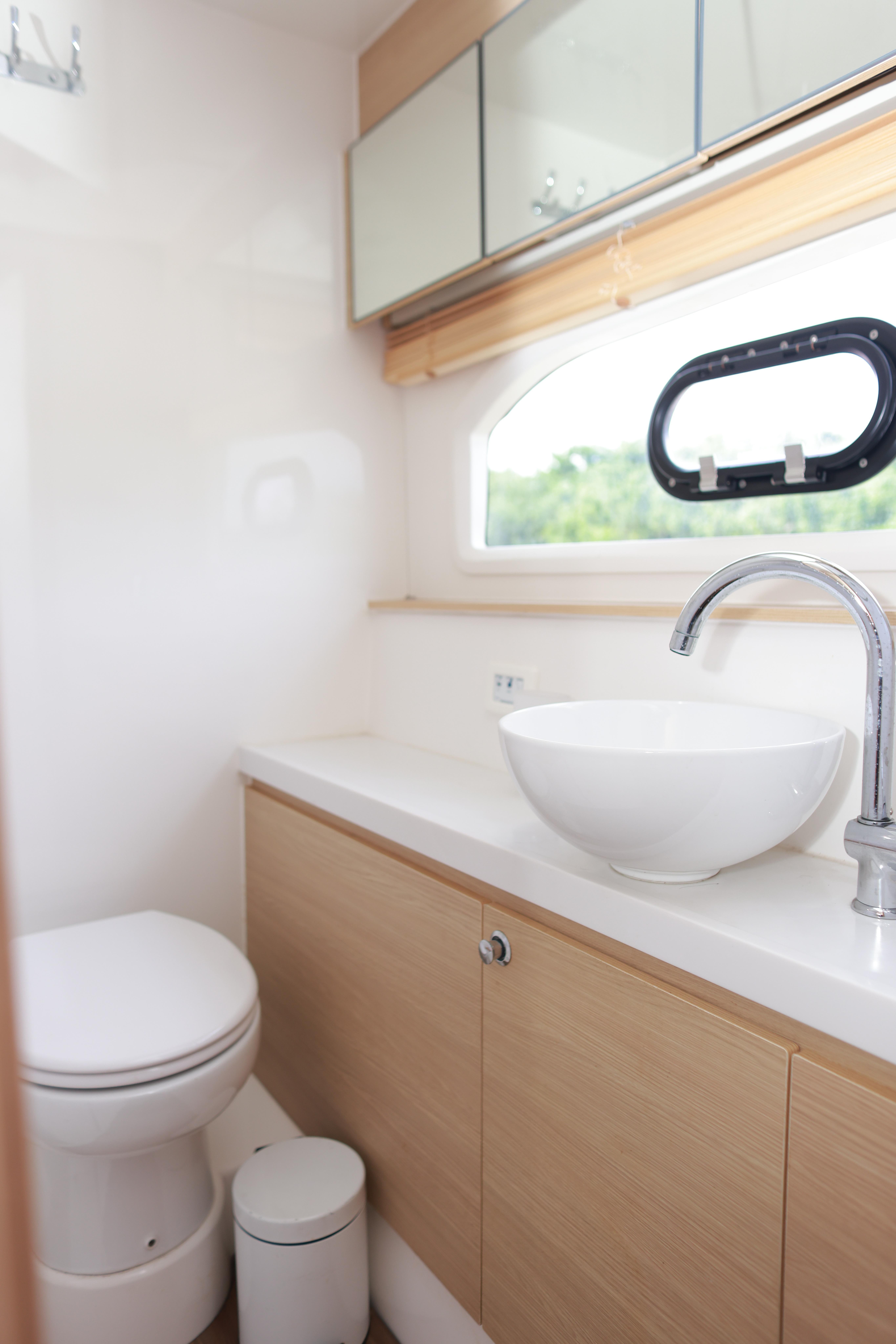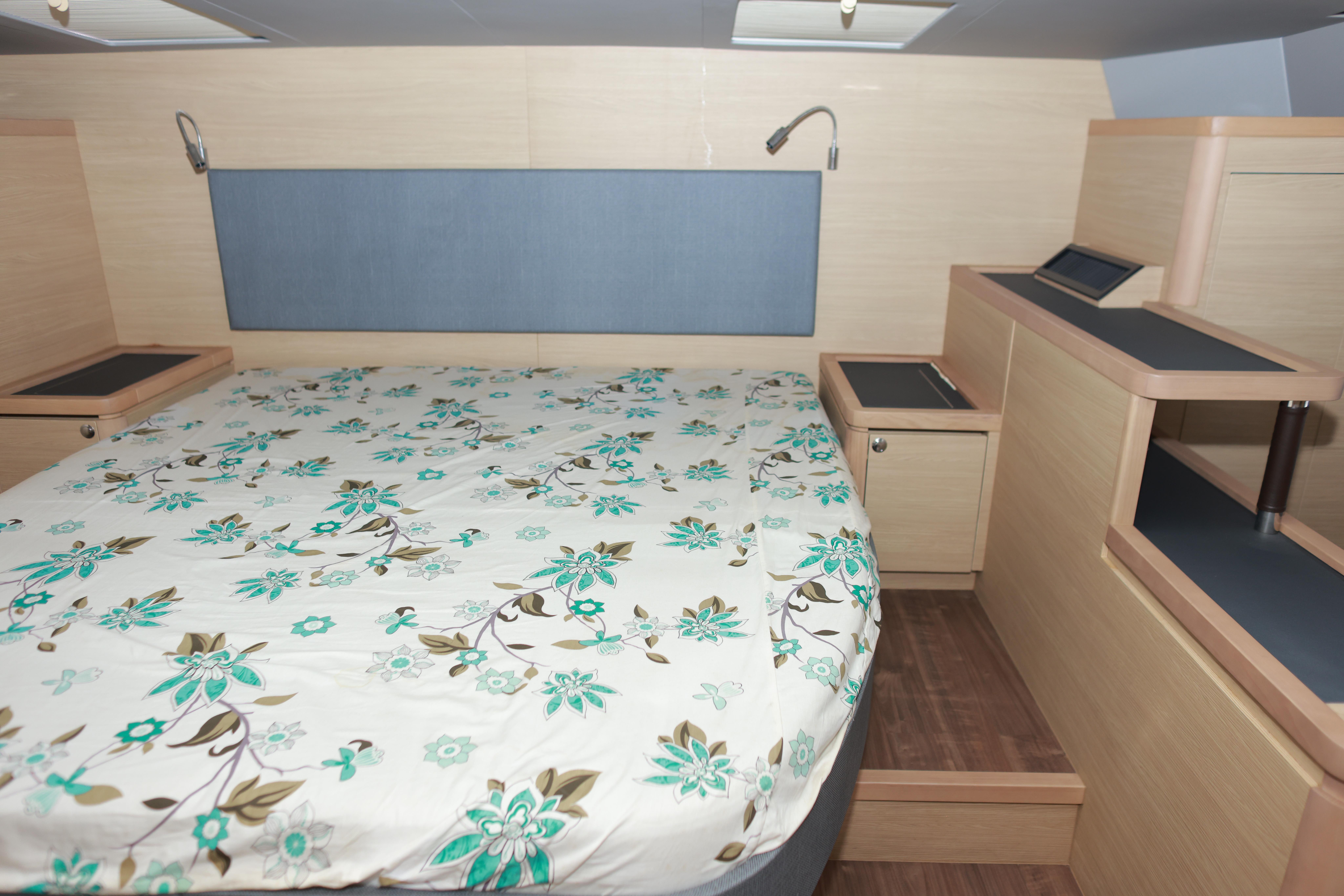 Born of innovation and experience, the luxurious Aquila 44 Yacht Power Catamaran is a world leader in its class. Designed to be both a long distance cruising yacht and a highly social platform, the highly experienced Aquila design and engineering team created the Aquila 44 Yacht to optimize performance. Two Volvo Penta diesels are situated aft behind the living compartments reducing noise and vibrations. Bulbous bows increase the waterline for greater efficiency while reducing pitching moments. Multifunction displays, digital controls, joystick operation, engine monitoring displays, thrusters, and widely spaced main engines make operating the Aquila 44 Yacht easily accomplished by a single couple.With an enormous amount of attention to detail and knowledge of how owners use their boats, both the exterior and interior spaces are perfected to serve those utilizations. The stairway from the flybridge to the foredeck gives safe easy access to the ground tackle locker and forward cleats when anchoring or docking. Wide side decks and safety handrails are another example of the Aquila 44’s commitment to owner’s and guests’ comfort and safety. Available with a 3-cabin layout featuring a salon and galley with 360° views and an extensive flybridge, the layout of the Aquila 44 Yacht makes entertaining a crowd aboard easy. Boarding from the port or starboard swim platforms, guest step up to the aft deck with an al fresco dinette. The window partition between the aft deck and the interior galley lifts and the countertop folds out to create a service bar. The galley is strategically placed between the aft deck and the salon and dinette on the main deck making it easy to serve guest inside and outside. A summer kitchen is centrally located to attend to guests in the aft mounted dinette and those on the flybridge can enjoy panoramic views along with the operator while underway.