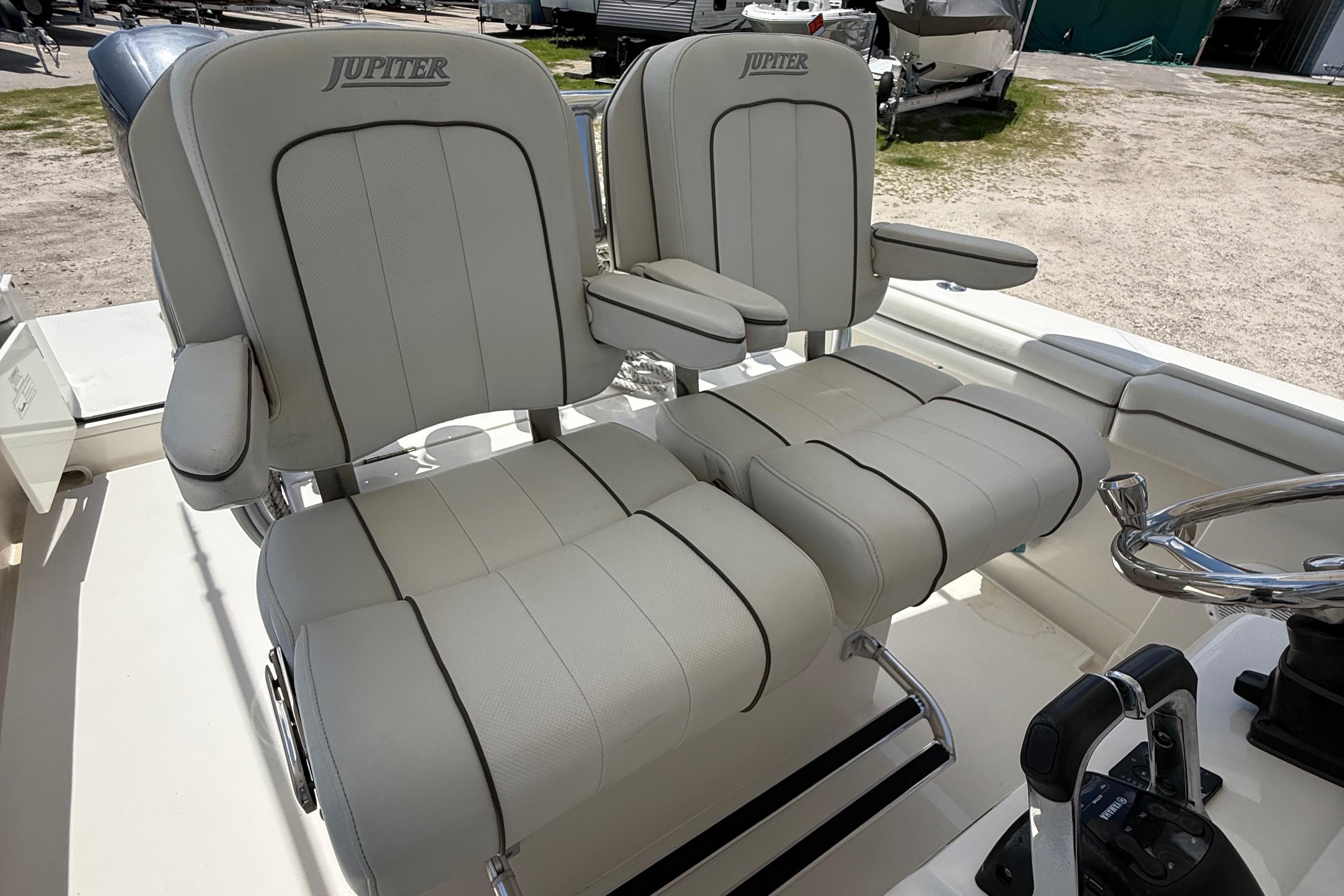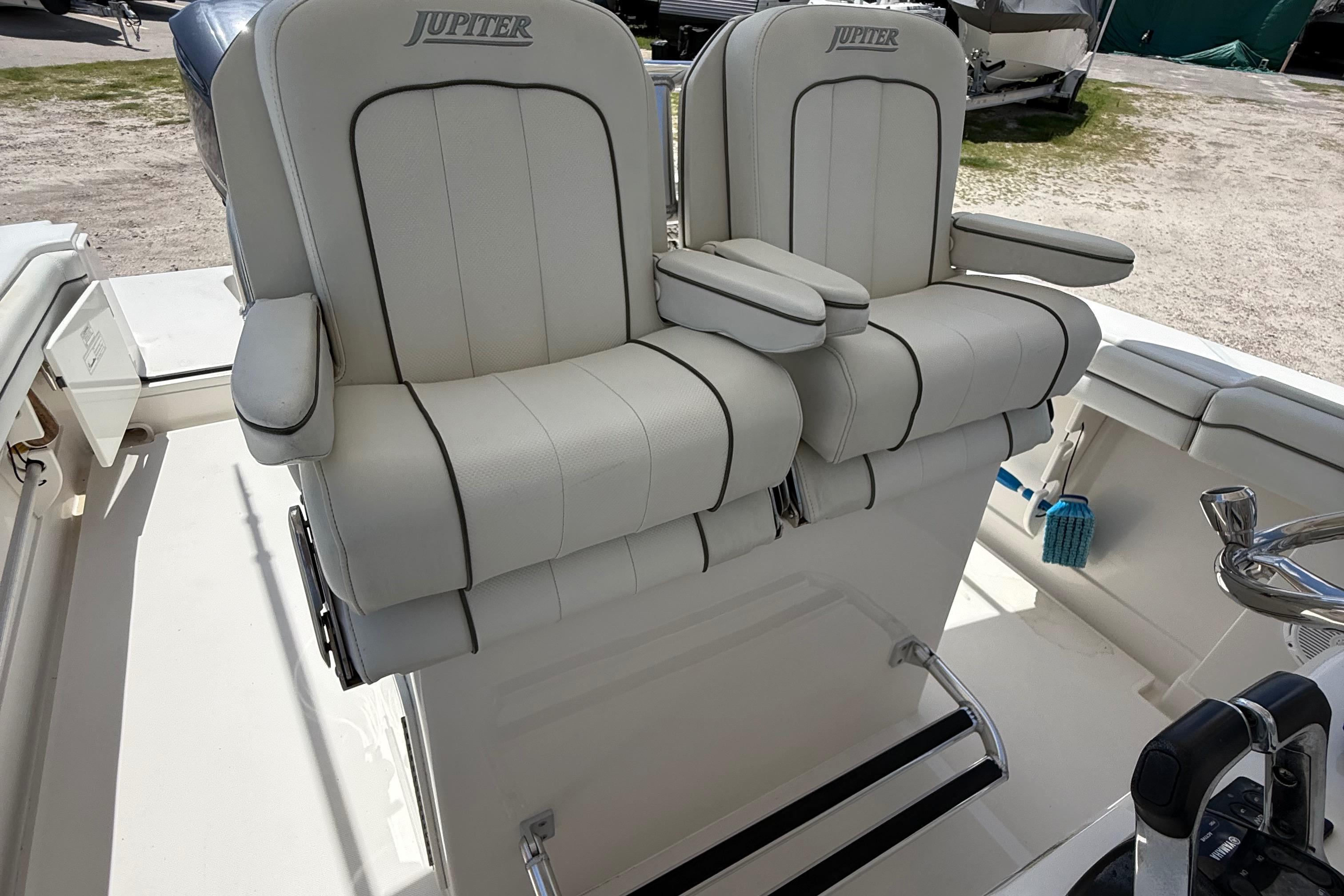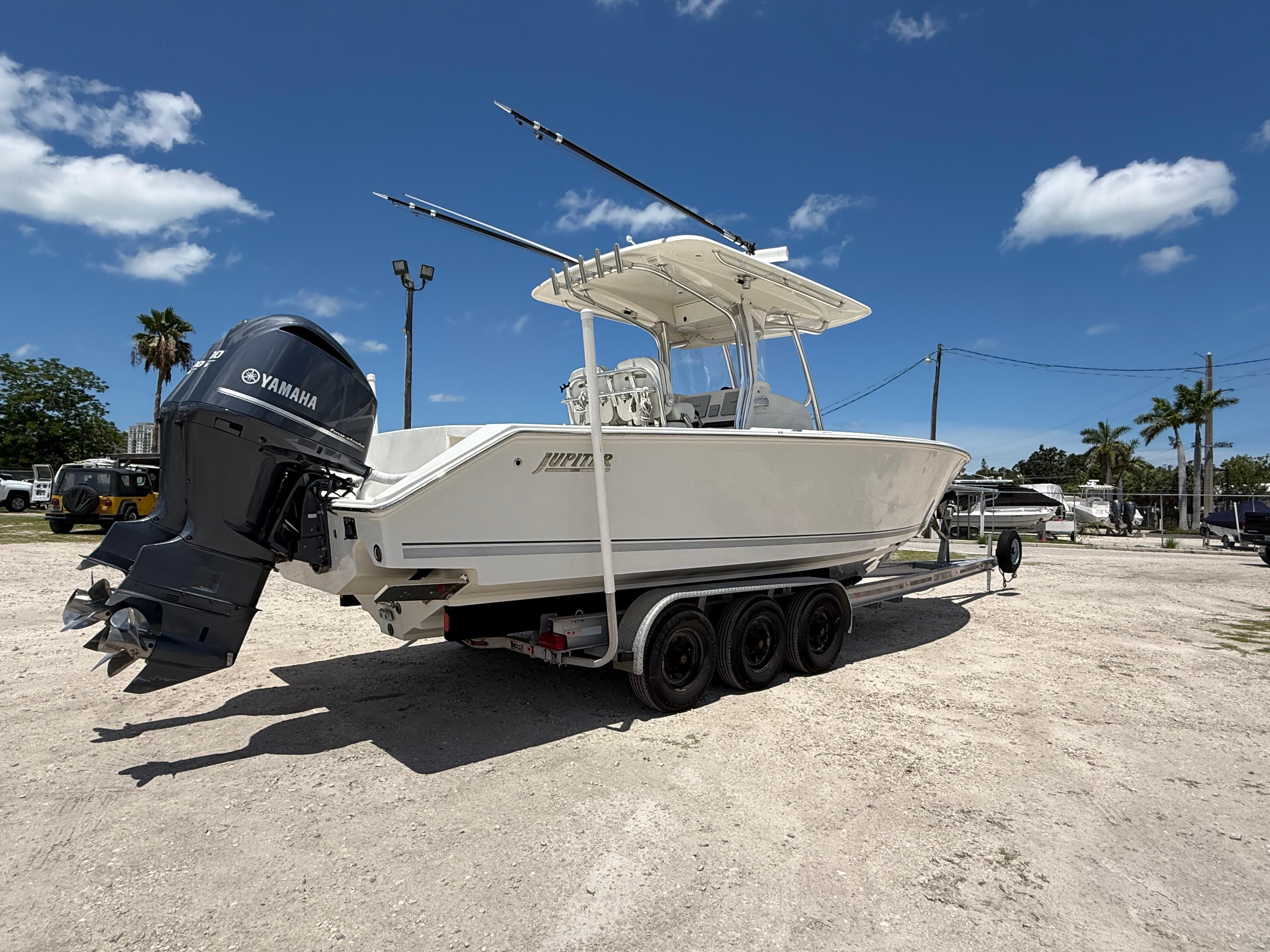 Introducing this 2014 Jupiter 30 FS, a remarkable center console boat that combines performance and style. This vessel features a modified vee hull made of durable fiberglass, ensuring stability and a smooth ride. Powered by twin Yamaha F300 four stroke outboard engines, each delivering an impressive 300 horsepower. With just under 420 hours of use these engines should provide many more hours of service. The 30 FS is equipped with essential features, making it an excellent choice for both leisure and fishing trips. Its thoughtful design offers ample space for relaxation and enjoyment, while the robust construction ensures longevity. Experience the perfect blend of functionality and elegance with the Jupiter 30 FS, a true gem for boating enthusiasts. This boat is in very nice condition and has been well cared for. Jupiter boats are among the most rugged built center consoles on the market, and stand out in the crowd with beautiful lines and first class fit and finish. Considering overall condition and price, I believe this is the best value on a 30FS on the market today.Key Features:1) Twin Yamaha F-300 four stroke engines, with just under 420 hours on them. (Serviced annually).2) Electric head with holding tank.3) Macerator for overboard discharge.4) Power steering.5) Multi-colored cockpit lighting.6) Double helm seats with flip up bolster and arm-rest.7) Stern seat.8) Forward seating with removable backrest.9) Fiberglass T-Top.10) Overhead electronics box.11) Complete Garmin electronics package, including twin 12in 7612 screens, 6Kw 3D radar, auto-pilot, fish finder16) B164 transducer, and a Icom MX770 VHF.12) Fusion stereo with JL amp, sub woofer, and four speakers.13) Continental aluminum trailer, model CT3113B.14) Custom full height EZ2CY windshield.15) Custom center console isinglass side wings.16) Canvas covers for center console, helm seats, and engines.17) Underwater lights.18) Rupp Fiberglass outriggers.19) Electric reel outlets.