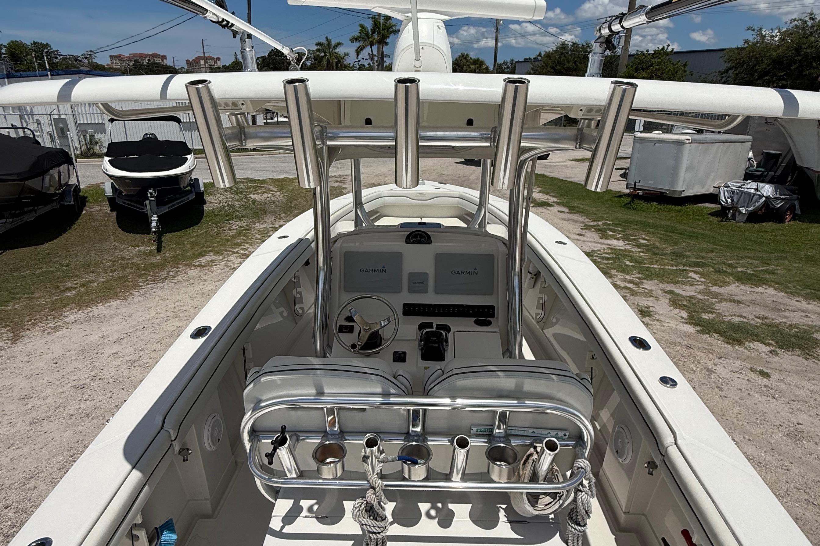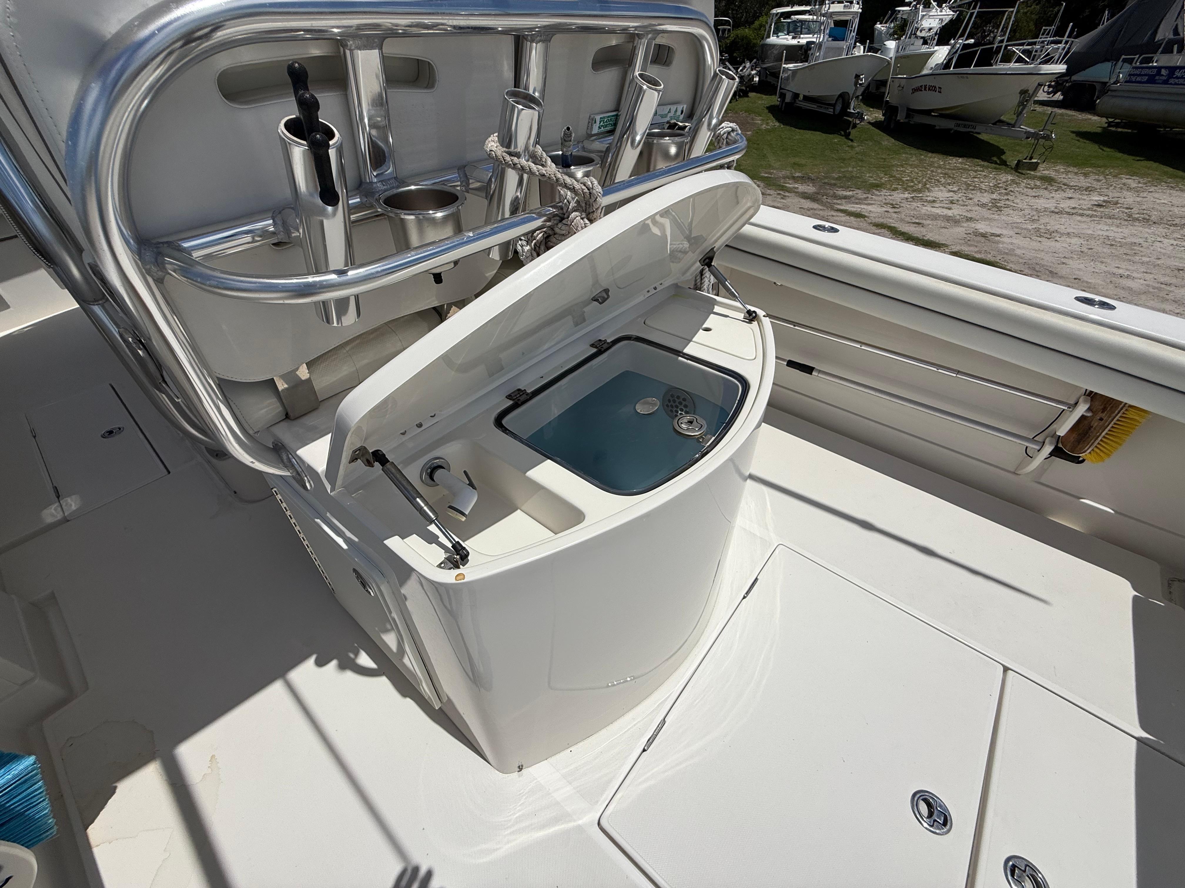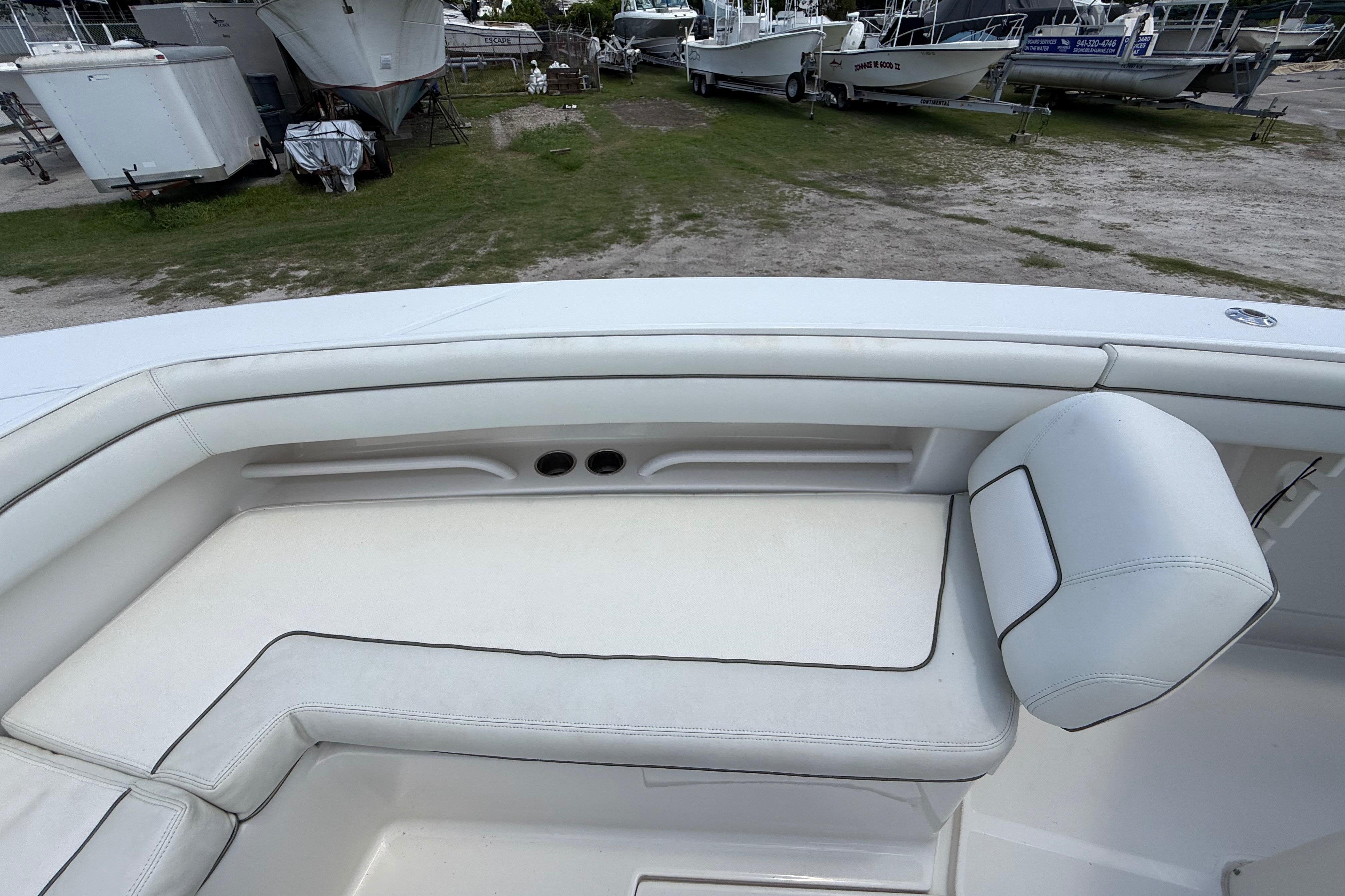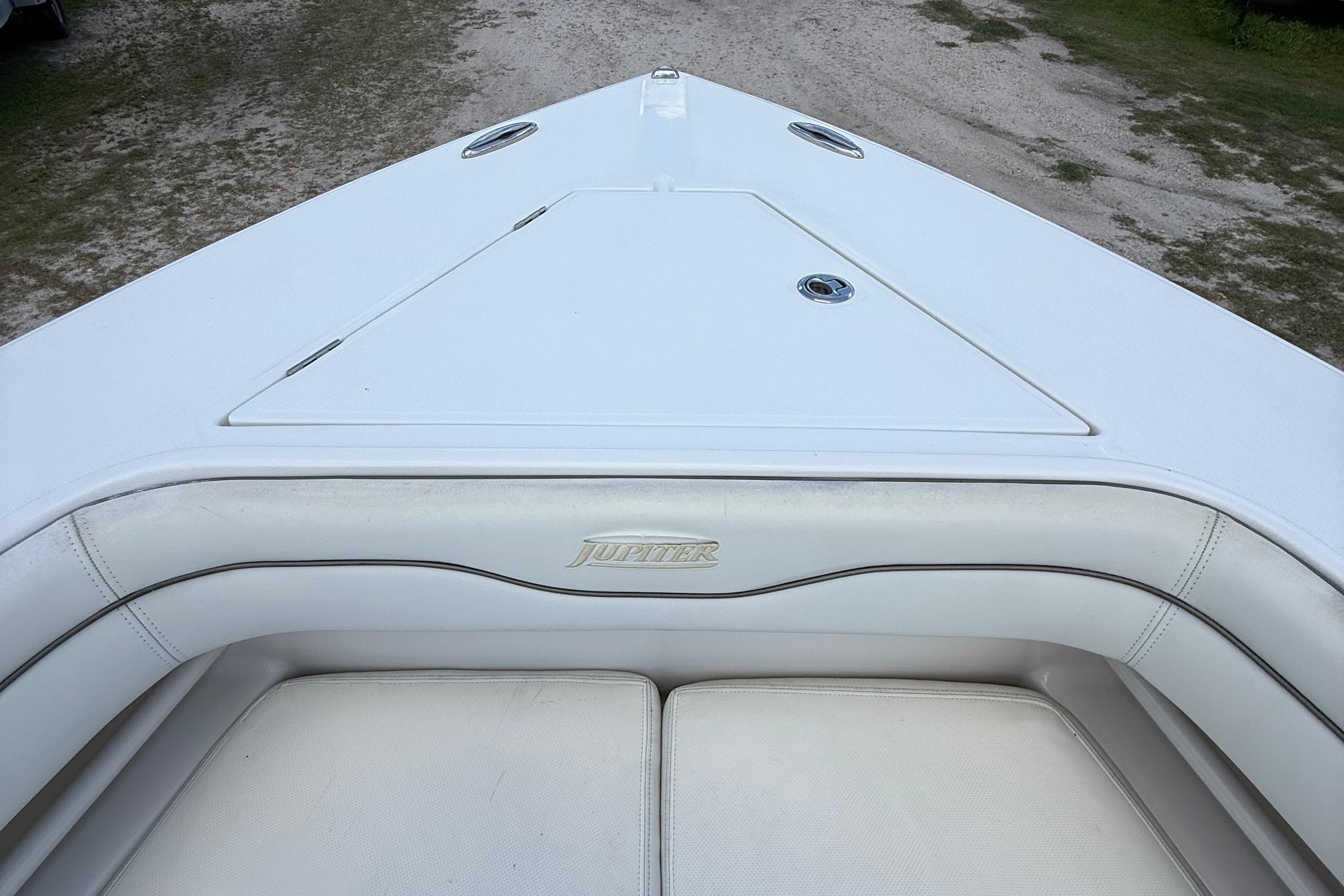 Introducing this 2014 Jupiter 30 FS, a remarkable center console boat that combines performance and style. This vessel features a modified vee hull made of durable fiberglass, ensuring stability and a smooth ride. Powered by twin Yamaha F300 four stroke outboard engines, each delivering an impressive 300 horsepower. With just under 420 hours of use these engines should provide many more hours of service. The 30 FS is equipped with essential features, making it an excellent choice for both leisure and fishing trips. Its thoughtful design offers ample space for relaxation and enjoyment, while the robust construction ensures longevity. Experience the perfect blend of functionality and elegance with the Jupiter 30 FS, a true gem for boating enthusiasts. This boat is in very nice condition and has been well cared for. Jupiter boats are among the most rugged built center consoles on the market, and stand out in the crowd with beautiful lines and first class fit and finish. Considering overall condition and price, I believe this is the best value on a 30FS on the market today.Key Features:1) Twin Yamaha F-300 four stroke engines, with just under 420 hours on them. (Serviced annually).2) Electric head with holding tank.3) Macerator for overboard discharge.4) Power steering.5) Multi-colored cockpit lighting.6) Double helm seats with flip up bolster and arm-rest.7) Stern seat.8) Forward seating with removable backrest.9) Fiberglass T-Top.10) Overhead electronics box.11) Complete Garmin electronics package, including twin 12in 7612 screens, 6Kw 3D radar, auto-pilot, fish finder16) B164 transducer, and a Icom MX770 VHF.12) Fusion stereo with JL amp, sub woofer, and four speakers.13) Continental aluminum trailer, model CT3113B.14) Custom full height EZ2CY windshield.15) Custom center console isinglass side wings.16) Canvas covers for center console, helm seats, and engines.17) Underwater lights.18) Rupp Fiberglass outriggers.19) Electric reel outlets.