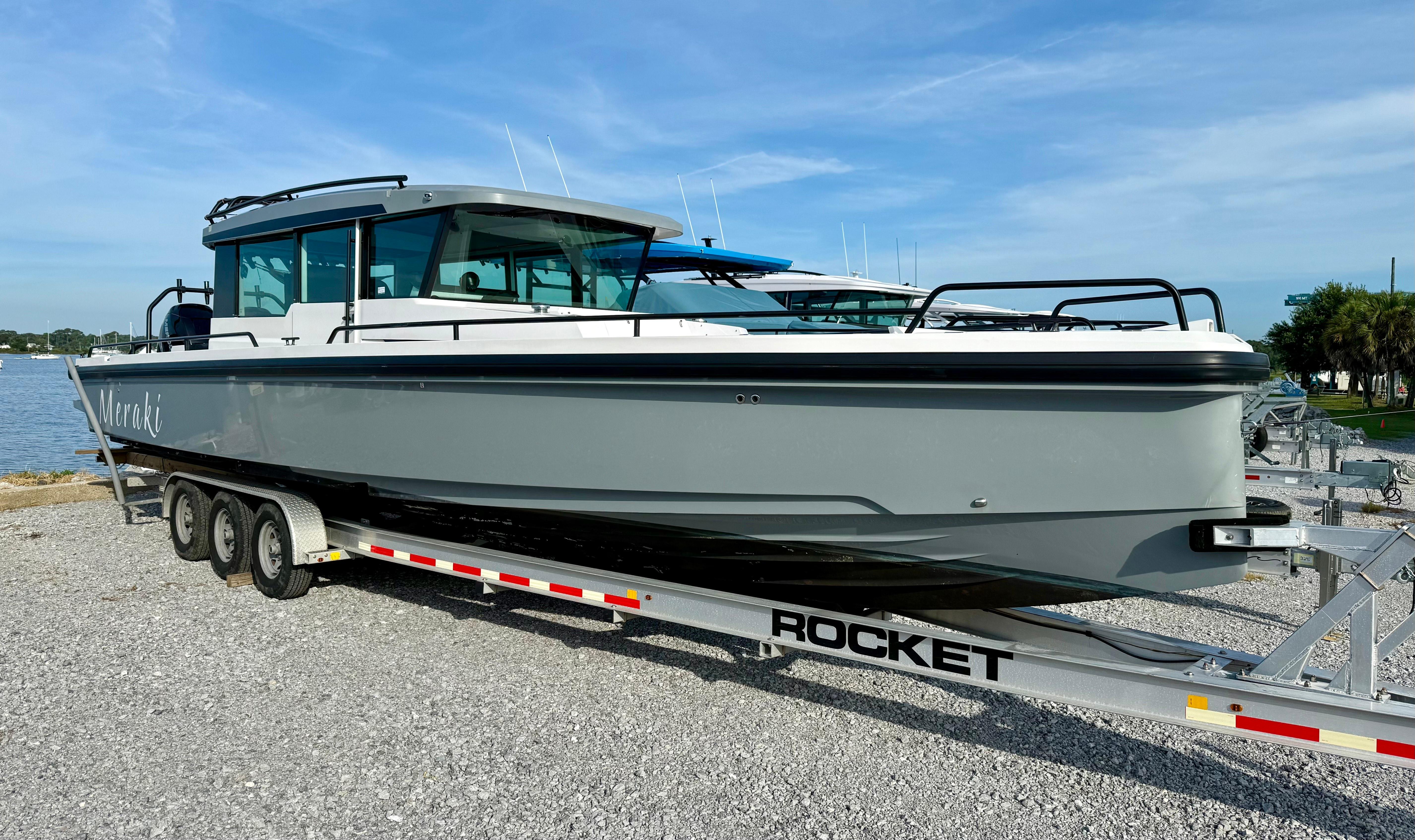 Available in Store: Pensacola Marine Center / HIN AXOC7212L819Axopar 37XC BRABUSMercury 300HP enginesThis model combines the functionality, ease of movement, social outdoor and indoor spaces and versatility of outboard walkaround center-consoles with a spacious, fully enclosed weather proofed cabin, that with distinctive looks challenges traditional perceptions of cabin boats.Style-conscious customers who aspire to have their Axopars stand out from the crowd even more, can further differentiate and characterize the looks and feel of their boat with BRABUS Line options, adding value with discreet interior & exterior trim and styling enhancements. We consider the 37XC to be the Gran Turismo of the seas opening a world of possibilities for safe, extended voyages in comfort even in unpredictable weather.*All interior and exterior cushions were deep cleaned for this season*Walnut floors with snap on protective carpets steam cleaned