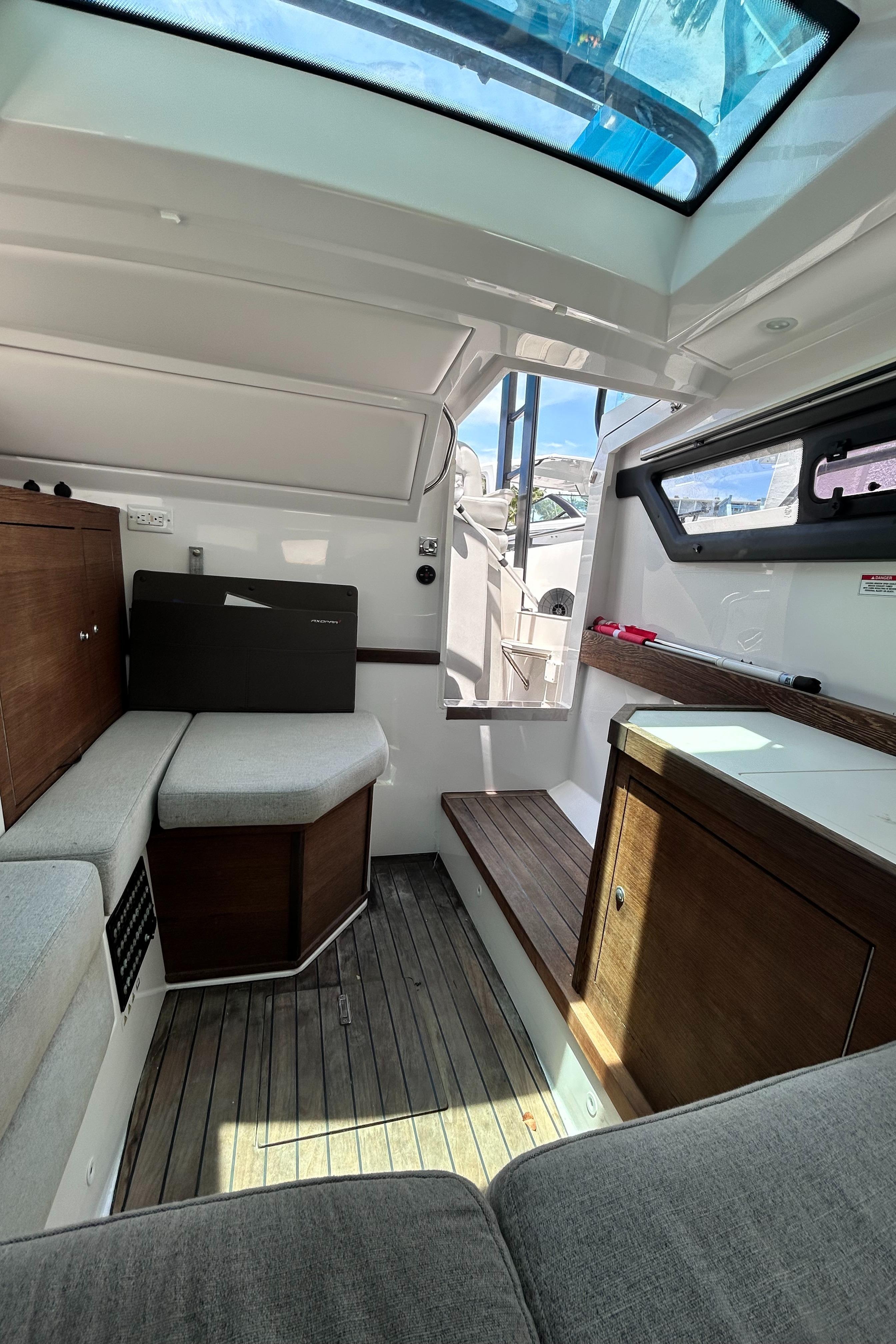 - Front cabin with lounge seating