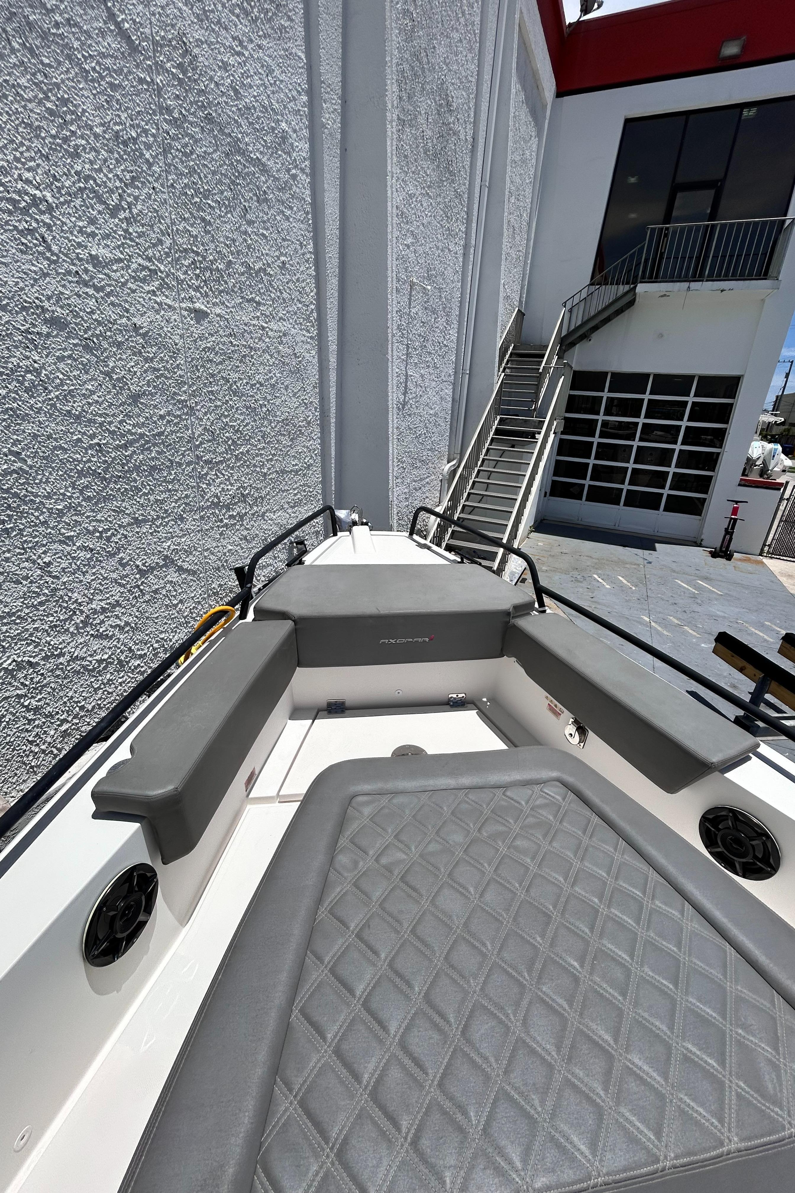 - Audio upgrade with one subwoofer on aft deck and 5ch amplifier and Fusion audio controls at helm and in cabin