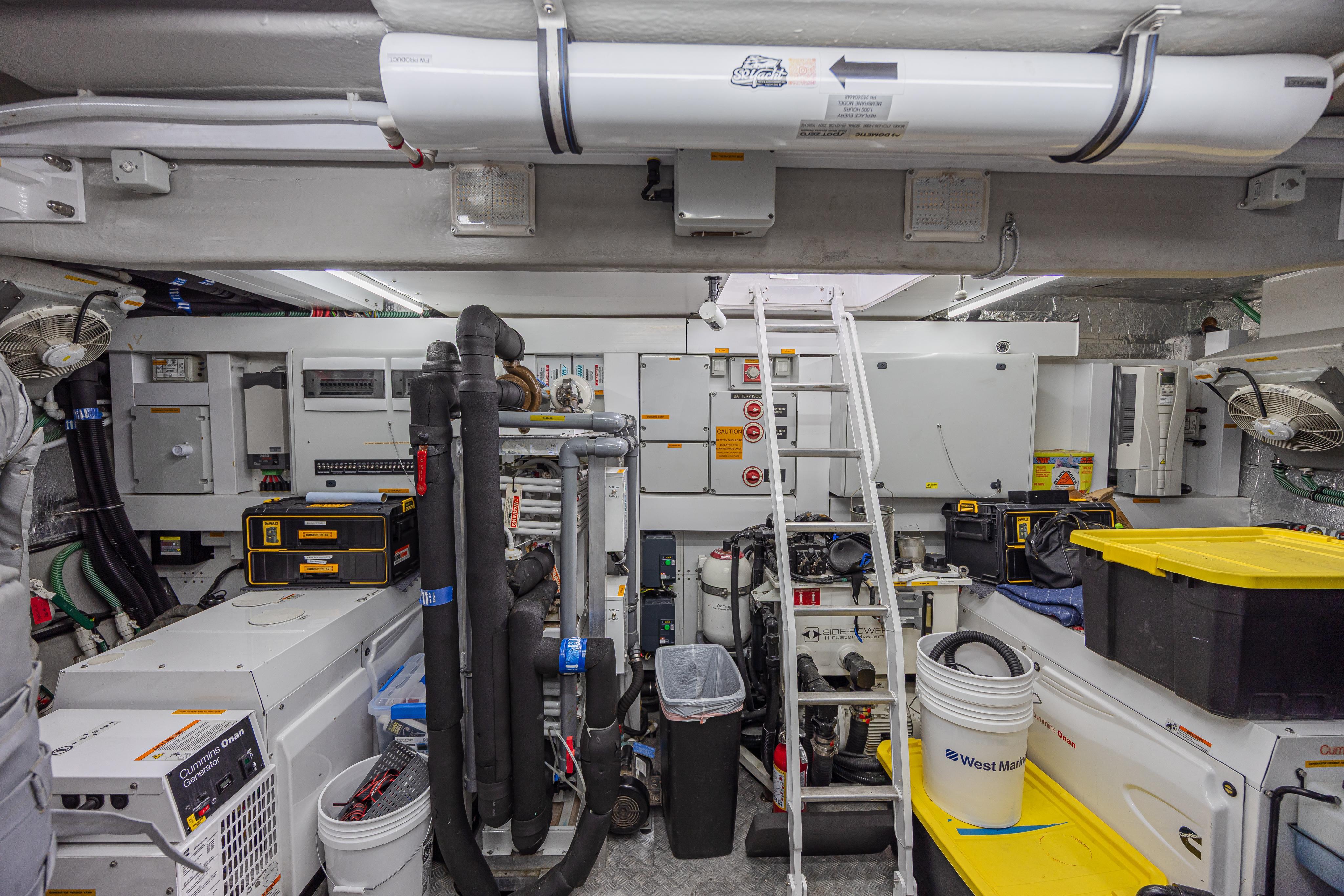 There are two sets of hidden and previously unmarked circuit breakers. One for DC is inside the cabinet on the transom to the left of the Chillers in the Engine Room and the others are for Shore Power A/C and are located behind the side panel on the stairs leading down into the crew cabin. Both are now conspicuously labeled.