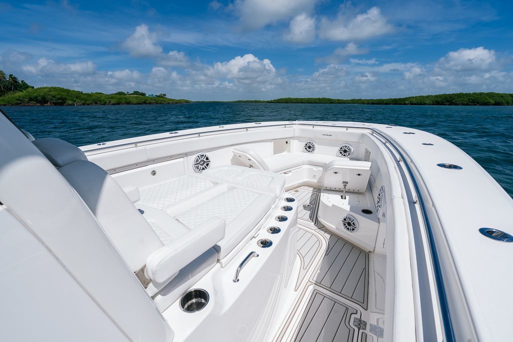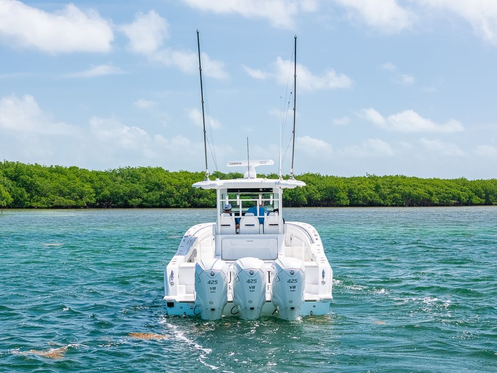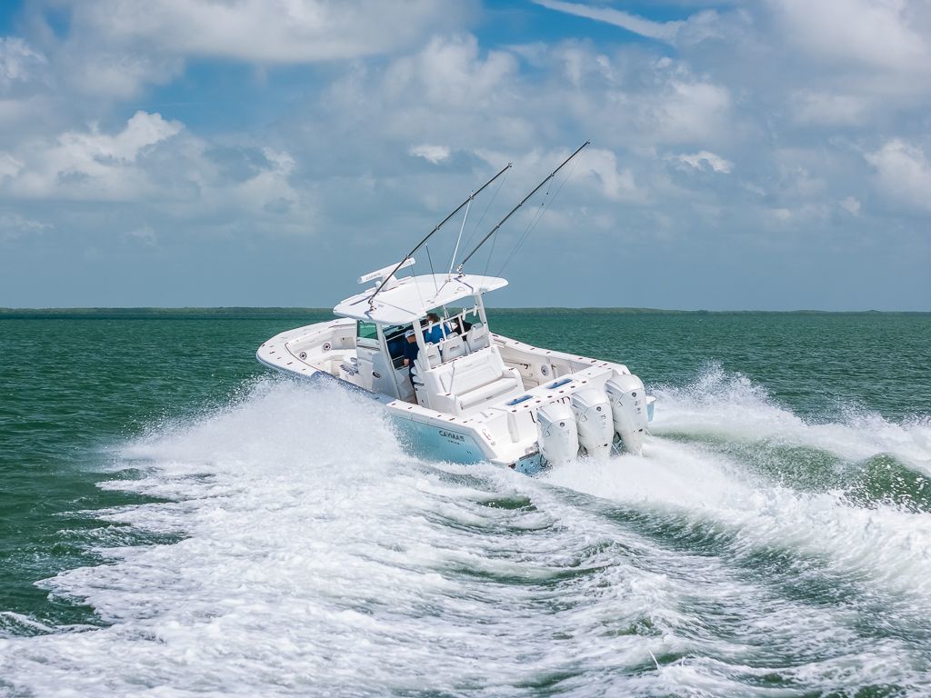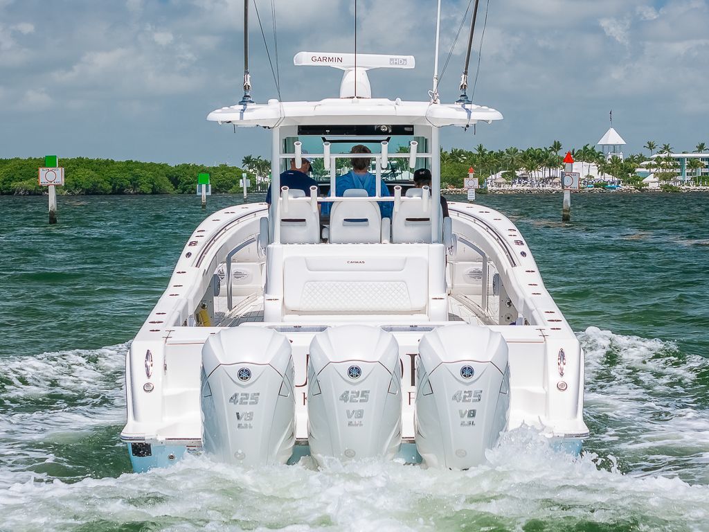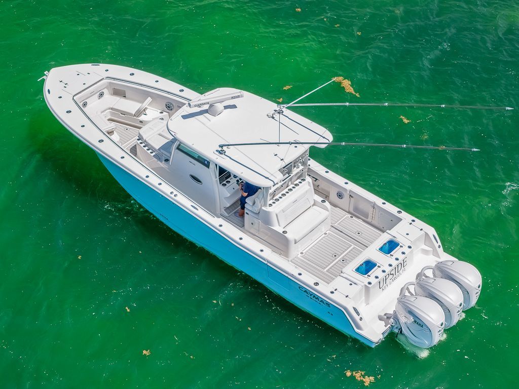 Triple Yamaha 425 XTOs 430 Hours Helm Master Joystick Sea Keeper DC-3 This 2023 Caymas 401CC is a loaded, tournament-ready center console that blends hardcore offshore capability with luxurious amenities. Powered by Triple Yamaha 425 XTOs (White) with just 430 hours, she features the Yamaha Helm Master Joystick System and benefits from the Yamaha Y.E.S. Warranty (7 Years) for unmatched peace of mind. The SeaKeeper DC-3 ensures comfort and stability, and her Bay Blue hull paired with upgraded Sunbrella Horizon white upholstery delivers stunning dockside appeal. Notable Features & Upgrades: Helm Master Joystick w/ Set Point Control SeaKeeper DC-3 Gyro Stabilizer Dual Dive Doors (Port w/ Ladder + Starboard) Bow Seating Upgrade w/ U-Shaped Module Reverso Engine Flush System (2x Installed) AGM Cranking & House Battery Package Dual 195 Shore Power Connections Electronics & Navigation: Garmin Triple 8617 MFD Package Garmin 12kW 4? Open Array Radar Garmin 215 VHF Radio Airmar B175HW & B175L Transducers SiriusXM Weather & Audio Integration Reactor 40 Autopilot FLIR MD-625 Night Vision Camera Siren Marine Security & Monitoring System Lumitec Razor Lightbars Comfort & Interior Highlights: DC-Powered Air Conditioning Upgraded Wood Cabinetry in Cabin Drawer-Style Refrigerator Marine Mat Flooring Throughout JL Audio Premium Package M100 Head Unit (6) 6.5, (8) 8.5 Speakers (2) 10 Subs & (3) Amps Large Transom Cupholders (2) Fishing Features: GEMLUX Outrigger Bases 22 Carbon Fiber Outrigger Poles 8 Total Gunnel-Mounted Rod Holders Lewmar Bow Thruster Tow Eye for Tender Towing Additional Highlights: Underwater Lights (3 on Transom) Bow Shade w/ Poles Sunbrella Horizon Upholstery Upgrade Port Side Dive Door w/ Removable Ladder This 401CC is the ultimate hybrid ready for blue water battles or a sandbar cruise in absolute comfort and style. Turnkey and loaded. Don't miss this opportunity to own one of the most versatile center consoles in its class.