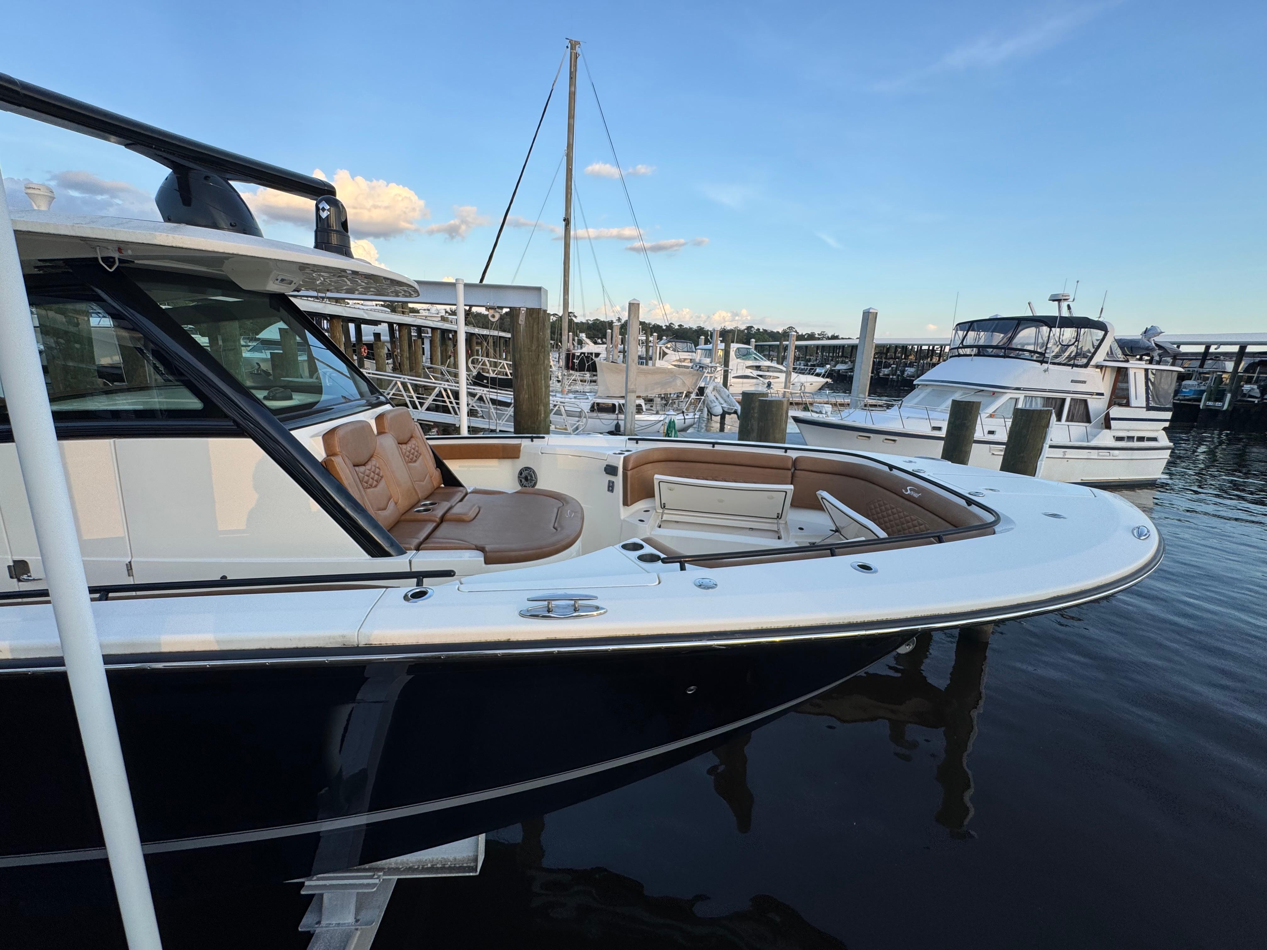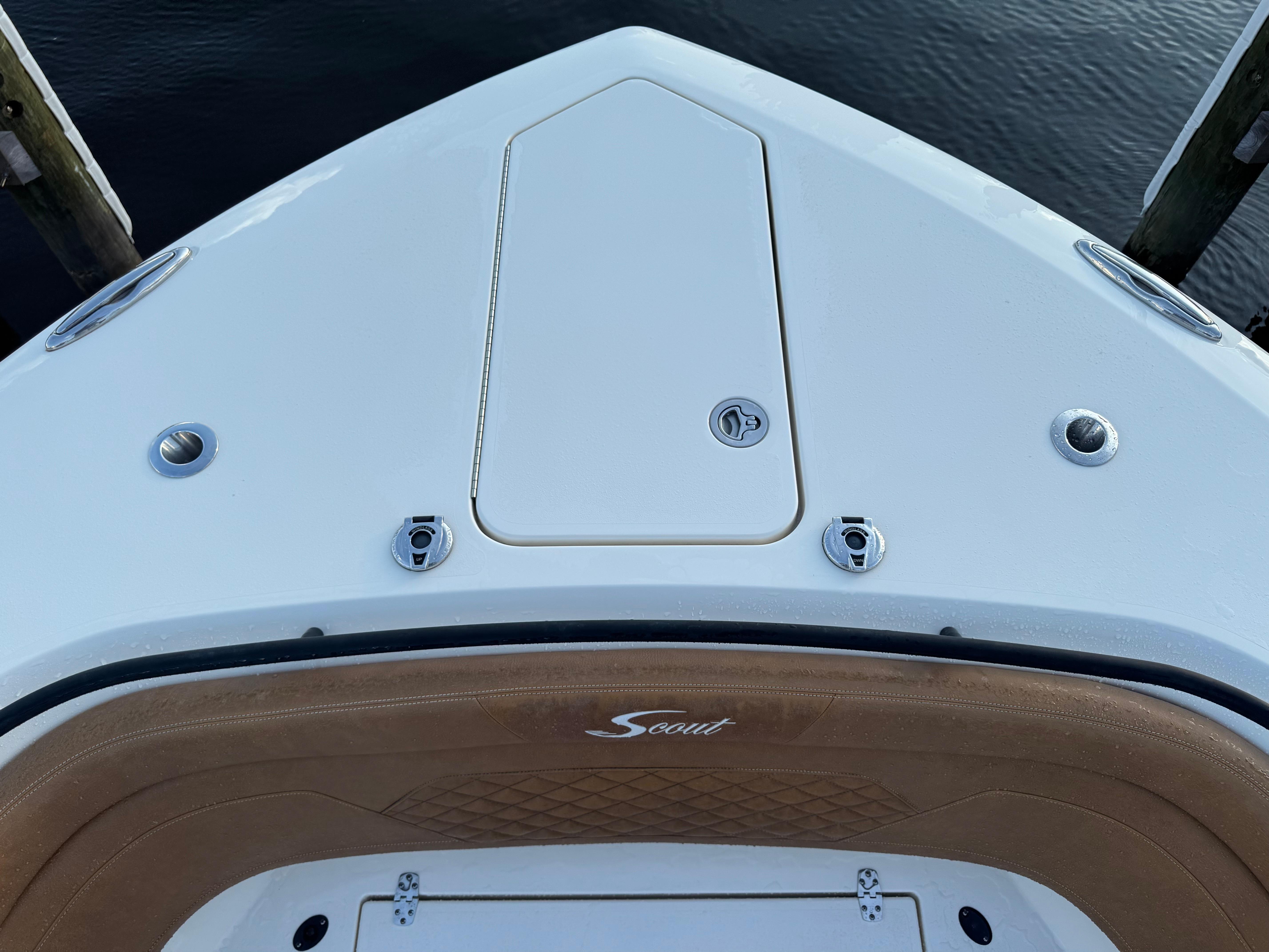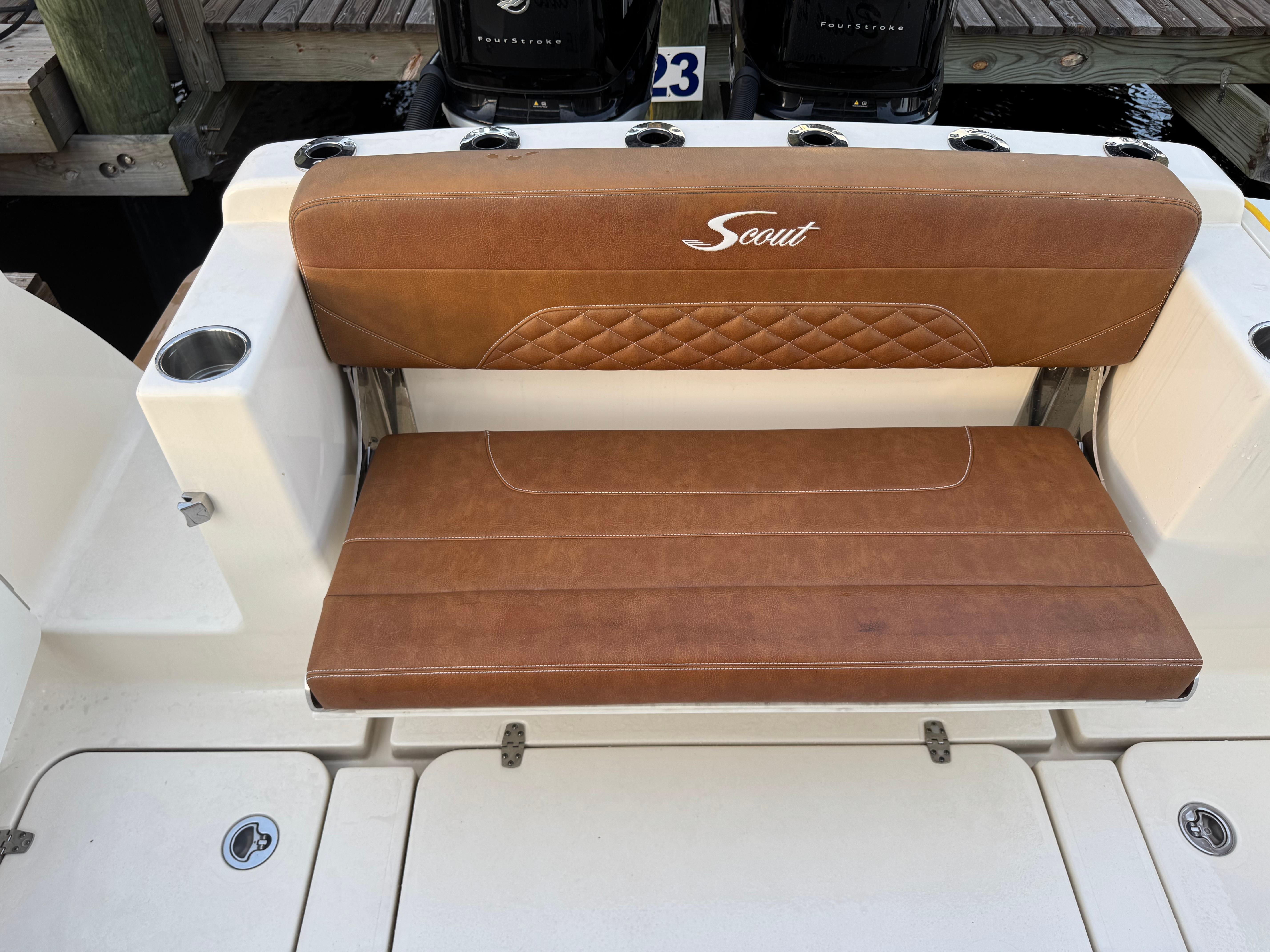 ALL TRADES WELCOME!!!! -The 330 LXF " Black Pearl" is the perfect meld of superior craftsmanship and ingenuity. Smartly-designed and ready for entertaining, cruising, or fishing. Ample storage throughout, plush seating options, and an inner console berth below with an electric marine head and overhead lighting.-The Scout 330 LXF proved more luxurious than other center-consoles. Amenities like twin high-back helm seats, posh forward loungers, a retractable bow dining table and a lounger on the forward console can spoil the saltiest of mariners.-There’s also Scout’s reputation for style reflected in a sweeping sheer line, Carolina-style bow flare and tumblehome of the stern quarters. Twin Mercury Verado 350 outboards vault the 330 LXF to plane in 5 seconds and top speed of over 60 mph. boat equipped with Joystick and Garmin Auto Pilot. Deluxe JL Audio Stereo. Sea-dek flooring through-out. -The 330 LXF handles with precision, and the hull rides silky smooth through wind-swept seas. The double-stepped hull lifts with little bow rise during hole shot. It maintained a near-level trim angle while underway. Advanced epoxy-infusion construction results in optimized weight and strength, and delivers a solid feel. Added Seakeeper 2 and a number of electronics upgrades like Garmin Marine Open Array Radar and FLIR camera both custom painted (Black) to match black powder coating on hardtop.Standard EquipmentDual Swims w/ Center Walk-Thru & EsthecOptimus EPS SteeringAmrstrong Dive Swim LadderTransom Door10” Pull-Up Stern/Bow Cleats(2) Spring Line 8” Cleats(10) SS Flush Mount Gunnel Rod Holders(2) Horizontal Under Gunnel Rod StorageAft Under Deck Systems Station w/ Storage50 Amp Battery Charger w/ Deck PlugPort Transom BaitwellPort & Stbd Aft Floor FishboxesRaw/Fresh Water Washdown w/ 22 Gallon TankLeaning Post w/ 3 Tackle Drawers Port Side, Trash Unit Stbd Side, 65 Quart YETI Slide-Out Aft Cooler, Sink Port Side Countertop, Cutting Board Starboard Side Countertop, Fiberglass Cooler Box Countertop and Twin Bucket Helm Seats w/ Armrest BoxHelmFusion Bluetooth Stereo System w/ (10) JL 7.7” SpeakersPowder Coated Patented T-Top Hardtop w/ Full Windshield, (6) Rocket Launchers & LED Rope LightingCompassCourtesy & Navigation LightsUnder Gunnel LED Rope LightingMolded-In Fwd & Aft Spreader LightsDigital SwitchingSeakeeper 2Solar Panel Charging System (Mounted flush mount on hardtop)Zipwake Trim TabsOpen Array Garmin Marine RadarFLIR Night vision cameraInner Console BerthElectric Marine Head w/ 12 Gallon Holding Tank w/ Overboard Discharge & Dockside Pump OutOverhead LightsHull, Deck and CockpitStbd Console Storage Closet for Brush, Gaff, Lines, etc360 Degree Bolster CushionsRecessed Stainless Steel Coaming RailForward Console Storage BoxBow Glovebox StorageFwd Bow Seating w/ Underside StorageLewmar Windlass, Anchor, Chain & Rode w/ Bow Foot Controls & Helm ControlsHide Away Transom SeatGarmin 8612 DisplayPatented Anchor Camera in BowPort Side Swing-In DoorZipwake Interceptor System(5) Lumitec (multi-color) LED Underwater Lights