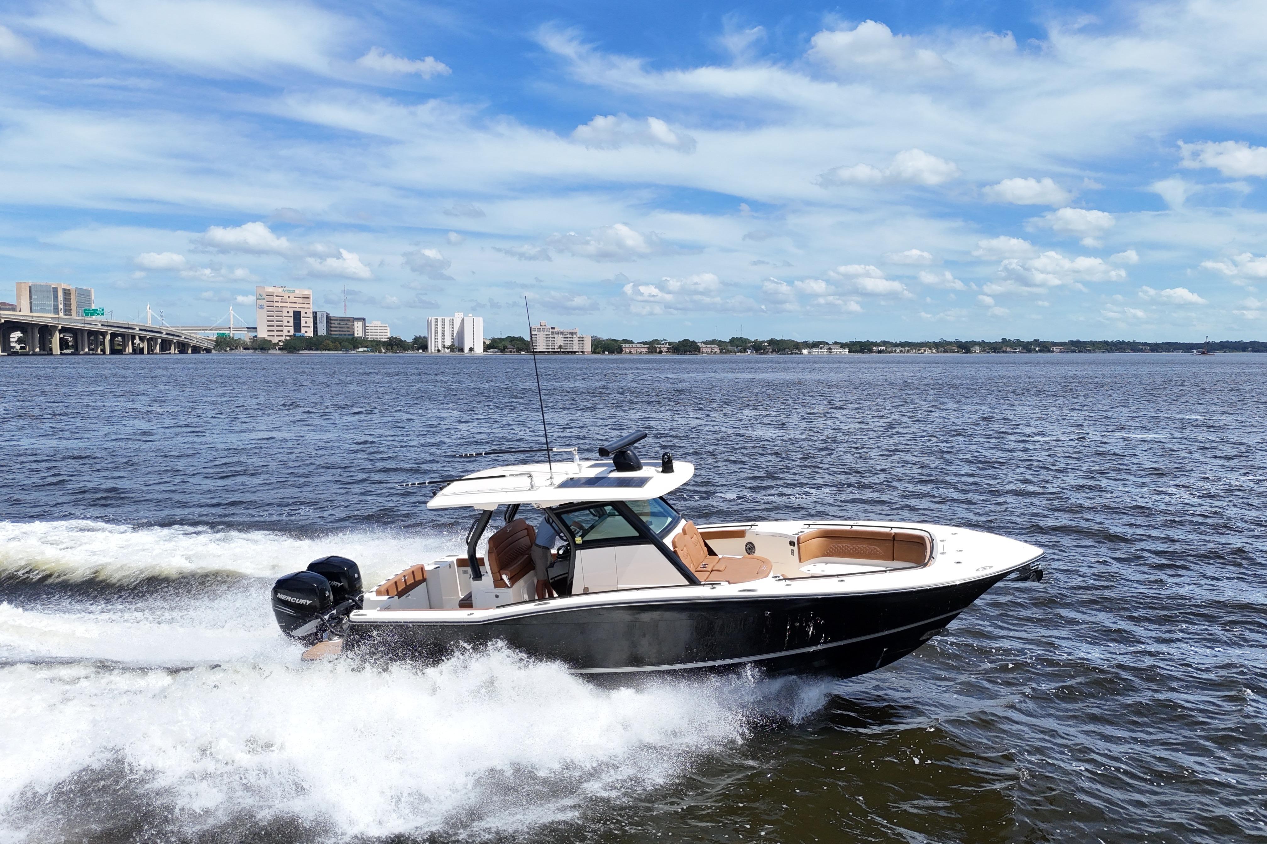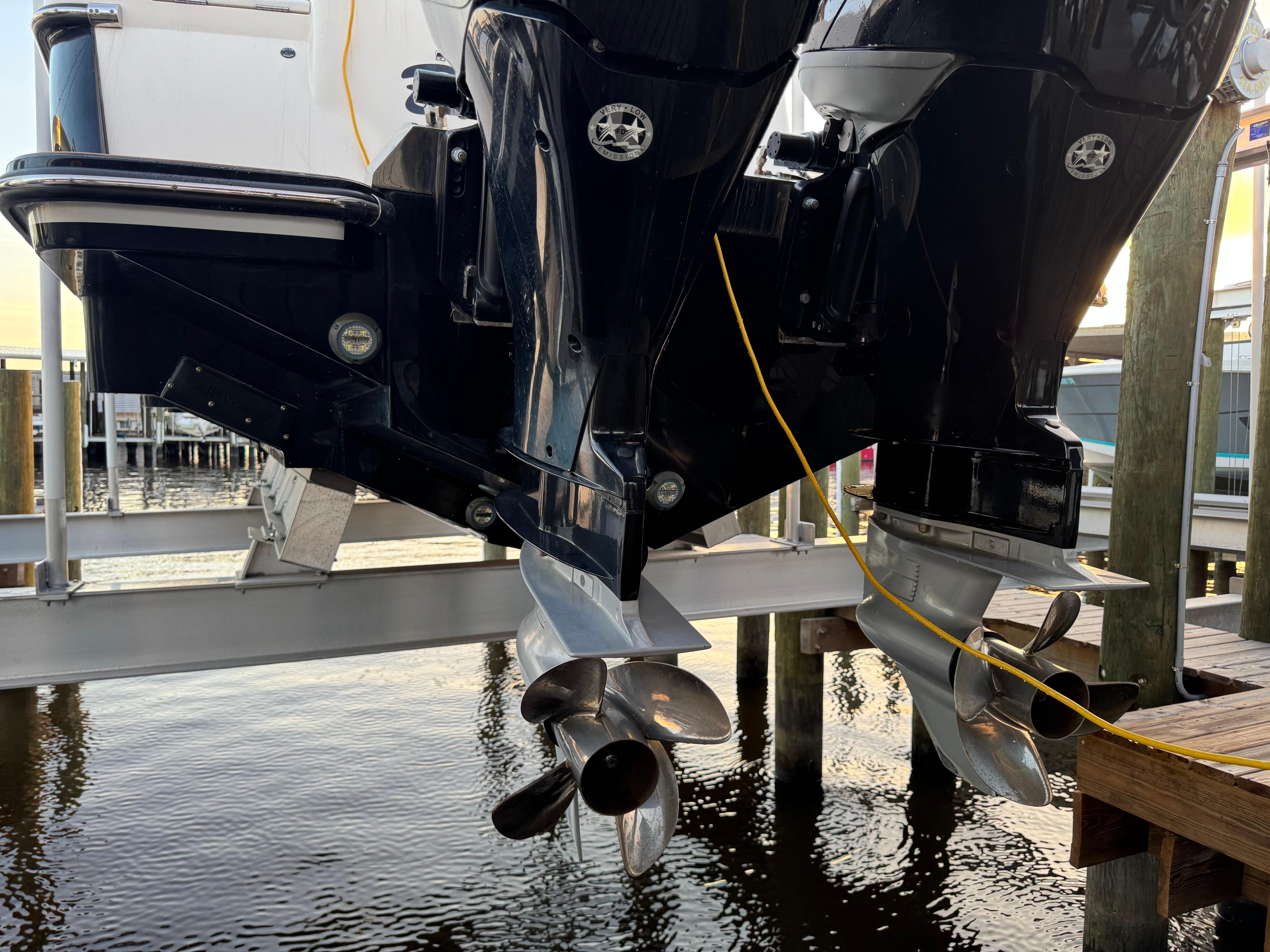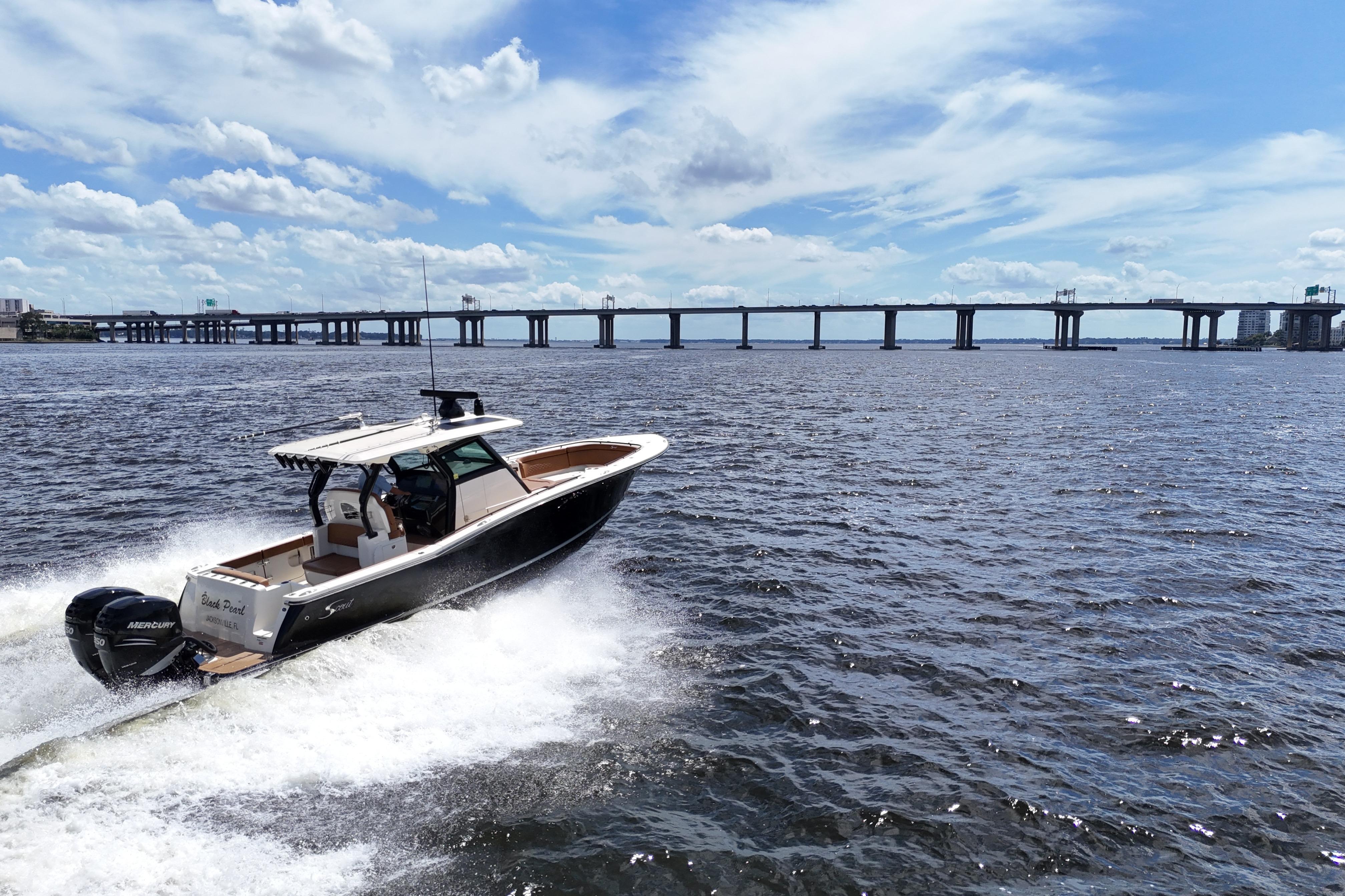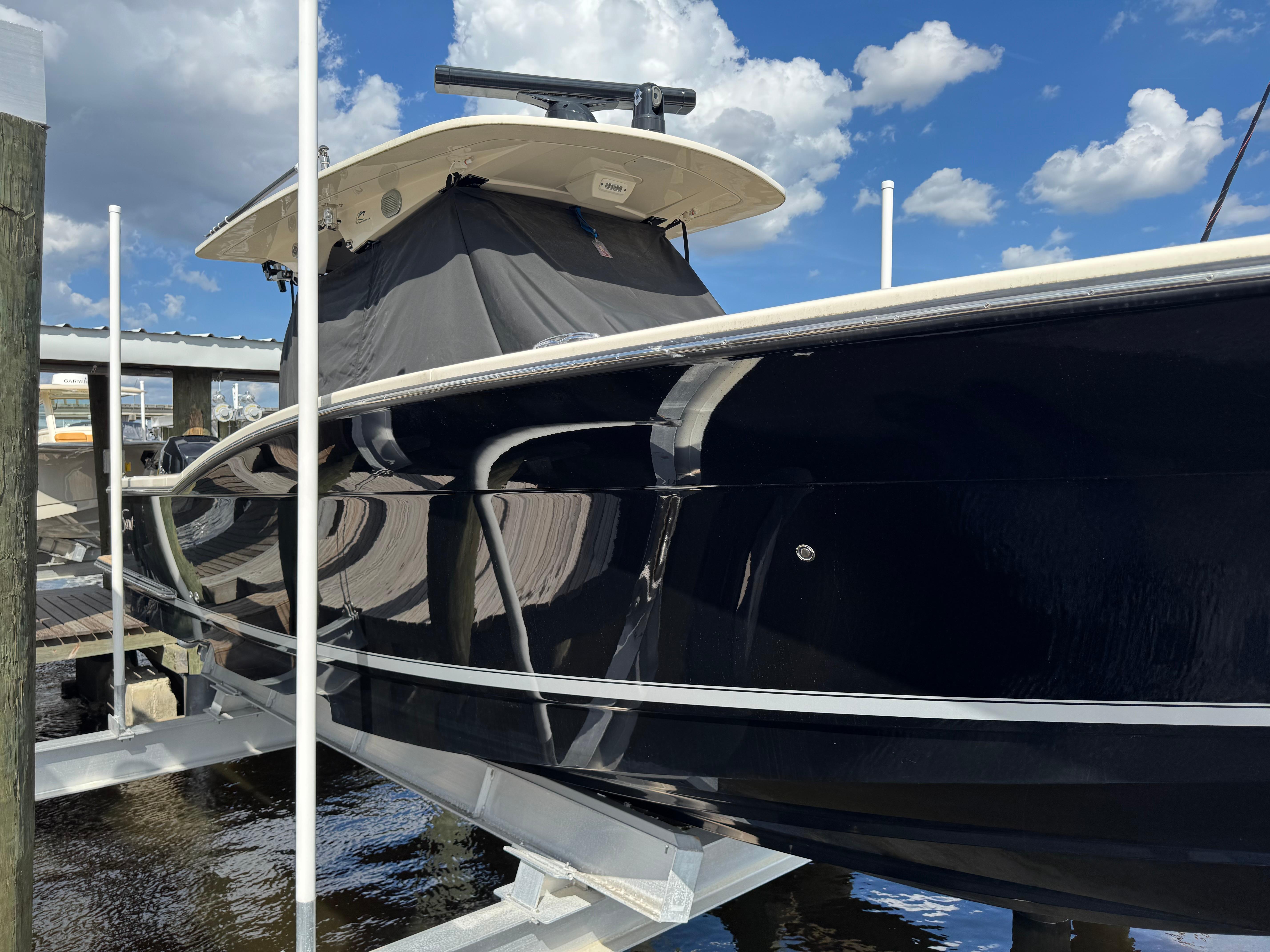 ALL TRADES WELCOME!!!! -The 330 LXF " Black Pearl" is the perfect meld of superior craftsmanship and ingenuity. Smartly-designed and ready for entertaining, cruising, or fishing. Ample storage throughout, plush seating options, and an inner console berth below with an electric marine head and overhead lighting.-The Scout 330 LXF proved more luxurious than other center-consoles. Amenities like twin high-back helm seats, posh forward loungers, a retractable bow dining table and a lounger on the forward console can spoil the saltiest of mariners.-There’s also Scout’s reputation for style reflected in a sweeping sheer line, Carolina-style bow flare and tumblehome of the stern quarters. Twin Mercury Verado 350 outboards vault the 330 LXF to plane in 5 seconds and top speed of over 60 mph. boat equipped with Joystick and Garmin Auto Pilot. Deluxe JL Audio Stereo. Sea-dek flooring through-out. -The 330 LXF handles with precision, and the hull rides silky smooth through wind-swept seas. The double-stepped hull lifts with little bow rise during hole shot. It maintained a near-level trim angle while underway. Advanced epoxy-infusion construction results in optimized weight and strength, and delivers a solid feel. Added Seakeeper 2 and a number of electronics upgrades like Garmin Marine Open Array Radar and FLIR camera both custom painted (Black) to match black powder coating on hardtop.Standard EquipmentDual Swims w/ Center Walk-Thru & EsthecOptimus EPS SteeringAmrstrong Dive Swim LadderTransom Door10” Pull-Up Stern/Bow Cleats(2) Spring Line 8” Cleats(10) SS Flush Mount Gunnel Rod Holders(2) Horizontal Under Gunnel Rod StorageAft Under Deck Systems Station w/ Storage50 Amp Battery Charger w/ Deck PlugPort Transom BaitwellPort & Stbd Aft Floor FishboxesRaw/Fresh Water Washdown w/ 22 Gallon TankLeaning Post w/ 3 Tackle Drawers Port Side, Trash Unit Stbd Side, 65 Quart YETI Slide-Out Aft Cooler, Sink Port Side Countertop, Cutting Board Starboard Side Countertop, Fiberglass Cooler Box Countertop and Twin Bucket Helm Seats w/ Armrest BoxHelmFusion Bluetooth Stereo System w/ (10) JL 7.7” SpeakersPowder Coated Patented T-Top Hardtop w/ Full Windshield, (6) Rocket Launchers & LED Rope LightingCompassCourtesy & Navigation LightsUnder Gunnel LED Rope LightingMolded-In Fwd & Aft Spreader LightsDigital SwitchingSeakeeper 2Solar Panel Charging System (Mounted flush mount on hardtop)Zipwake Trim TabsOpen Array Garmin Marine RadarFLIR Night vision cameraInner Console BerthElectric Marine Head w/ 12 Gallon Holding Tank w/ Overboard Discharge & Dockside Pump OutOverhead LightsHull, Deck and CockpitStbd Console Storage Closet for Brush, Gaff, Lines, etc360 Degree Bolster CushionsRecessed Stainless Steel Coaming RailForward Console Storage BoxBow Glovebox StorageFwd Bow Seating w/ Underside StorageLewmar Windlass, Anchor, Chain & Rode w/ Bow Foot Controls & Helm ControlsHide Away Transom SeatGarmin 8612 DisplayPatented Anchor Camera in BowPort Side Swing-In DoorZipwake Interceptor System(5) Lumitec (multi-color) LED Underwater Lights