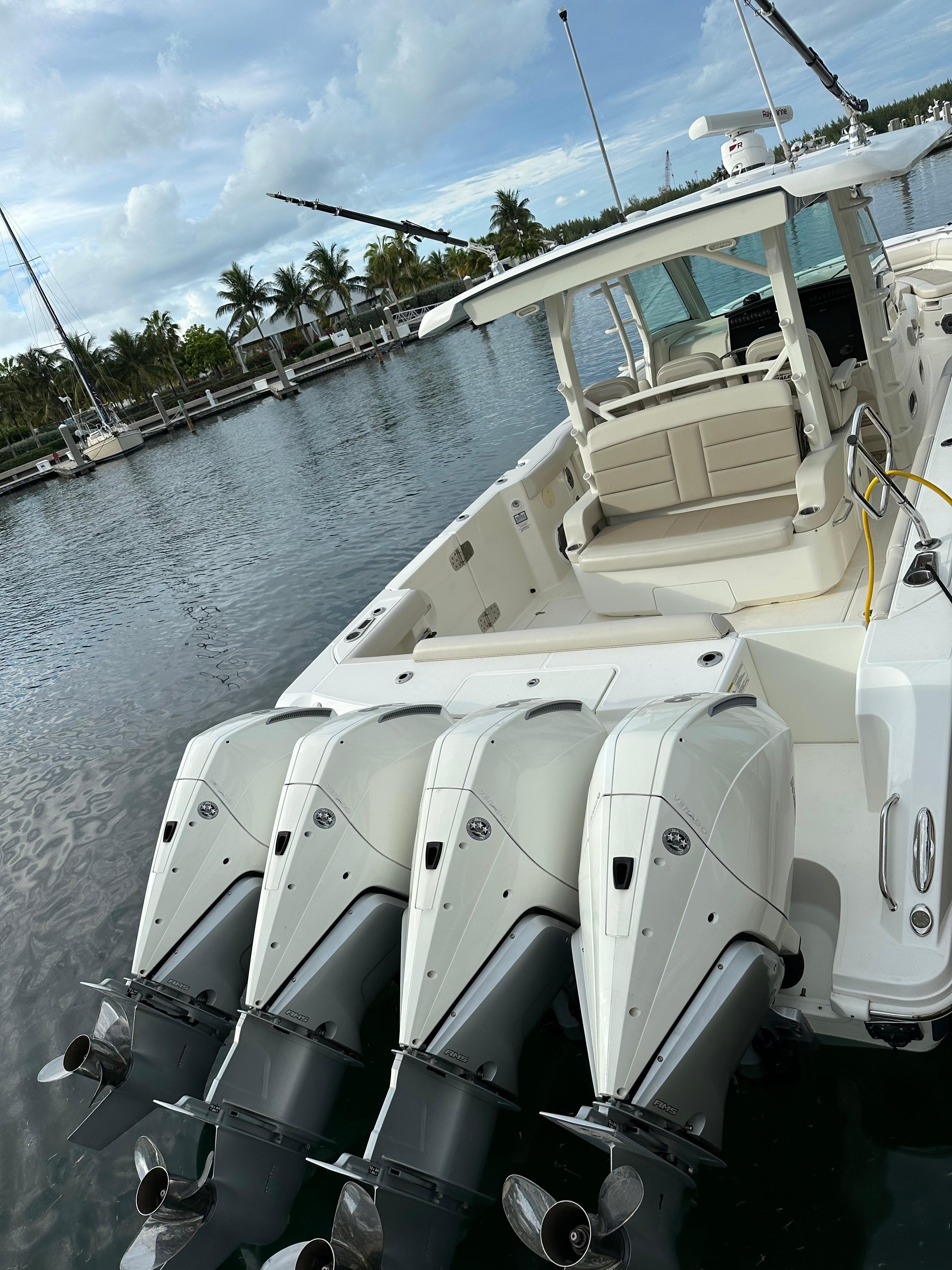 Preliminary Listing - Professional Photoshoot Coming Soon!2021 Boston Whaler 380 Outrage -- Hot DealSteel Blue Hull -- NO Bottom PaintLIFT KEPT / CAPTAIN MAINTAINEDQuad Mercury Verado V8's 300HP UNDER 200 HOURS!!!200 Hour Service Complete by MarineMaxNew Underwater Lights!WE ACCEPT TRADES! All offers encouraged!