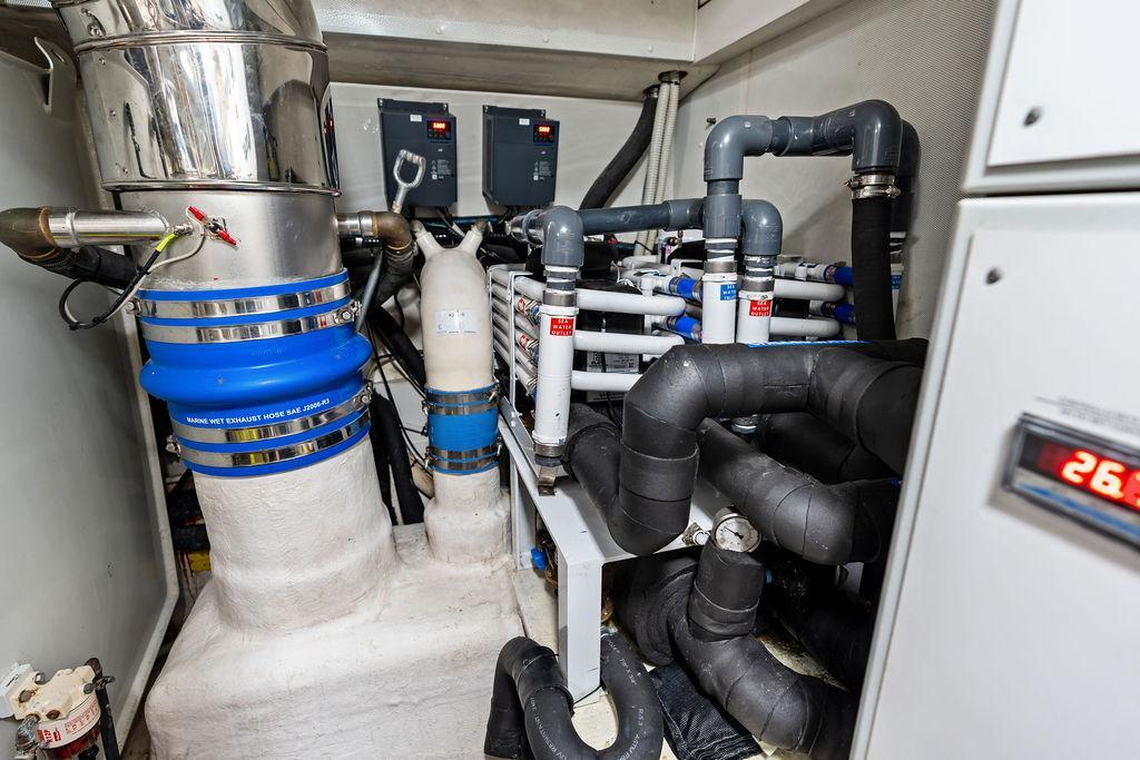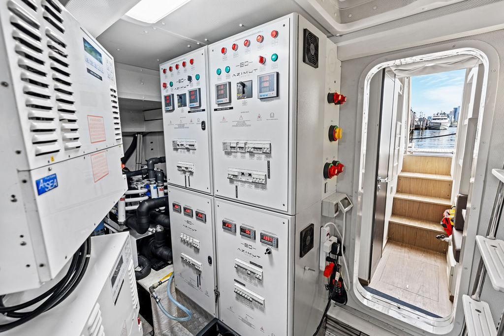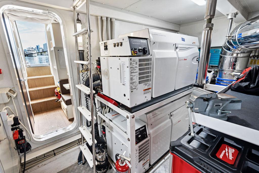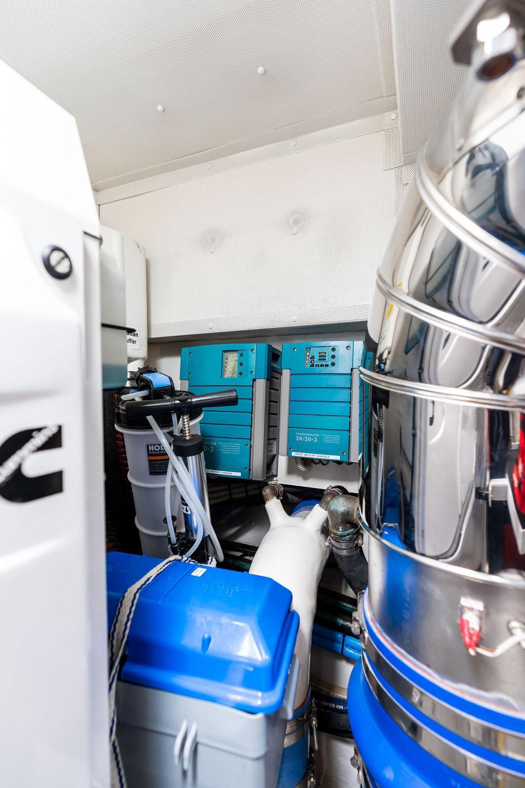- Custom Stainless Steel Shelving in the engine room for organized storage and converter support.