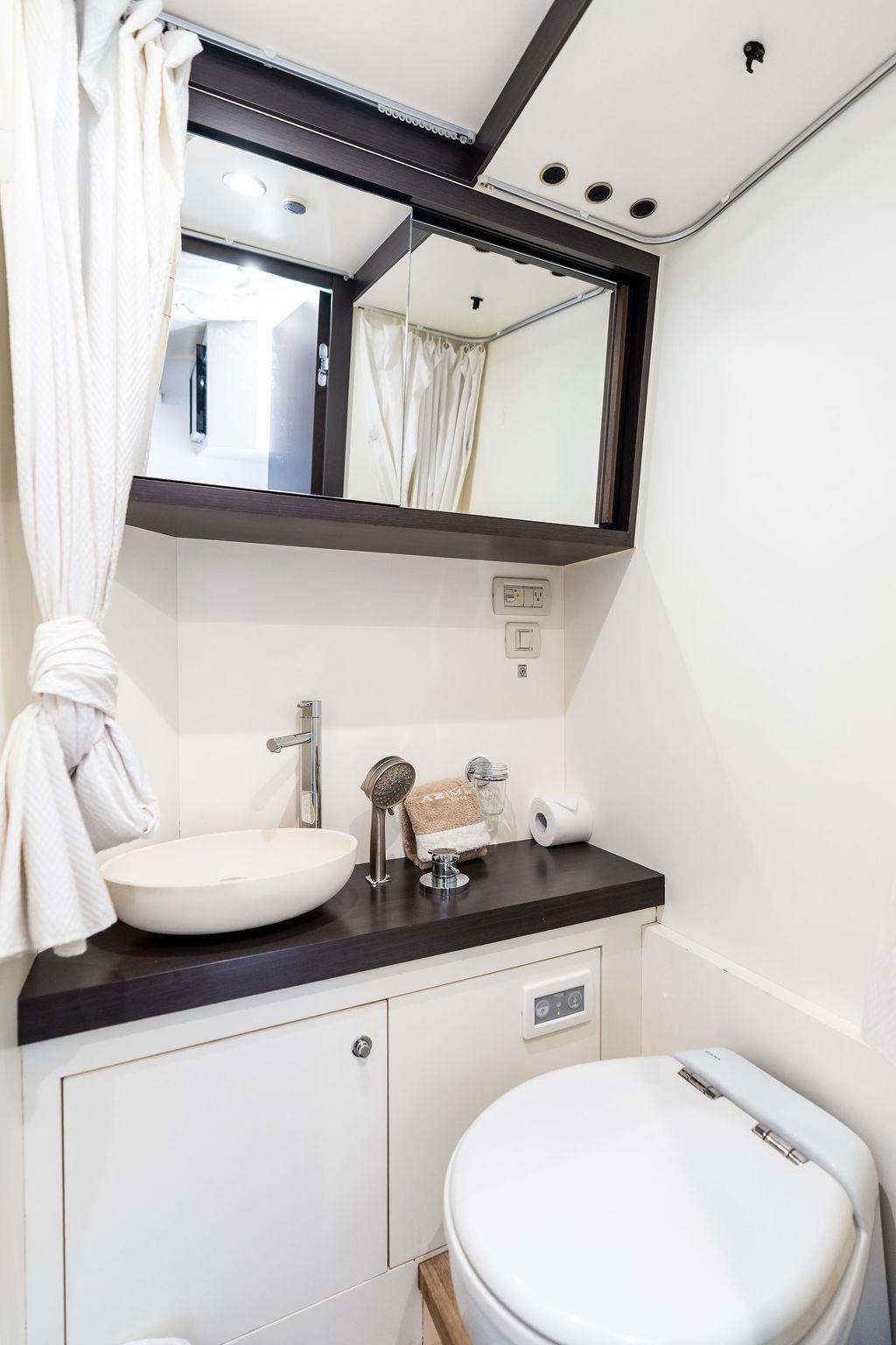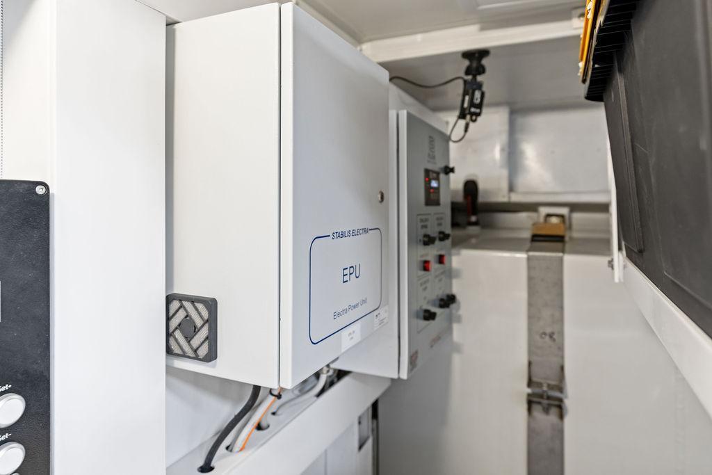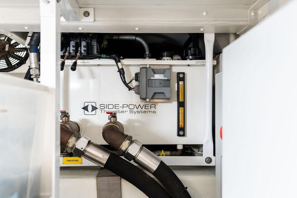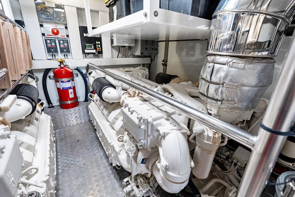 - Custom Stainless Steel Shelving in the engine room for organized storage and converter support.