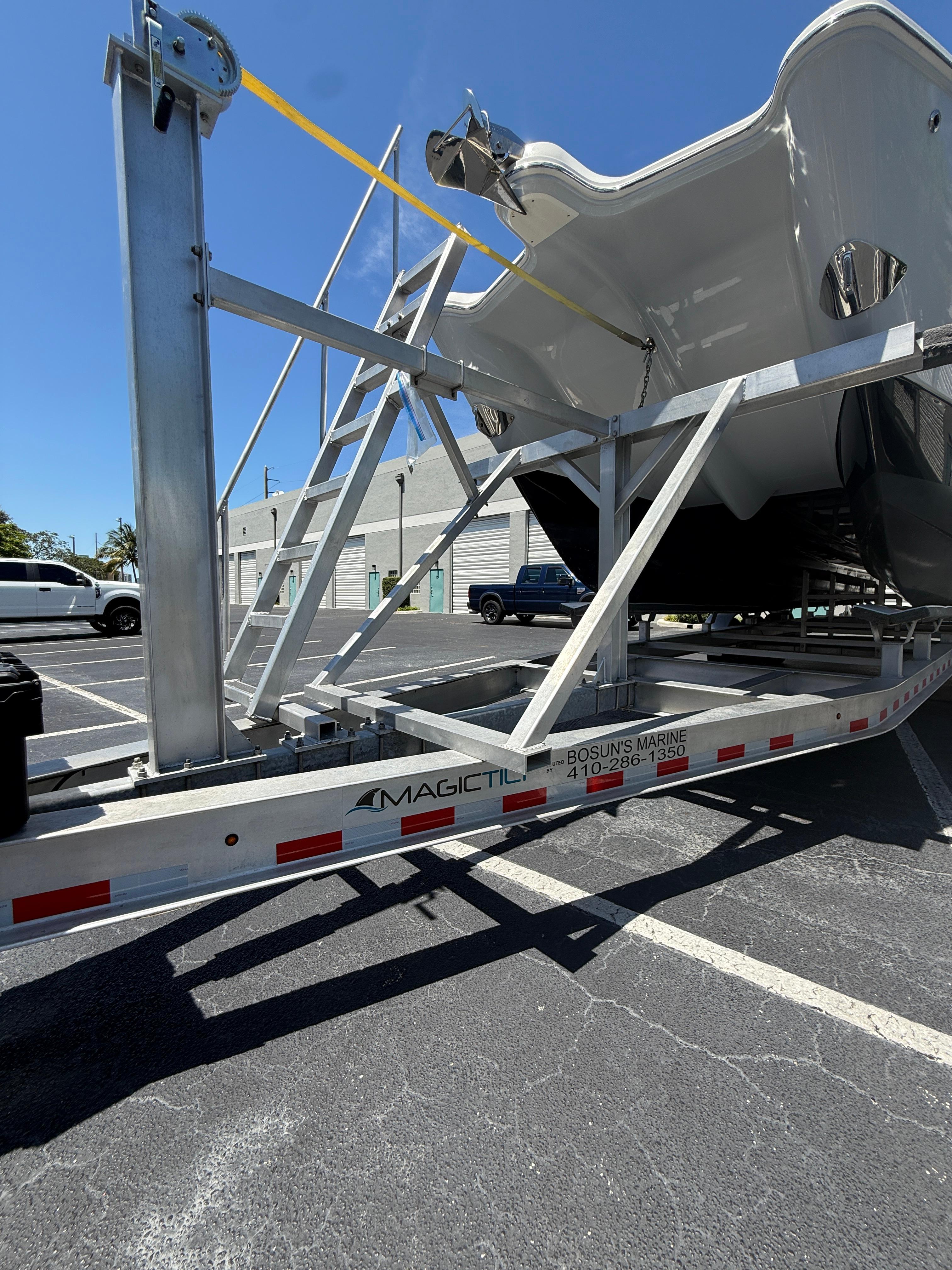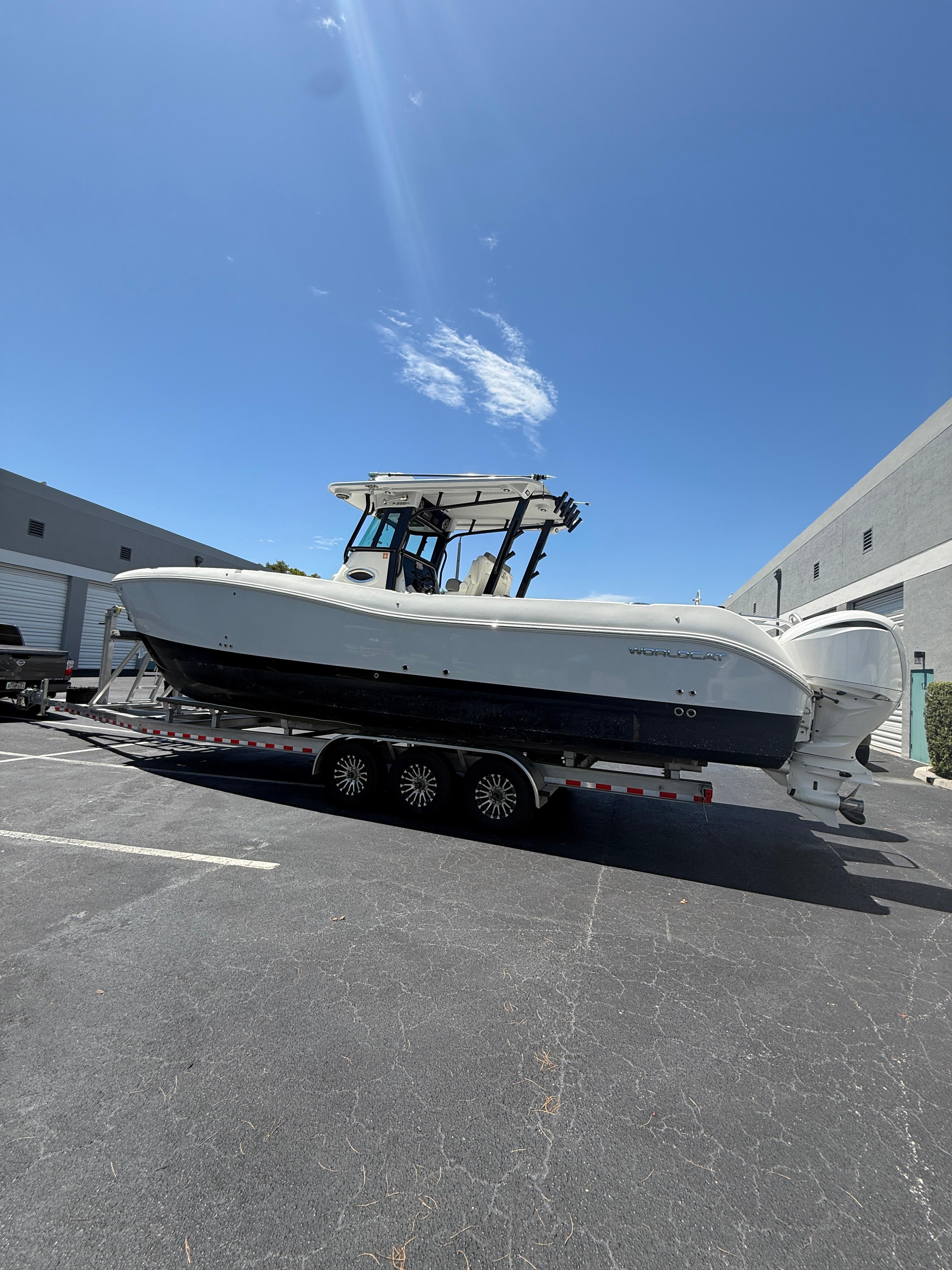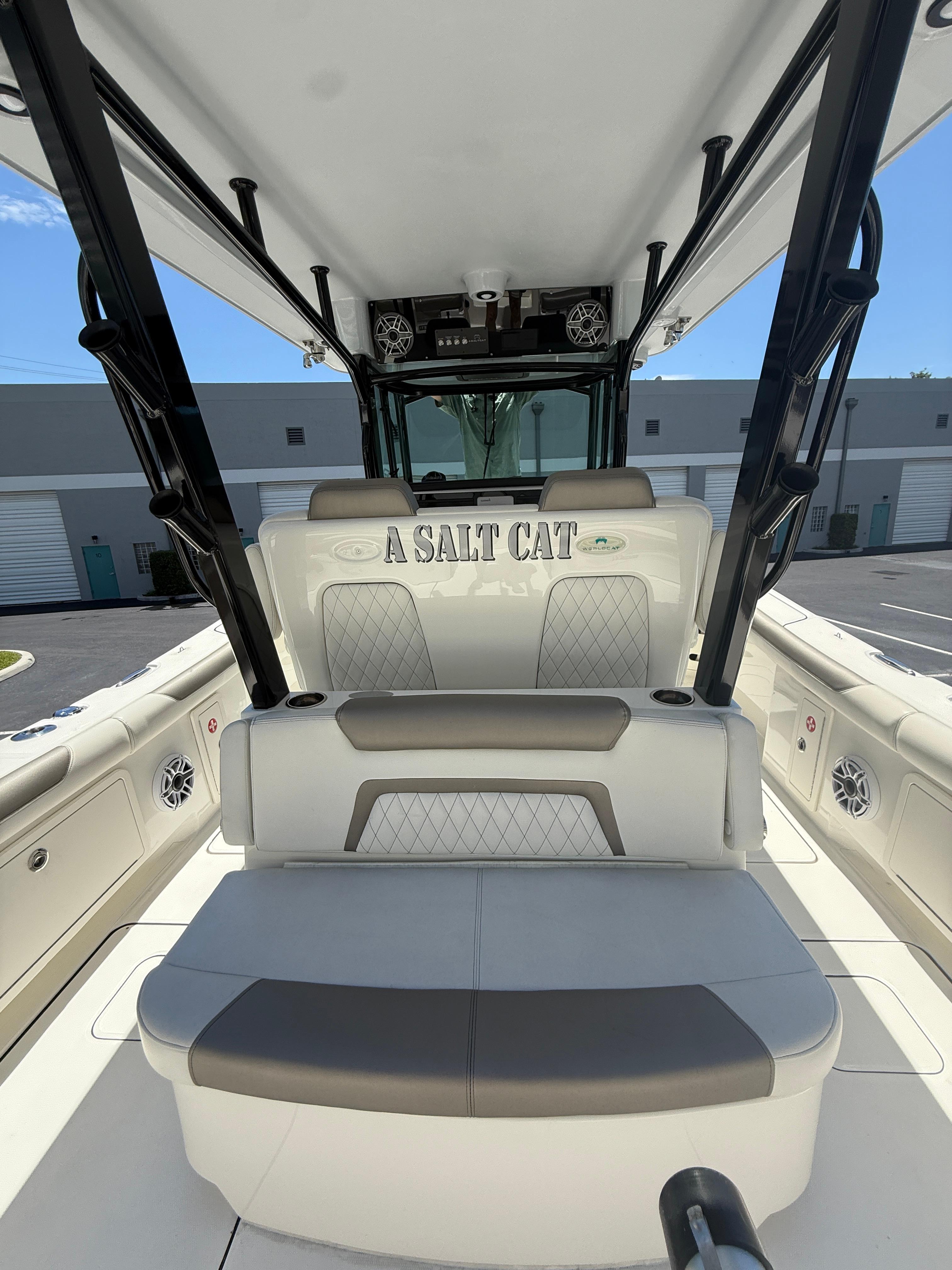 This stunning 2023 World Cat 325 CC is the perfect fusion of offshore performance, luxury, and unmatched versatility. Designed for serious anglers and discerning boaters alike, this vessel is loaded with premium factory and custom upgrades ready for adventure, entertainment, or both. Powered by twin Yamaha 300XCB engines with the Optimus 360 Joystick System with only 170 hours with warranty until June 2026. The dual Garmin GPSMAP® 8616xsv 16” displays and blue LED underwater lighting create a state-of-the-art navigation and ambiance experience. The upgraded stereo system (800W amp + JL Audio M6 6.5” speakers) brings crystal-clear sound, whether you’re cruising the Intracoastal or anchored at the sandbar. The Bocatec-style digital switch system offers sleek, modern control at your fingertips designed for both style and functionality. A true head-turner, the hull features a custom Arniston Grey gelcoat with a black bottom and a fully painted bottom coat. Forward, enjoy a bow sun lounge with filler cushion, while the mezzanine seat and leaning post with 40-gallon livewell in the aft offer a perfect setup for both cruising comfort and serious fishing. Additional features include: • Heavy-duty stainless steel lifting eyes • Tow eyes by Broward Machine ideal for tender service or towing applications • Edson 14.5” satin finish power wheel • Shadow Package detailing throughout • GEMLUX Deluxe Outrigger System with 18’ collapsible poles Whether you’re chasing pelagics offshore, enjoying cocktails at sunset, or simply seeking the thrill of open water, this 32’ World Cat stands in a class of its own. Turnkey. Loaded. Ready to perform.