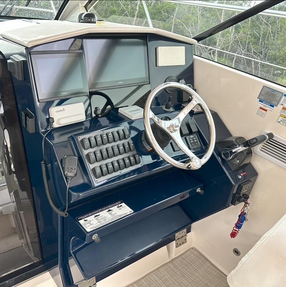 Lift-kept, low-hour, and loaded with recent upgrades—this 2013 Pursuit 365i Sport Coupe offers the perfect combination of style, comfort, and performance. Designed with the aesthetics of a luxury inboard sport cruiser but powered by twin Yamaha 350hp outboards (only 278 hours), this model delivers all the benefits of easier maintenance and shallow-water capability without compromising high-end appeal.Her modern profile, open-air layout, and refined interior make her ideal for both weekend cruising and entertaining in style.Recent Upgrades & Service2023New Garmin electronics packageAll new upholstery throughoutUpgraded stereo systemUnderwater LED lights installedCustom sunshades (cockpit & bow)2024Ceramic coating appliedRed boot stripe repaintedNew Chilewich woven flooring (cockpit)New Sunbrella sunshades for aft and bow areasNew marine toilet installedTinted cockpit windows for UV and privacy2025Generator fully serviced (July 2025)New impeller installedAccommodationsSleeps: 4 adults comfortablyForward island berth sleeps 2Convertible dinette sleeps 2Seats: Up to 10 passengers onboardSpacious cockpit seating (helm, port lounge, aft bench)Convertible dinette and salon seating belowThe air-conditioned cabin is bright and open, featuring a fully equipped galley, an enclosed head with separate shower, and high-end cabinetry and finishes throughout. The layout feels surprisingly roomy for a 36-footer thanks to clever design and generous headroom.Performance & DesignThe 365i’s unique design cleverly conceals her outboards under a molded aft deck lid, preserving the sleek profile of a traditional sport cruiser. Her deep-V hull provides a stable and dry ride in a variety of sea conditions, while the twin Yamaha V8s deliver impressive performance and cruising efficiency.The single-level cockpit is perfect for socializing, with ample lounge seating, a wet bar, and easy access to the swim platform. Forward, a large sunpad with adjustable backrests and a custom shade offers a private place to relax underway or at anchor.Manufacturer Specs – 2013 Pursuit 365i Sport CoupeLength Overall: 41 ft 2 inBeam: 12 ft 6 inDraft (motors up): Approx. 2 ft 3 inDry Weight: ~16,000 lbsFuel Capacity: 300 gallonsWater Capacity: 75 gallonsHolding Tank: 18 gallonsEngines: Twin Yamaha 350hp Four-Stroke V8 OutboardsTop Speed: ~45 mphCruise Speed: ~30 mphGenerator: Yes (recently serviced)Air Conditioning: Cabin and helmAdditional FeaturesIntegrated hardtop with full wraparound windshieldCockpit refrigerator, sink, and grillWindlass anchor with helm and bow controlsGarmin touchscreen chartplotter, radar, autopilot, and VHFBow sunpad with new cushions and shadesSwim platform with concealed ladderTrim tabs, spotlight, and remote controlFull canvas enclosures and protective coversSummaryThis 2013 Pursuit 365i SCi delivers the best of both worlds—the low-maintenance reliability of outboards with the luxury feel and design of a premium express cruiser. With over $50,000 in upgrades over the past two years and a meticulous maintenance history, she is turnkey and ready to cruise.Perfect for entertaining, overnighting, or weekend getaways—she’s a rare find in today’s market. Contact the listing broker today for more details or to arrange a private showing.