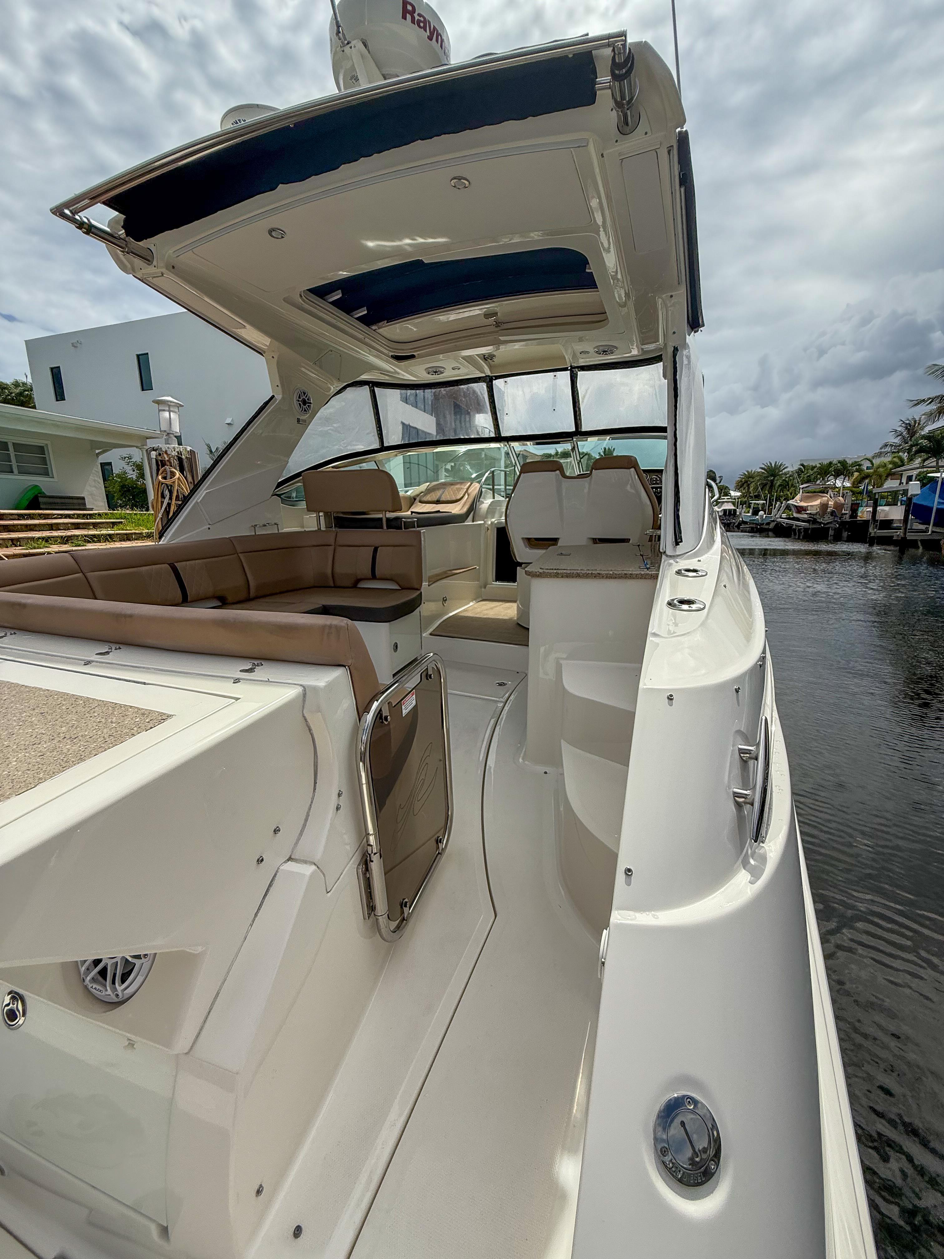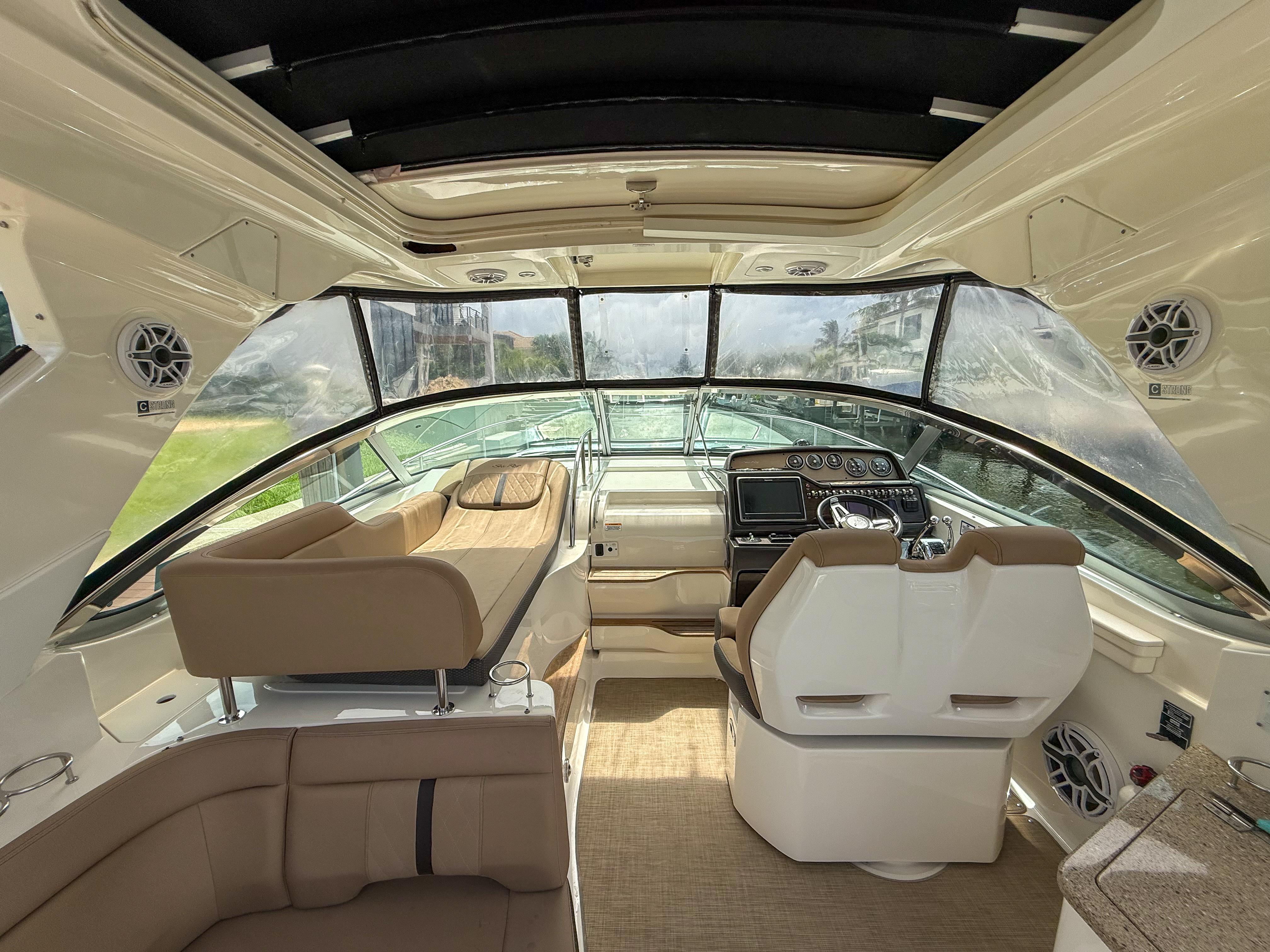 Turn heads and cruise in comfort aboard this beautifully maintained 2016 Sea Ray Sundancer 350. Powered by twin MerCruiser 6.2L engines with digital throttle and joystick control, she delivers smooth handling and responsive power at both cruising and top speeds.Step inside and you’ll find a modern, air-conditioned cabin with rich wood finishes, a fully equipped galley, spacious head, and sleeping accommodations for up to six guests. The open layout offers a forward V-berth, mid-cabin lounge/berth, and a convertible dinette — ideal for weekends on the water or extended getaways.Above deck, enjoy the expansive cockpit with wraparound seating, a wet bar, grill, and JL Audio sound system. The integrated hardtop and full enclosure provide year-round comfort and style. Navigation is a breeze with Raymarine touchscreen electronics, radar, and VHF radio.Whether you’re cruising the coast or relaxing at anchor, this Sundancer 350 delivers premium luxury, style, and versatility. Key Features • Twin MerCruiser 6.2L engines • Raymarine GPS/chartplotter, radar & VHF • Air conditioning & generator • Spacious cockpit w/ grill, sink, fridge & TV • Sleeps 4–6 with full galley and enclosed head • JL Audio premium sound system • Windlass anchor, spotlight, trim tabs, and more